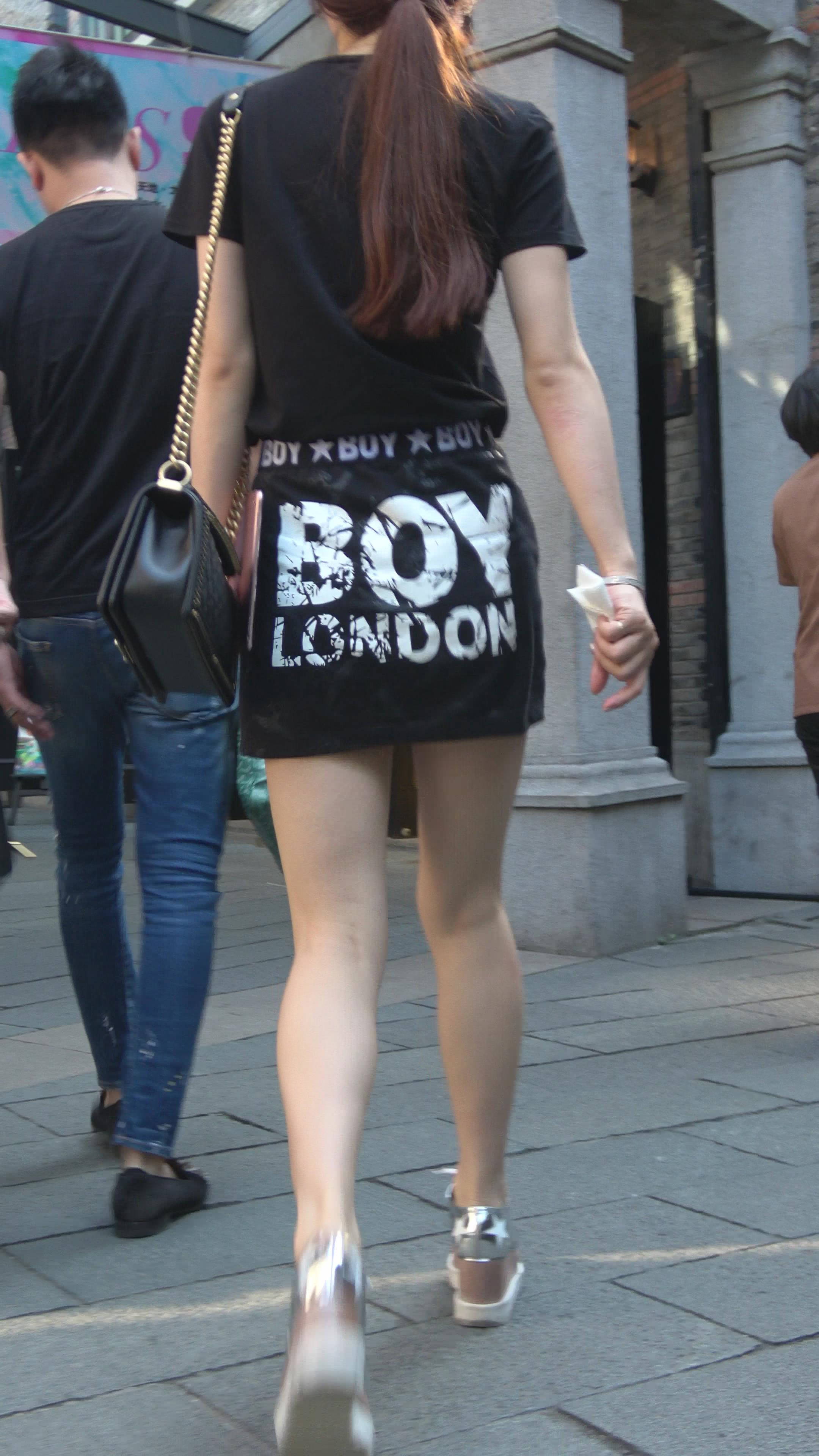 性感短裙黑色T恤街拍美女 编号7473