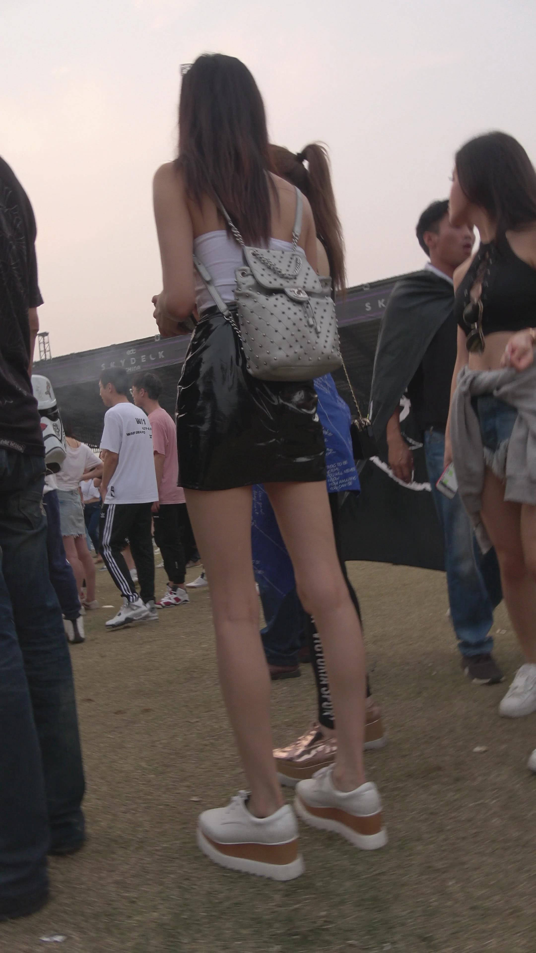 4K 高挑的街拍皮裙长腿美女 编号7489