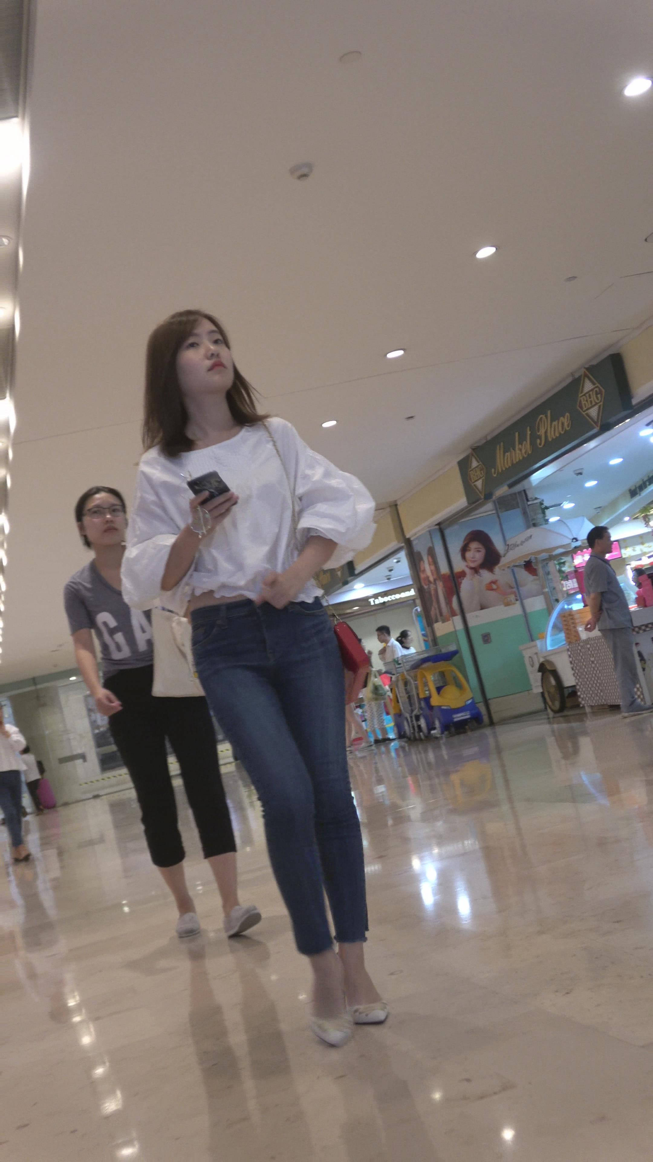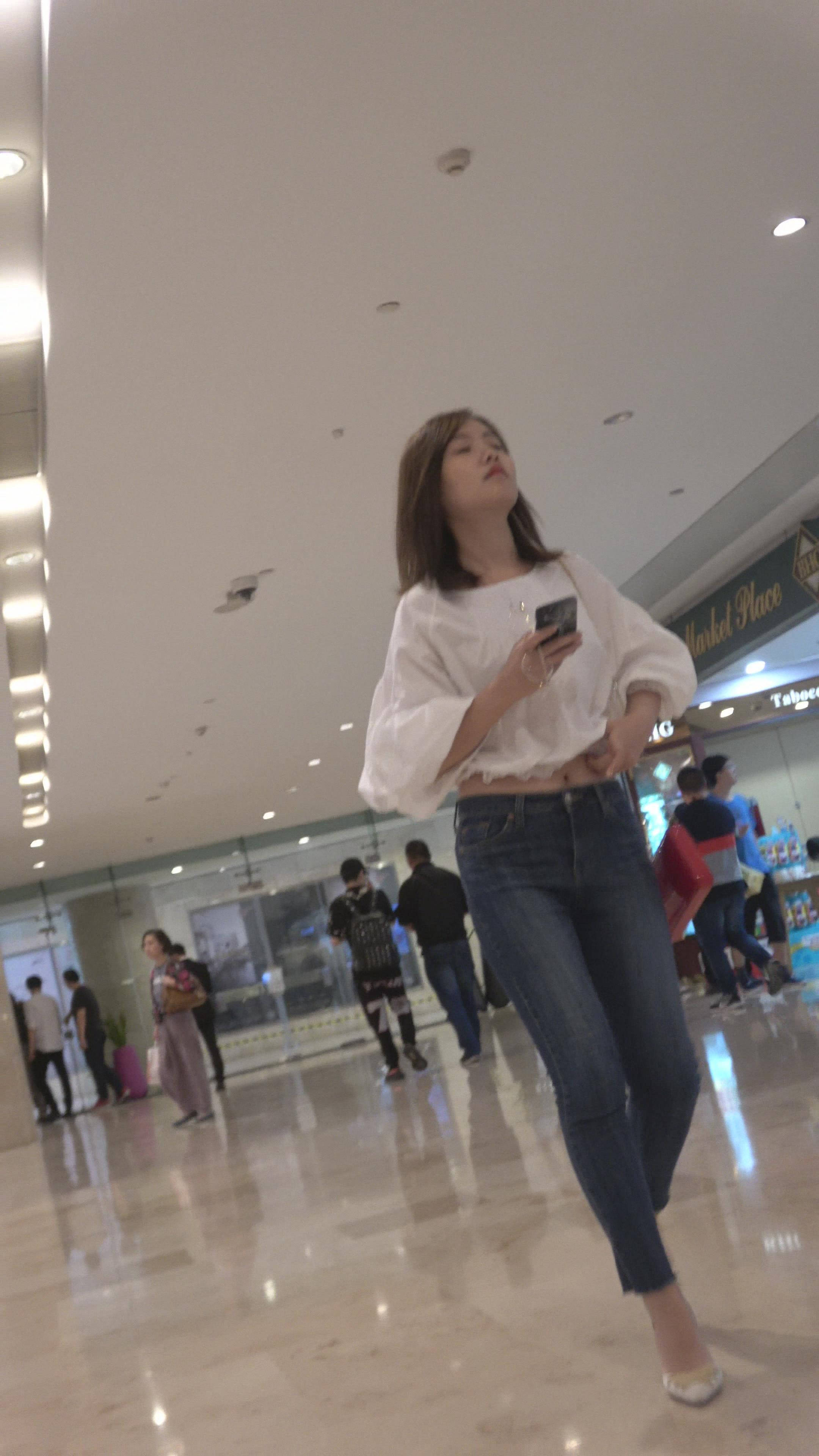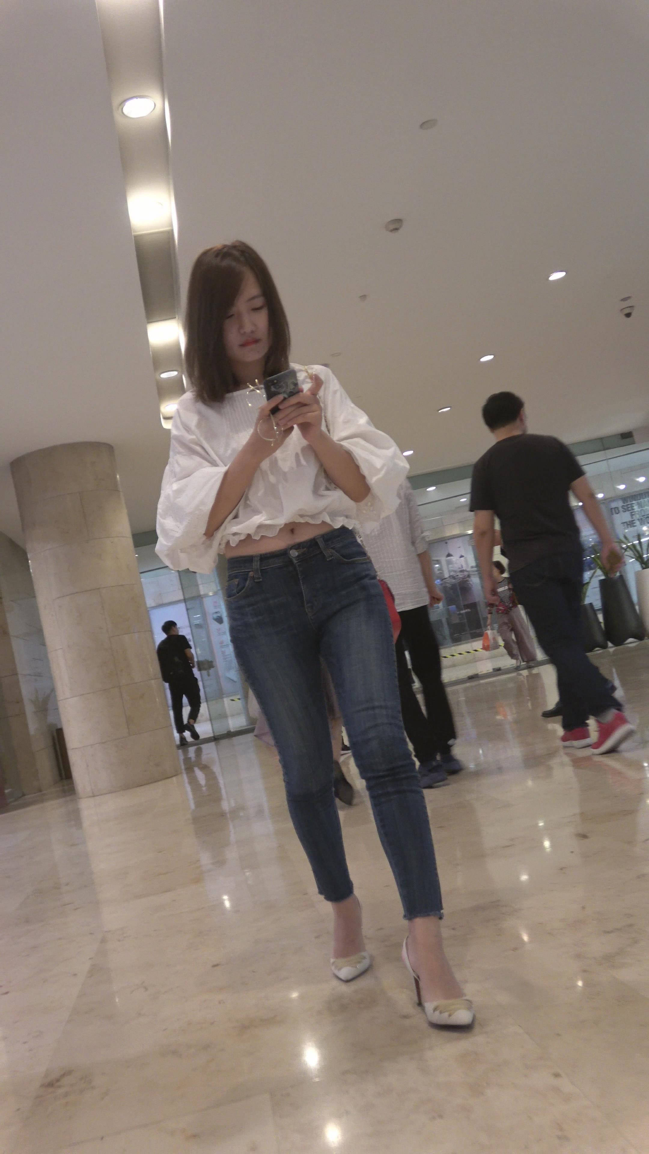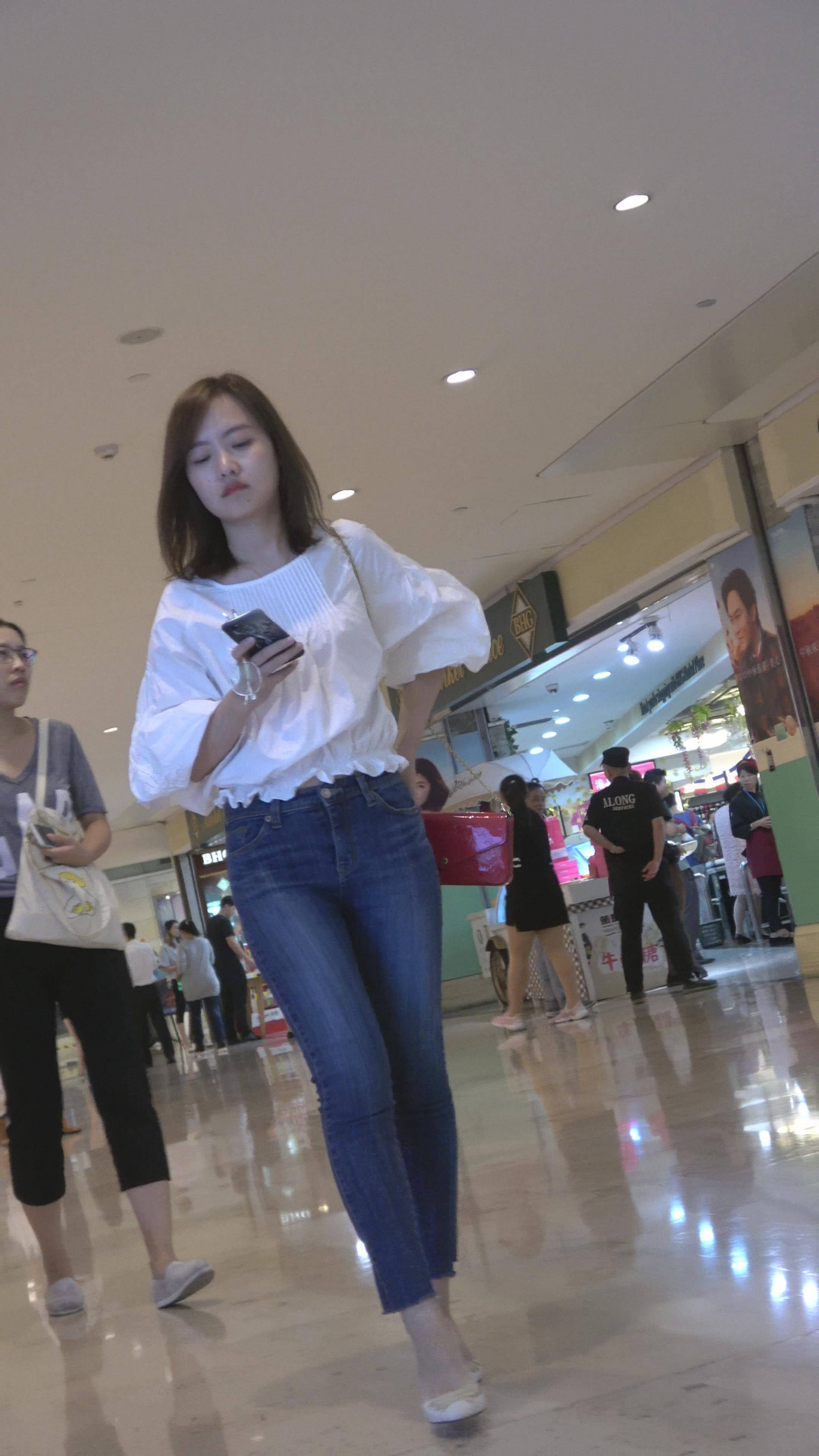 4K 街拍牛仔紧身裤白衬衫御姐美女 编号7494