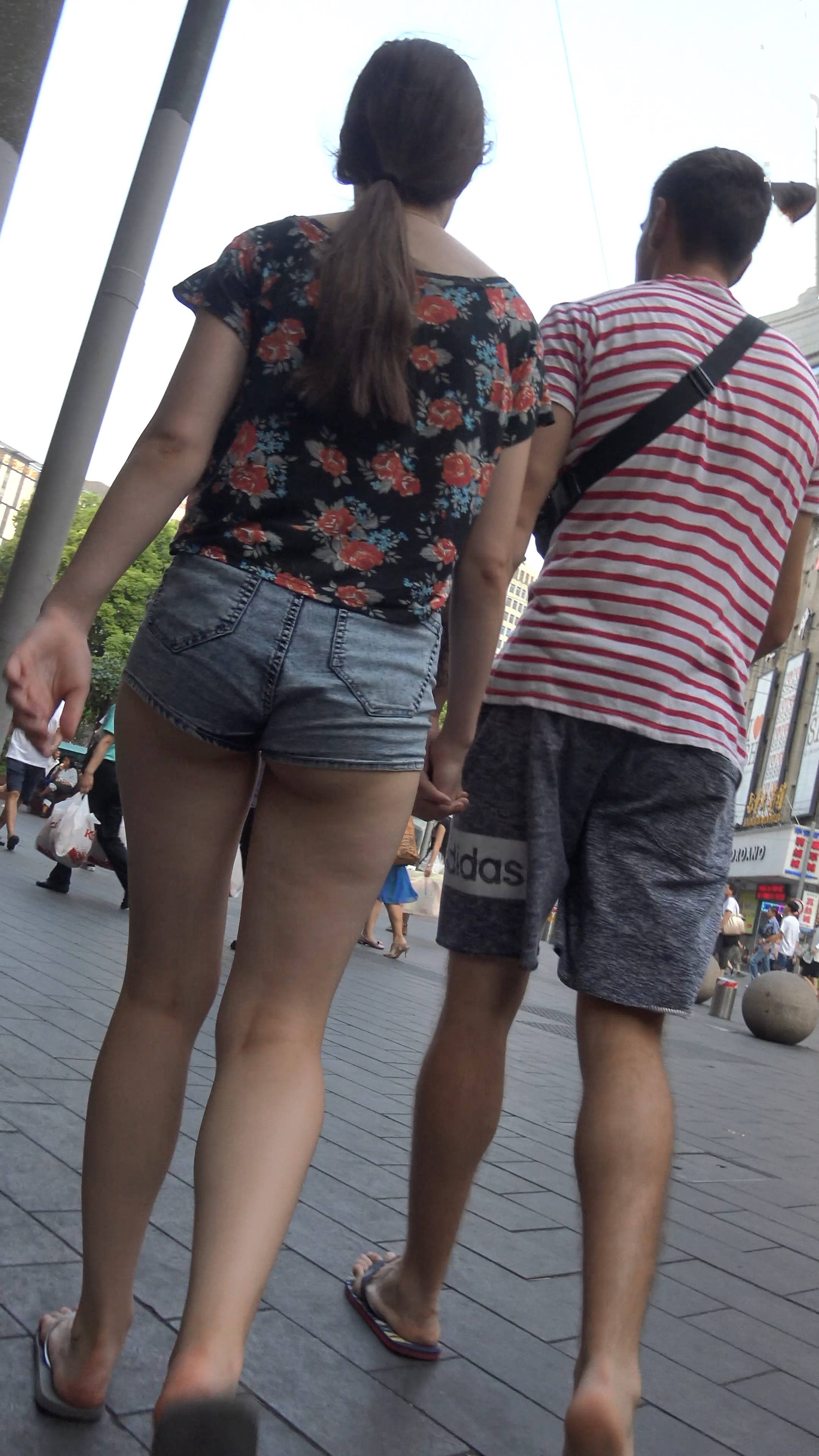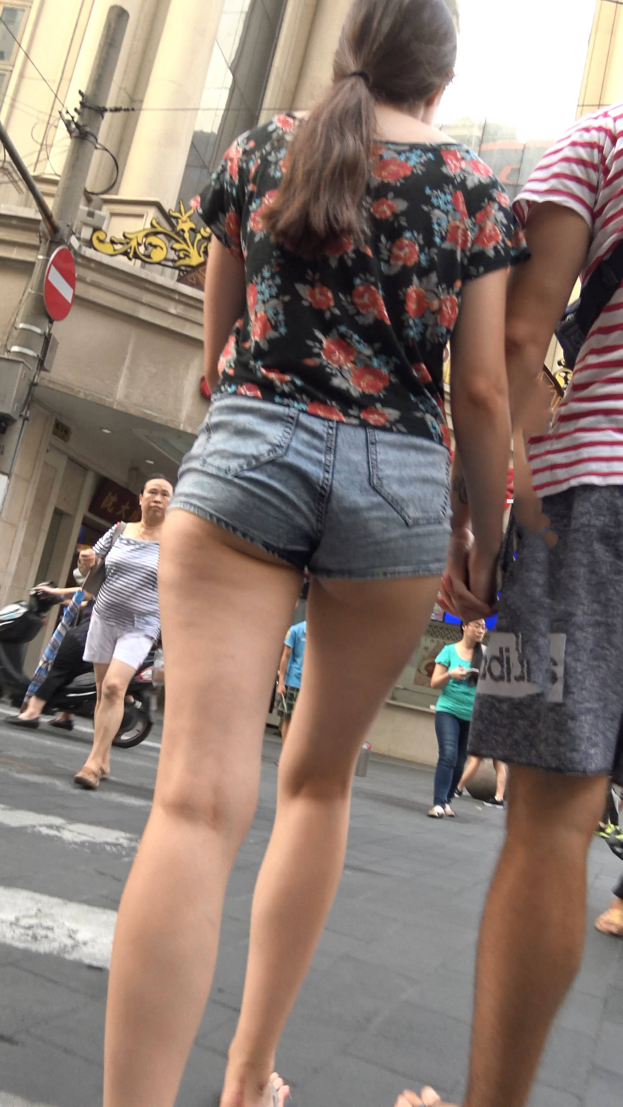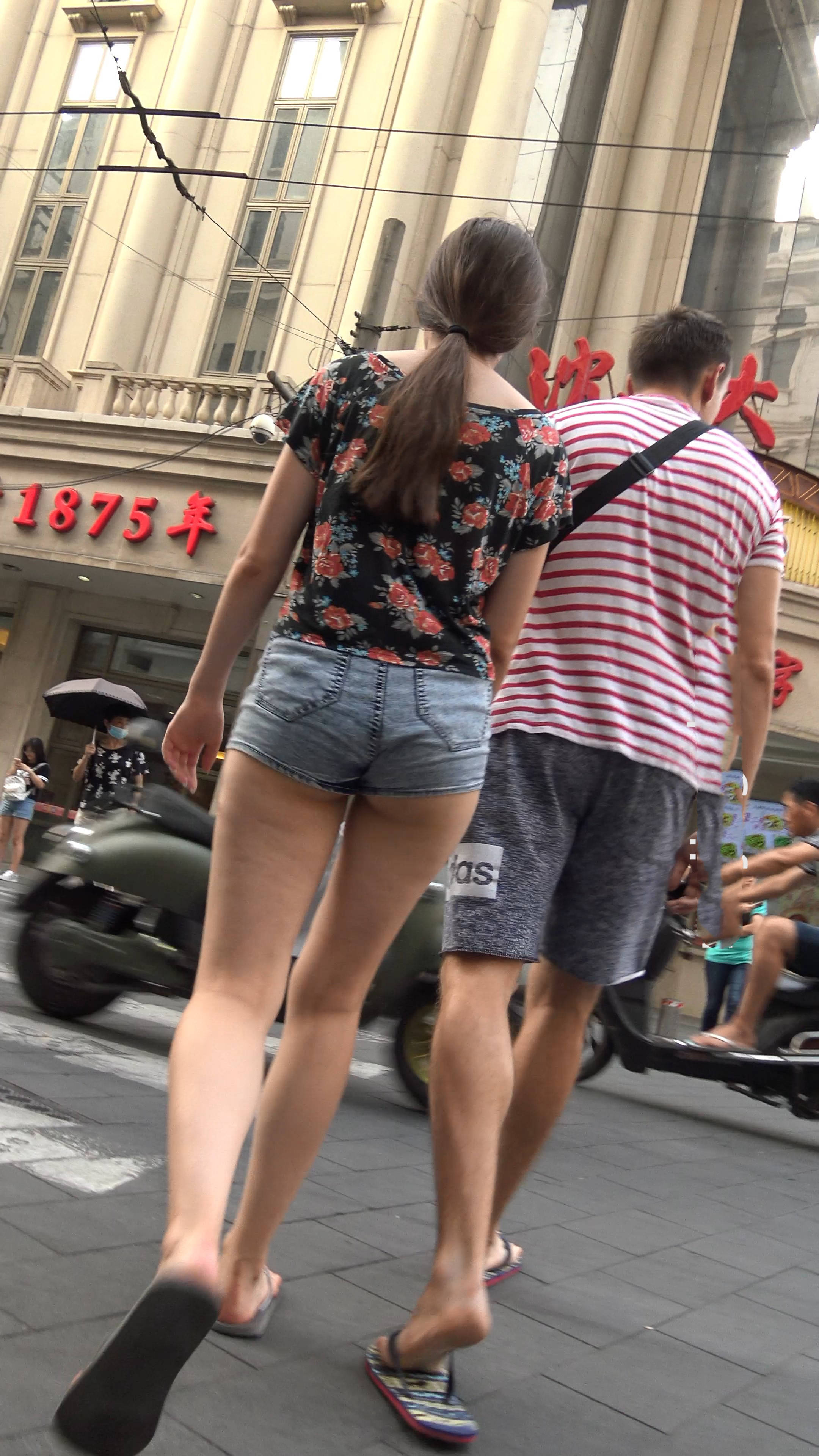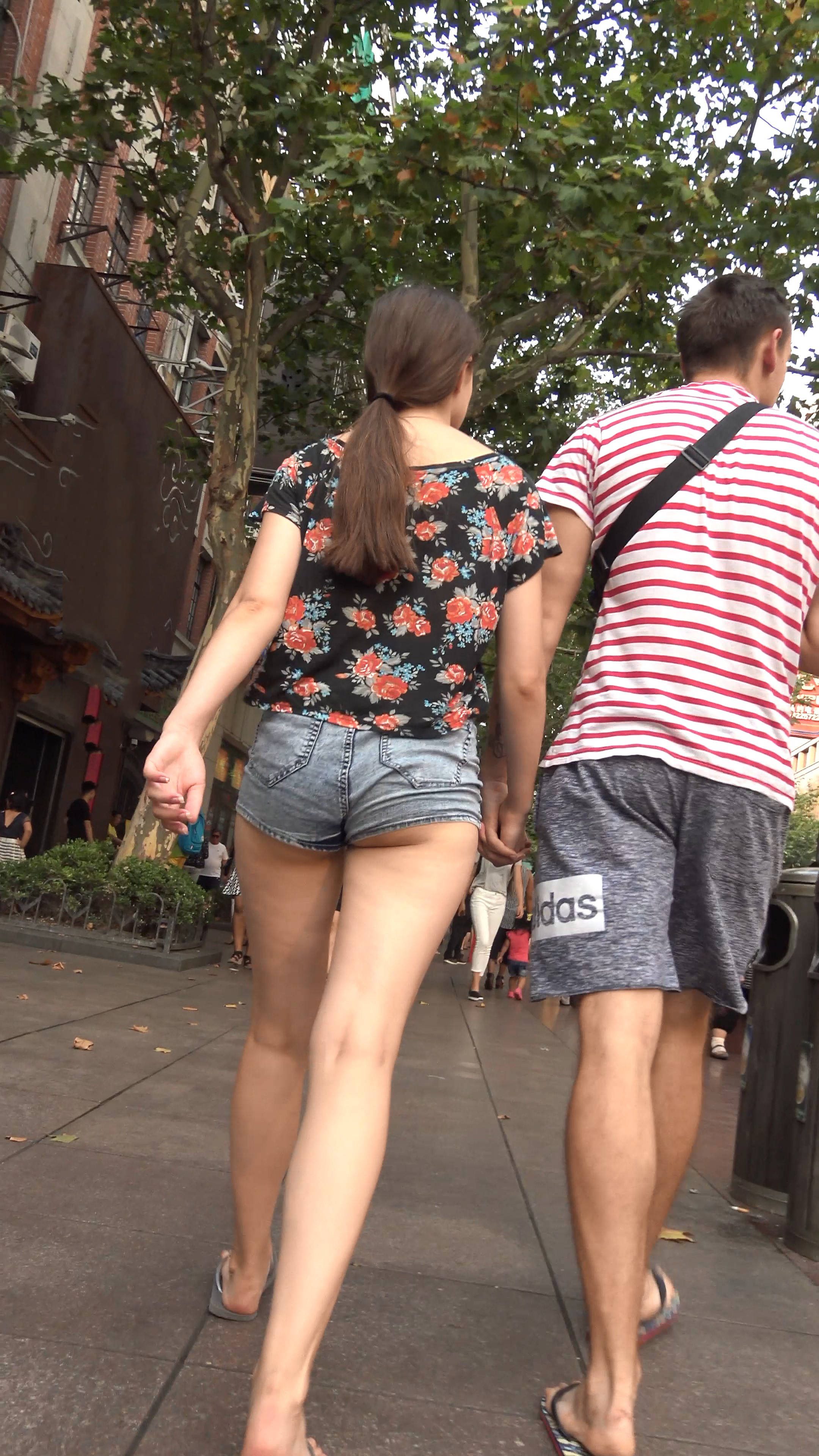 4k-超短高腰牛仔热裤洋妞跟男友逛街 编号7525