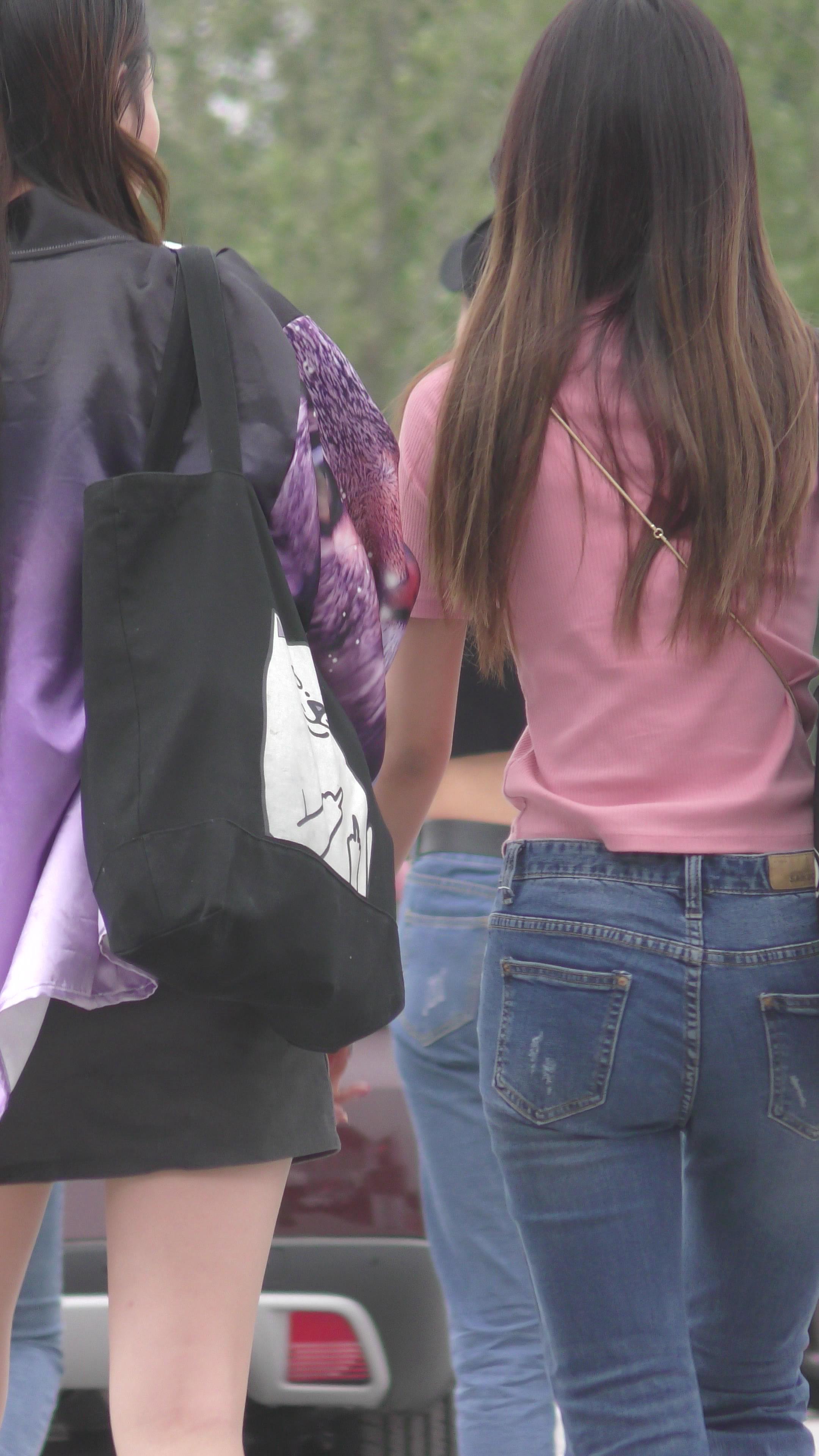 4K - 街拍鸭舌帽极品破洞紧身牛仔美女 编号3353