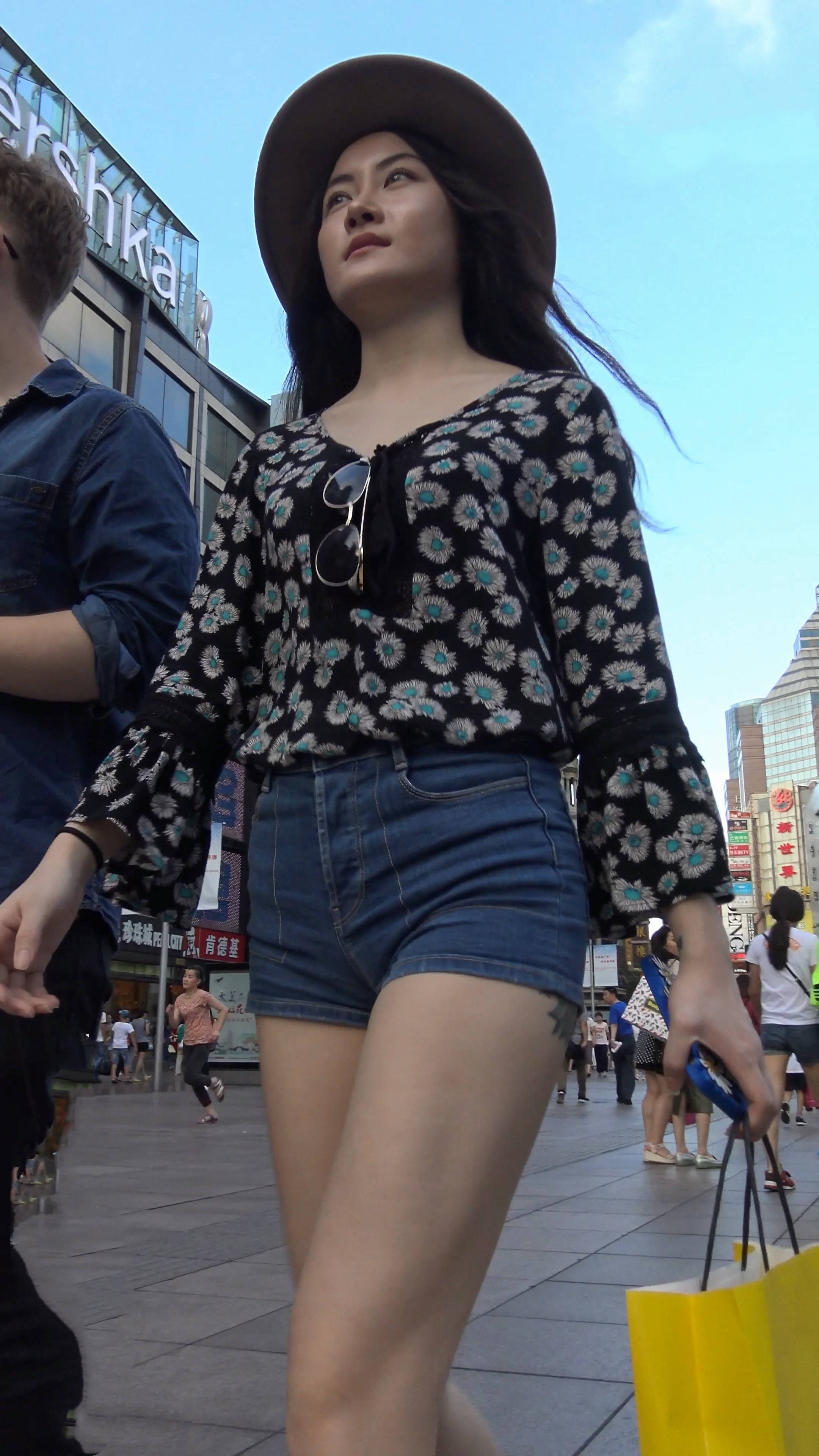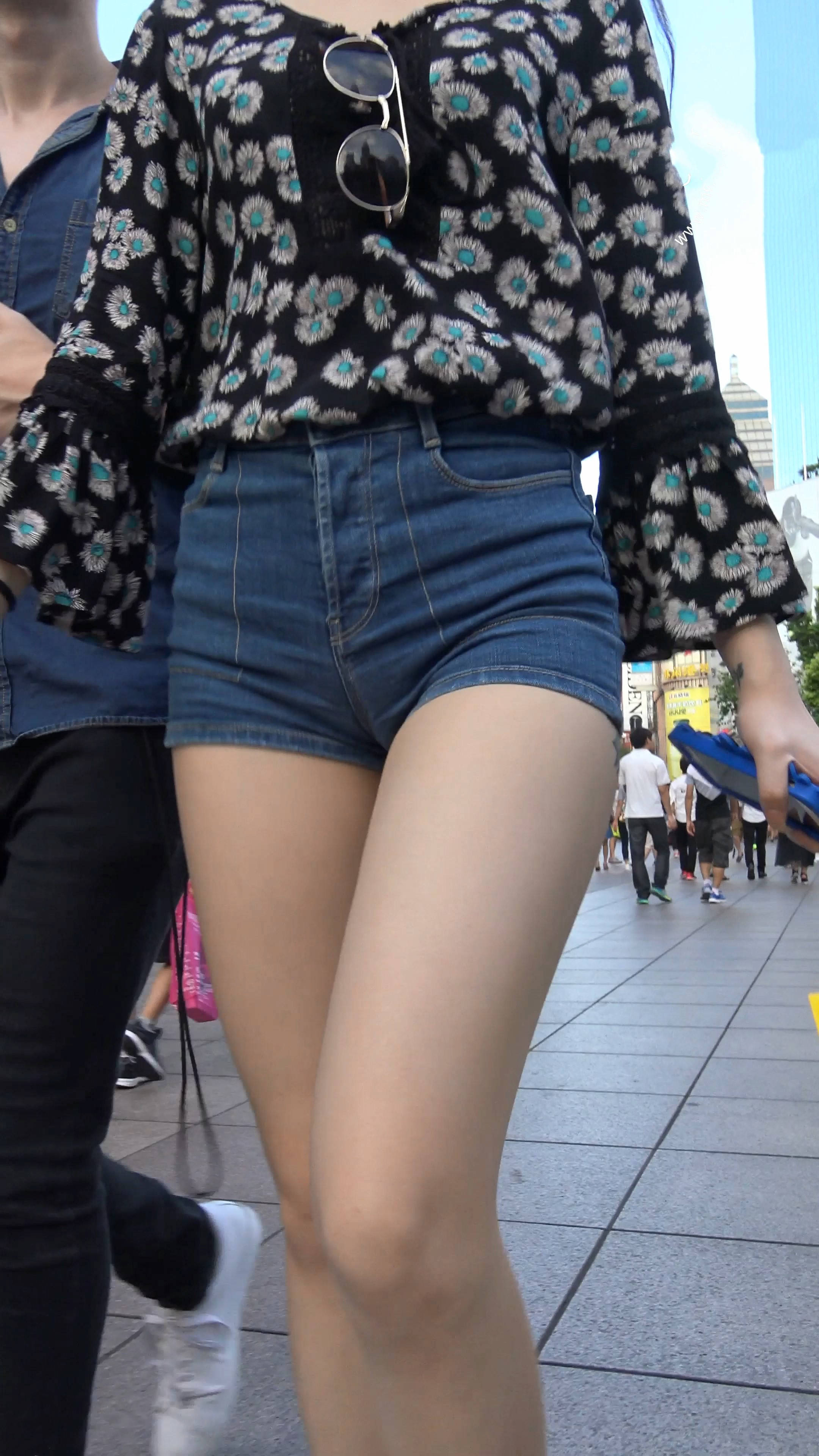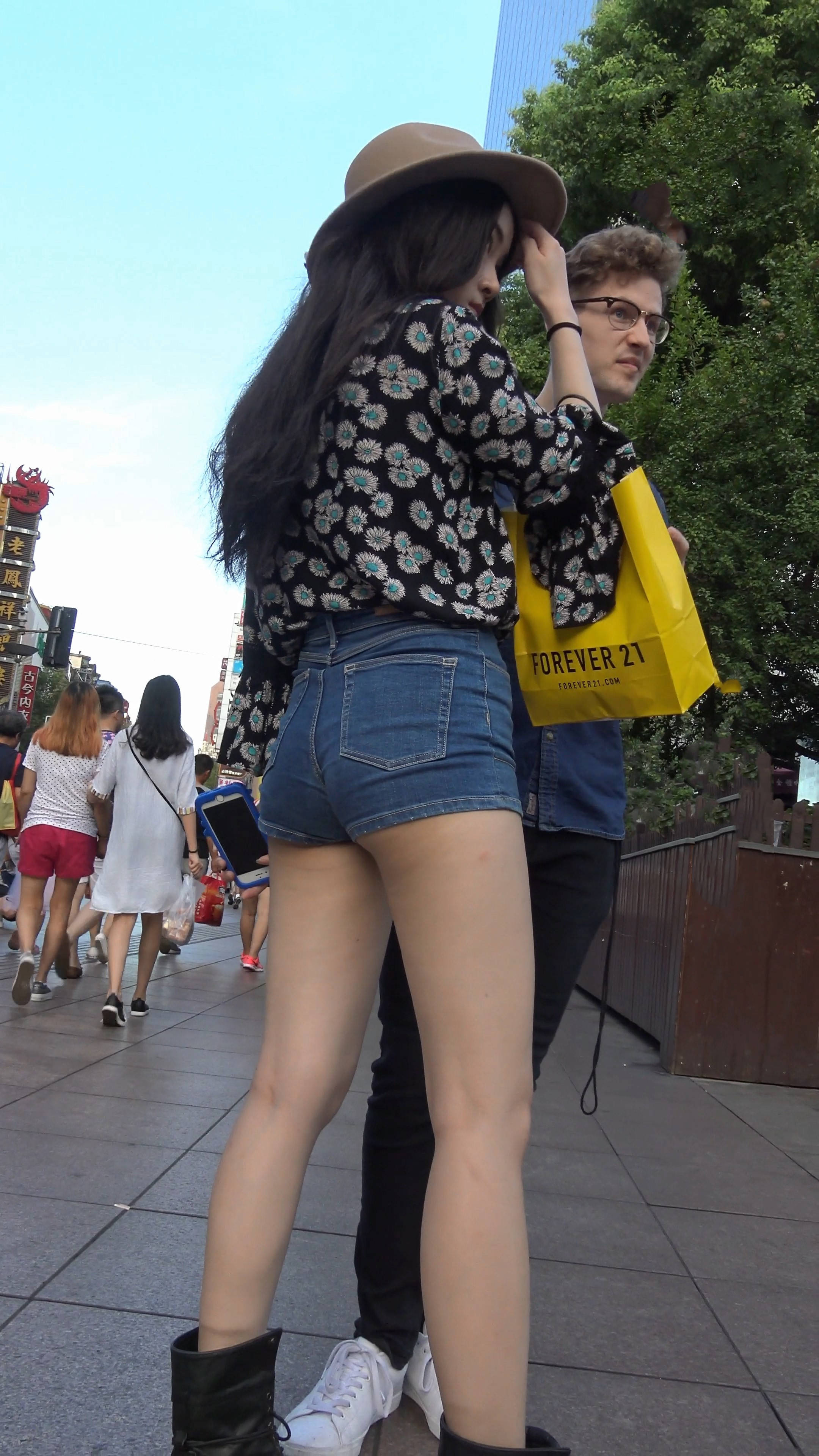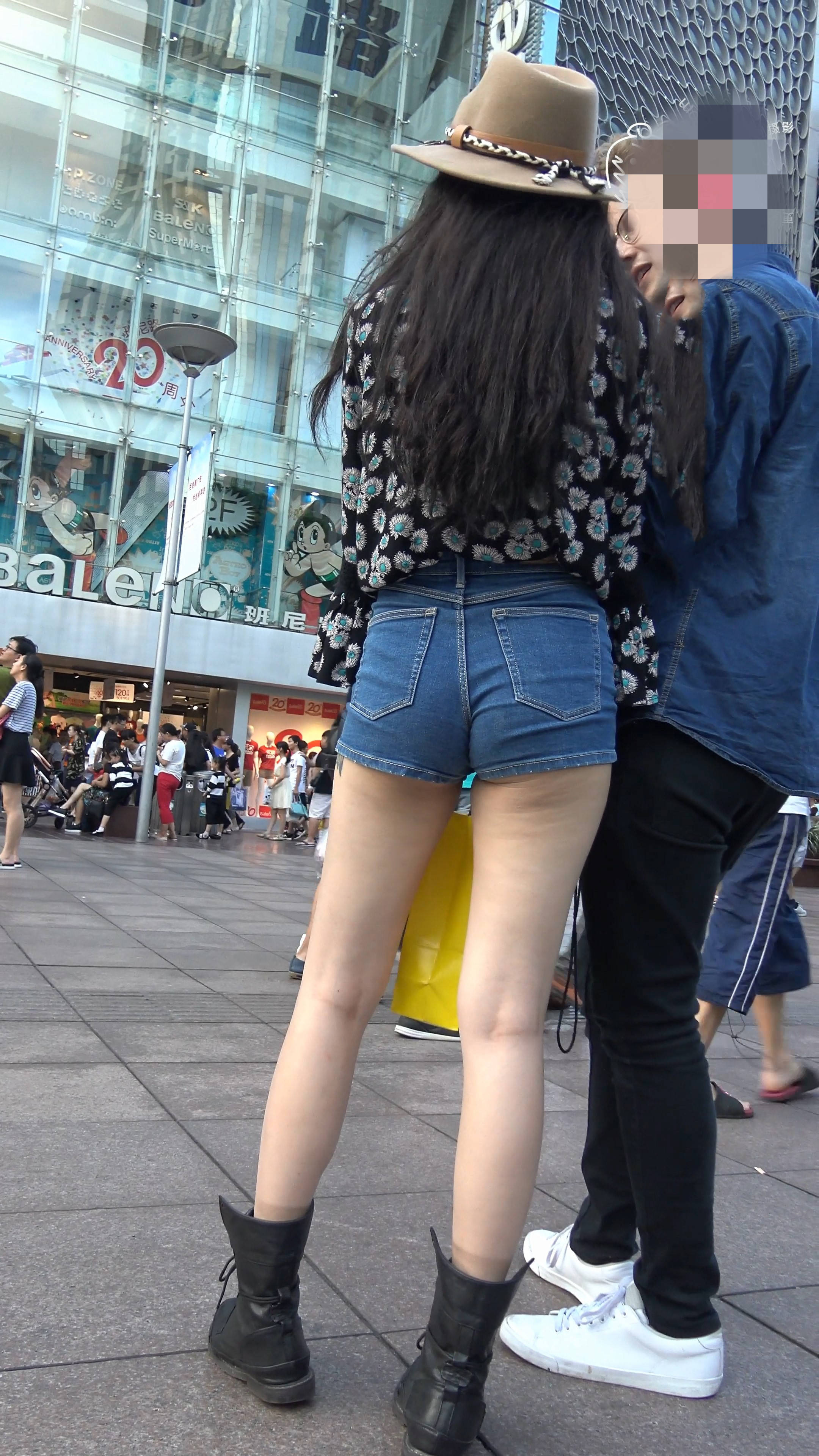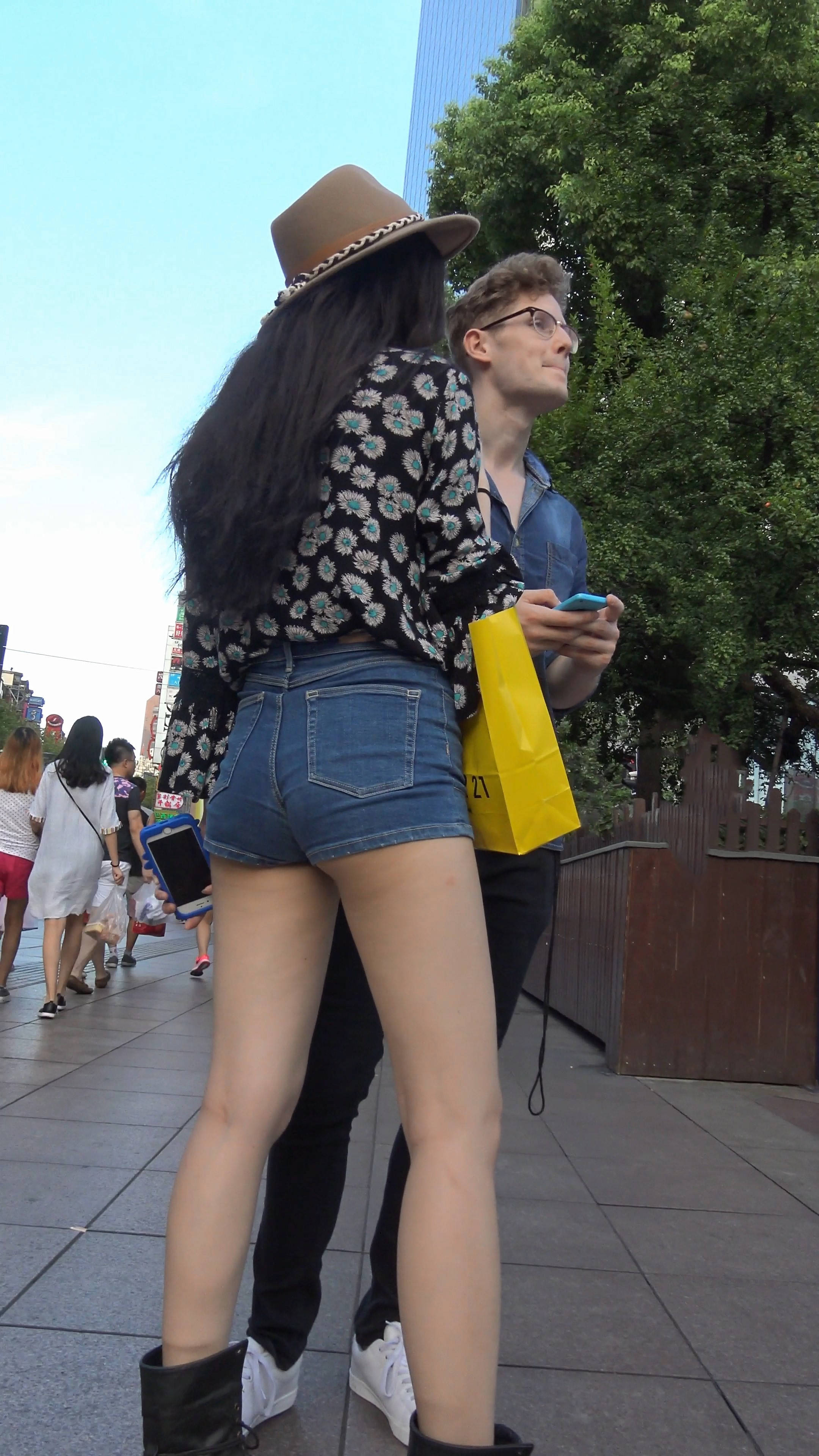 4k-街拍高腰紧身牛仔热裤长腿美女与她的外籍男友 编号7539