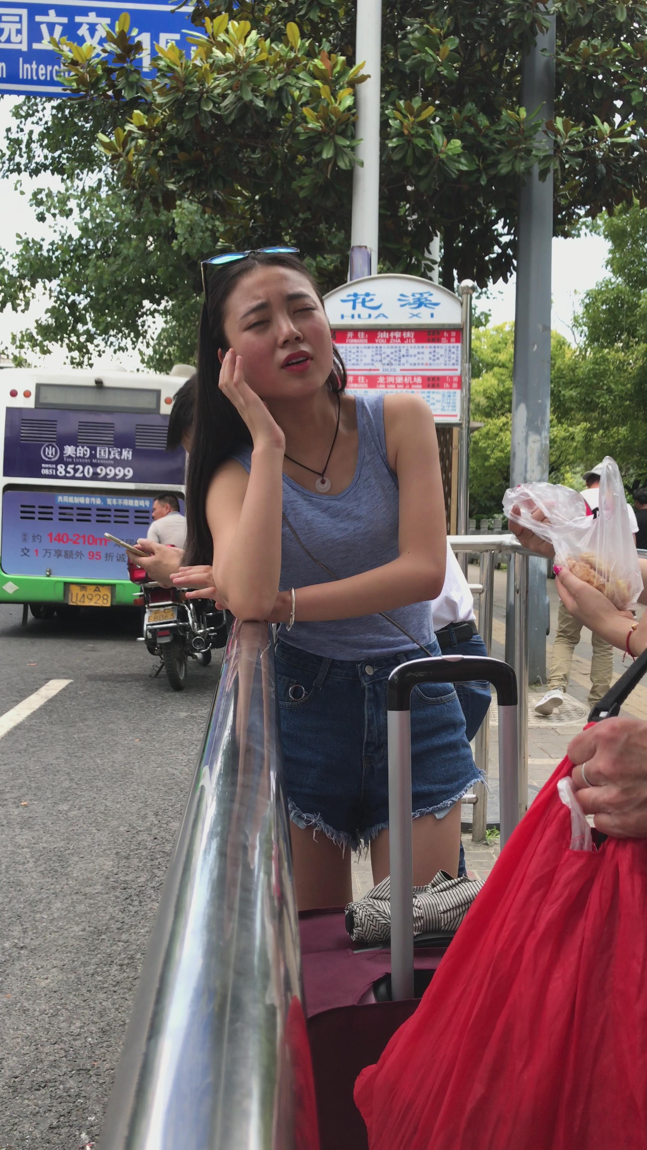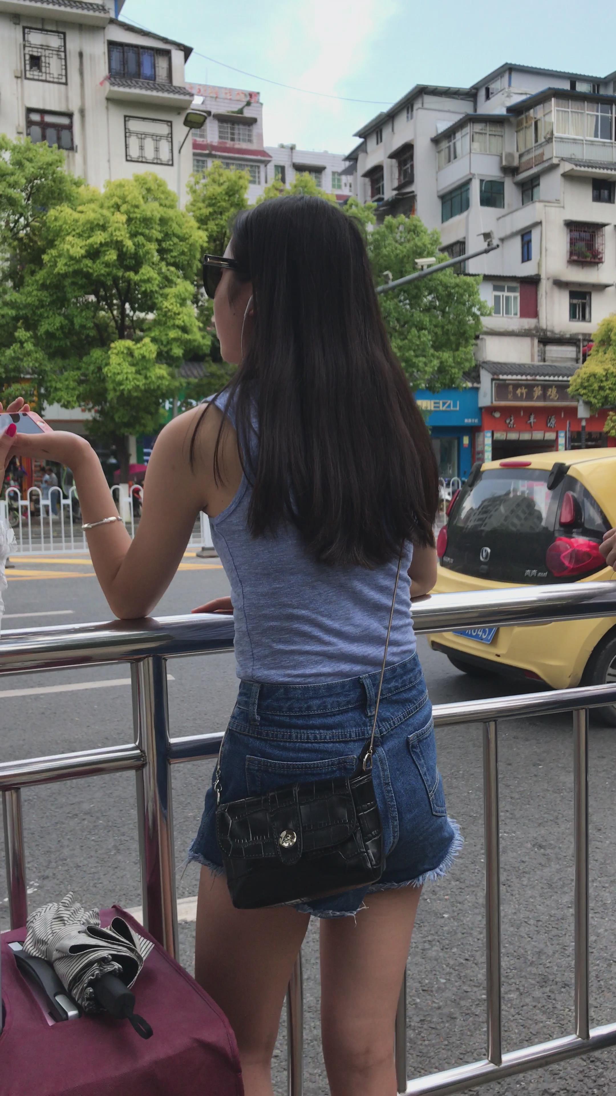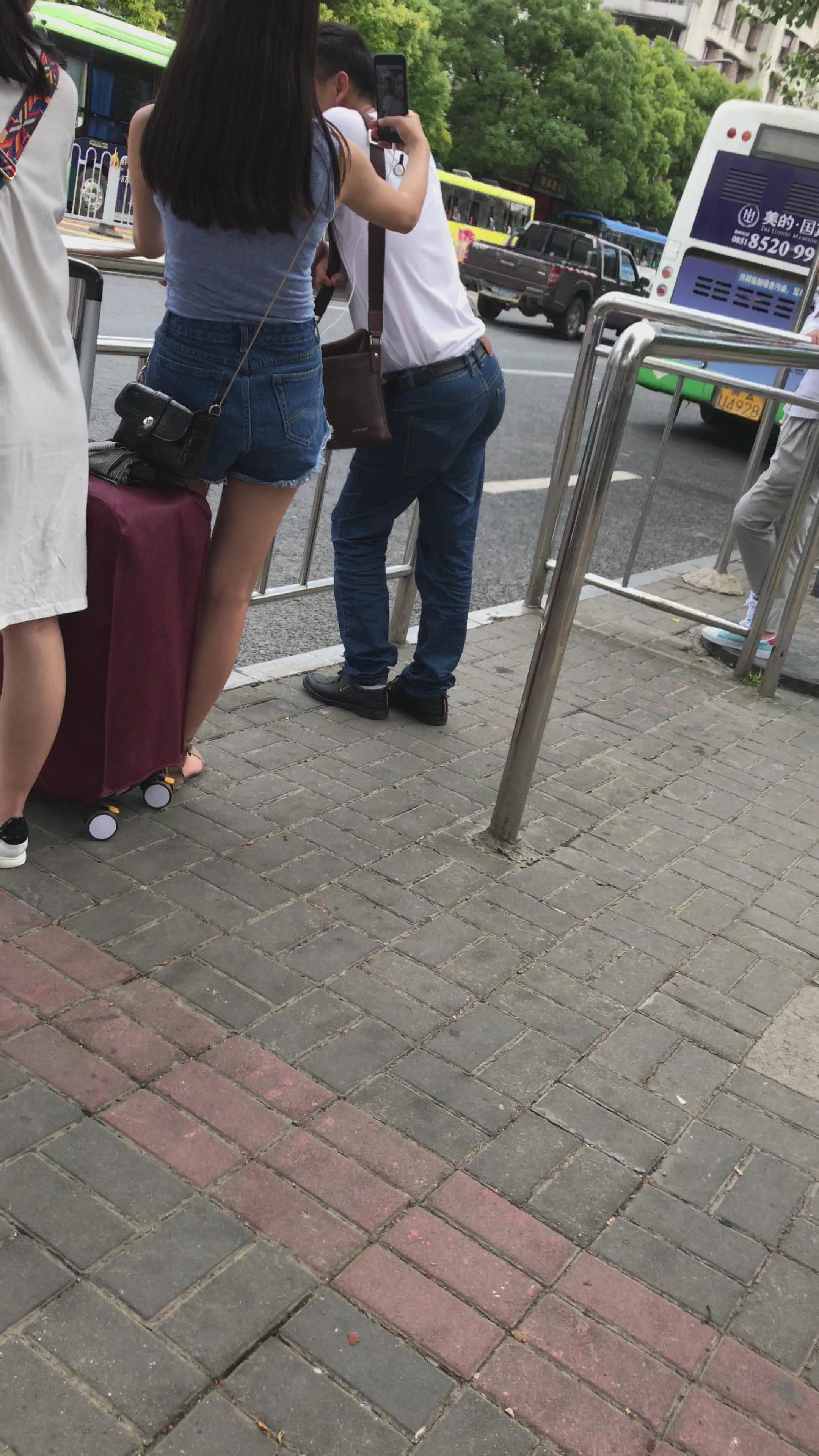4K - 等车的高腰热裤丰满街拍美女 编号3356