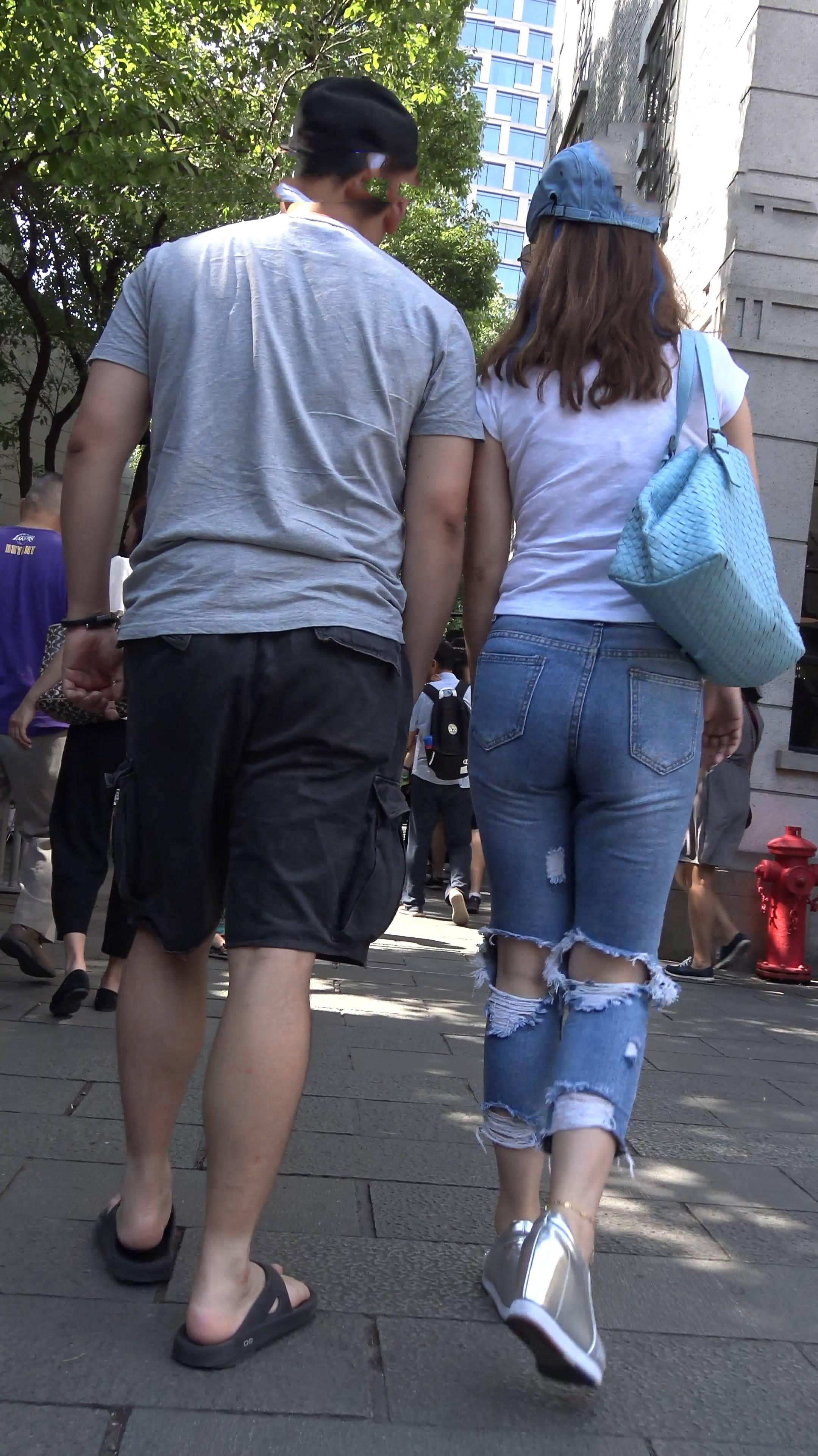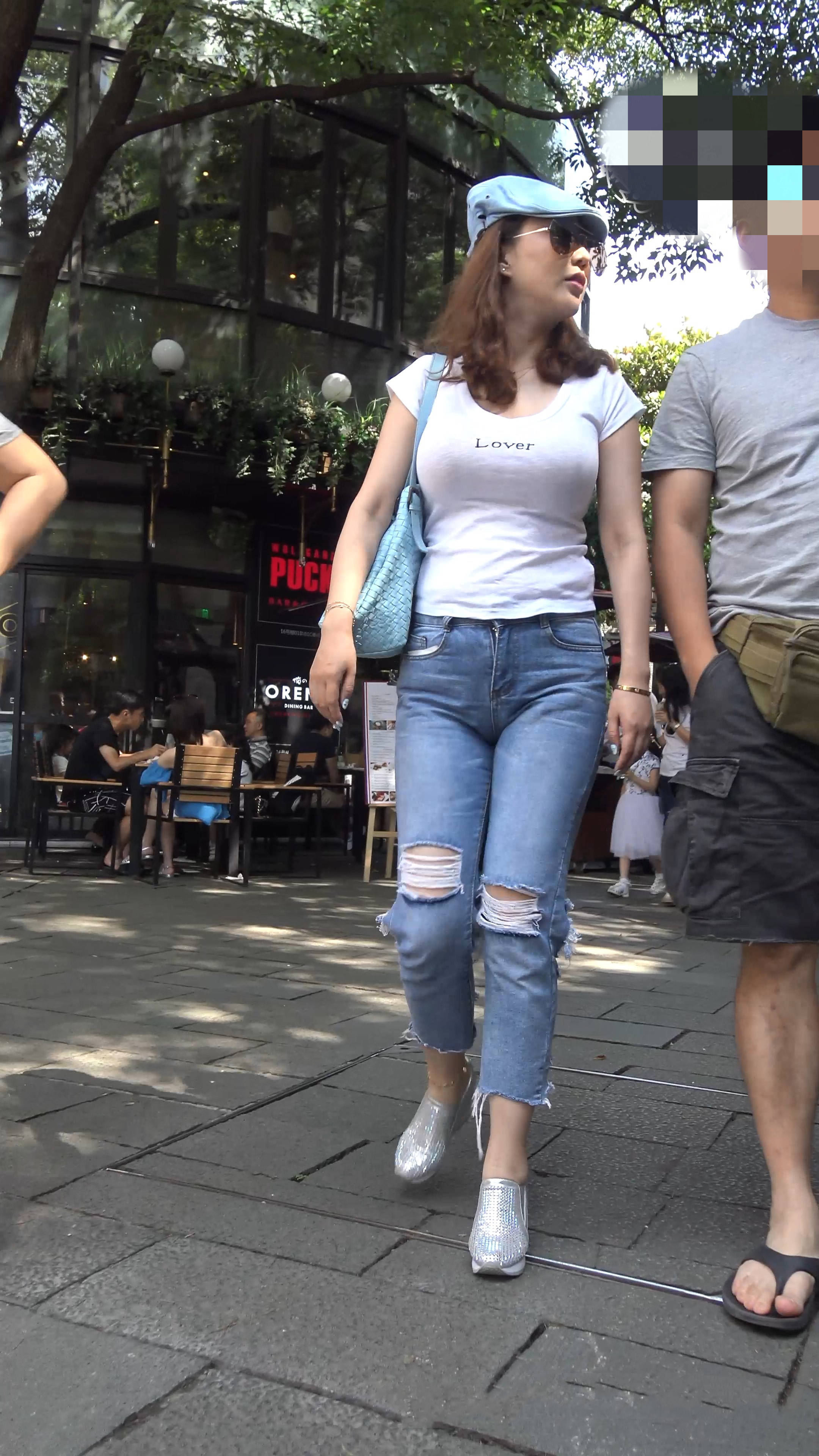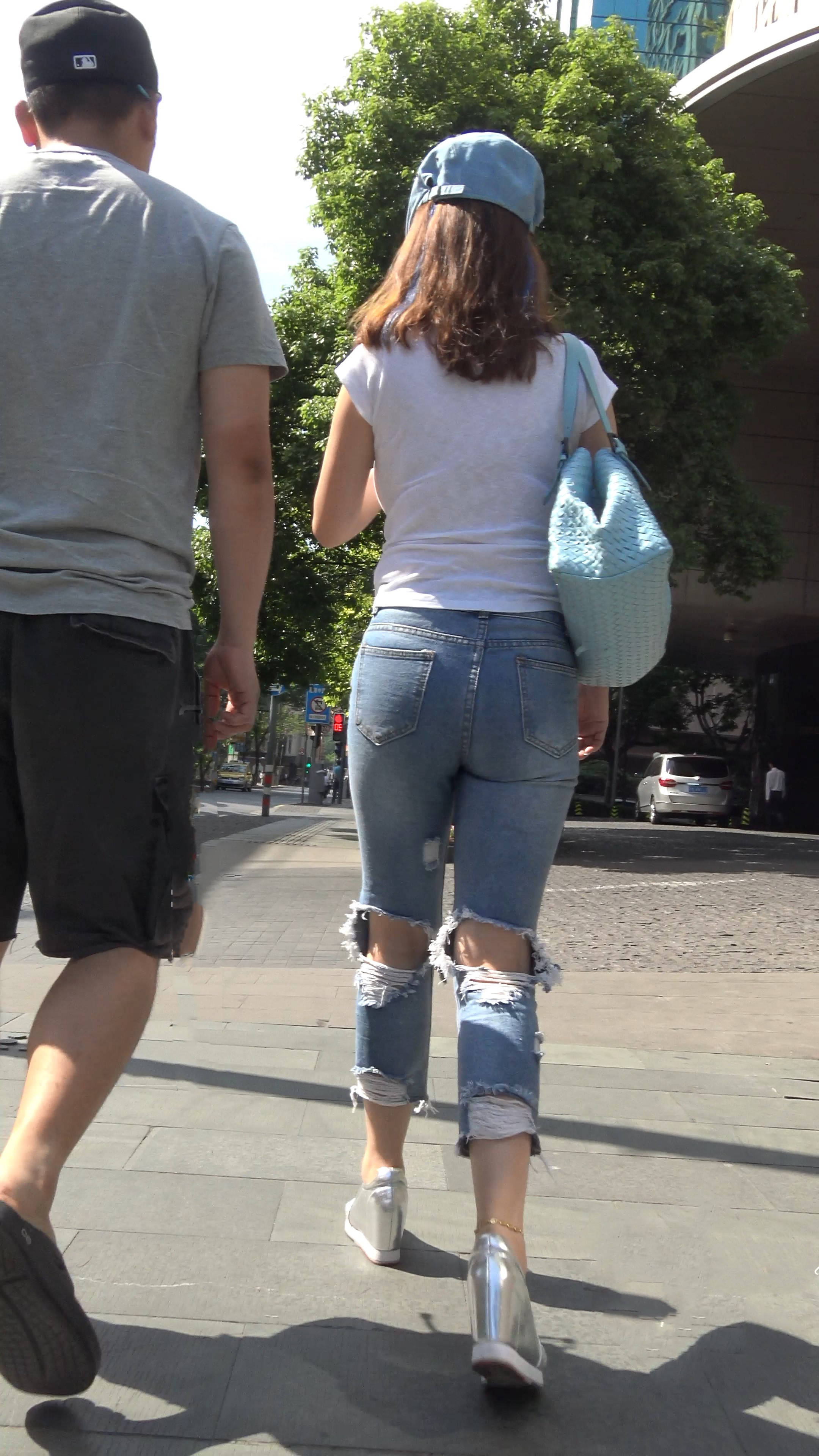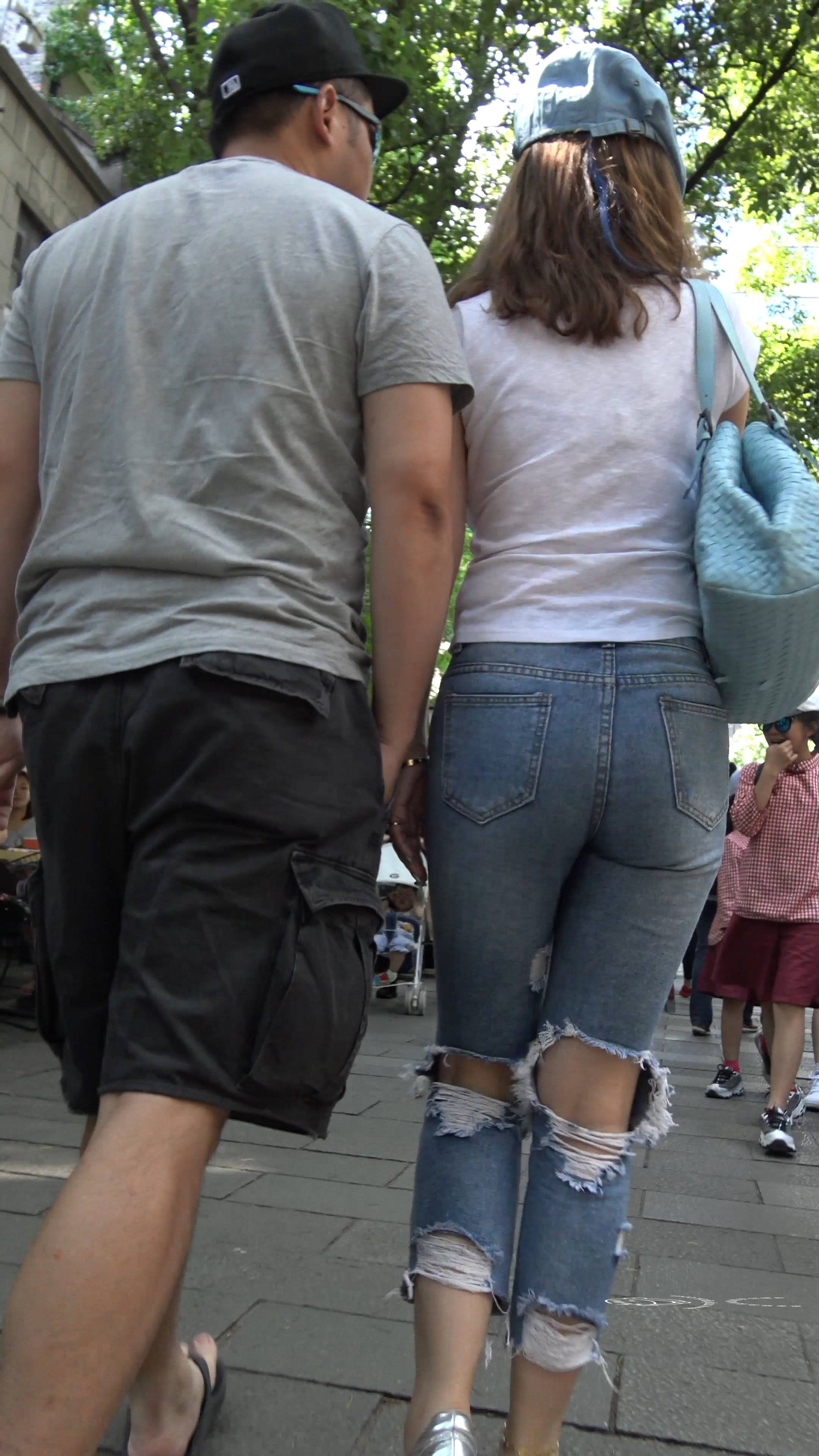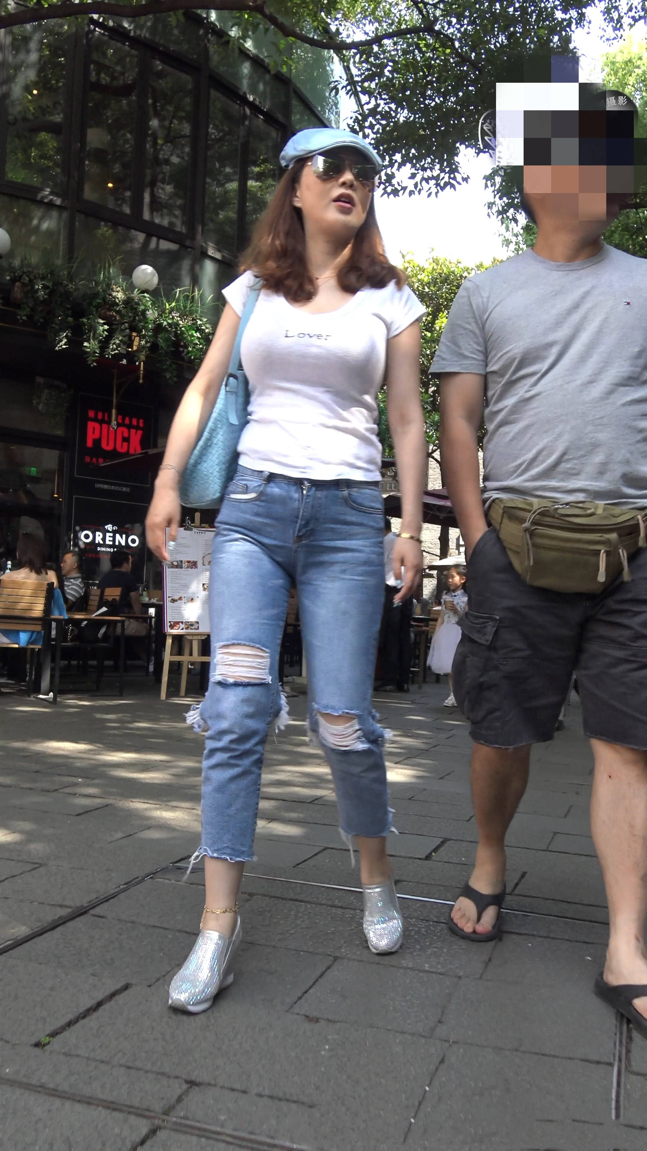 4k-街拍丰满紧身破洞蓝牛大美女 编号7589