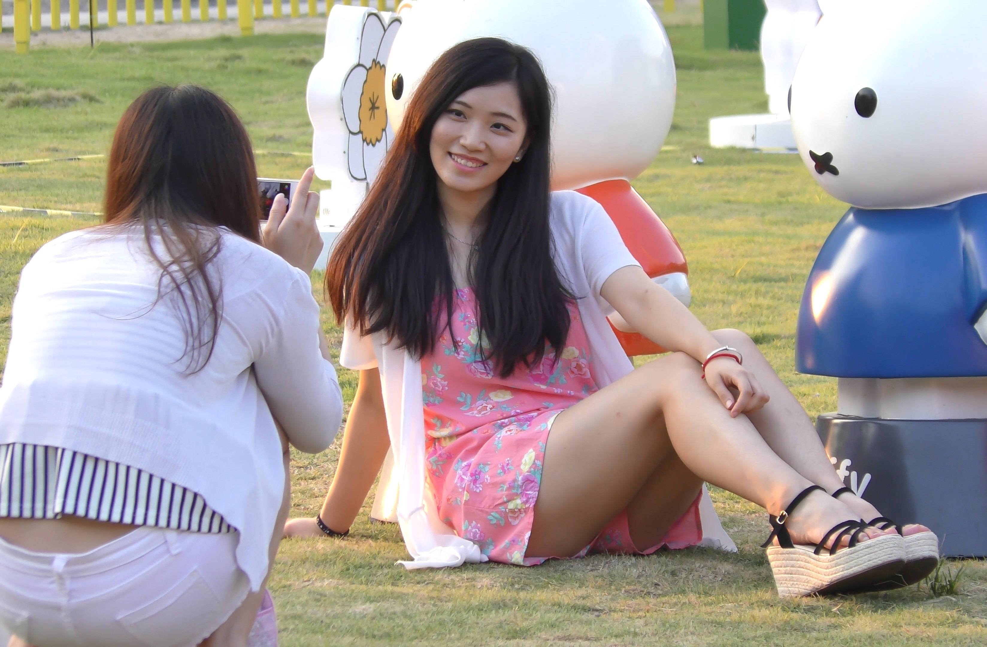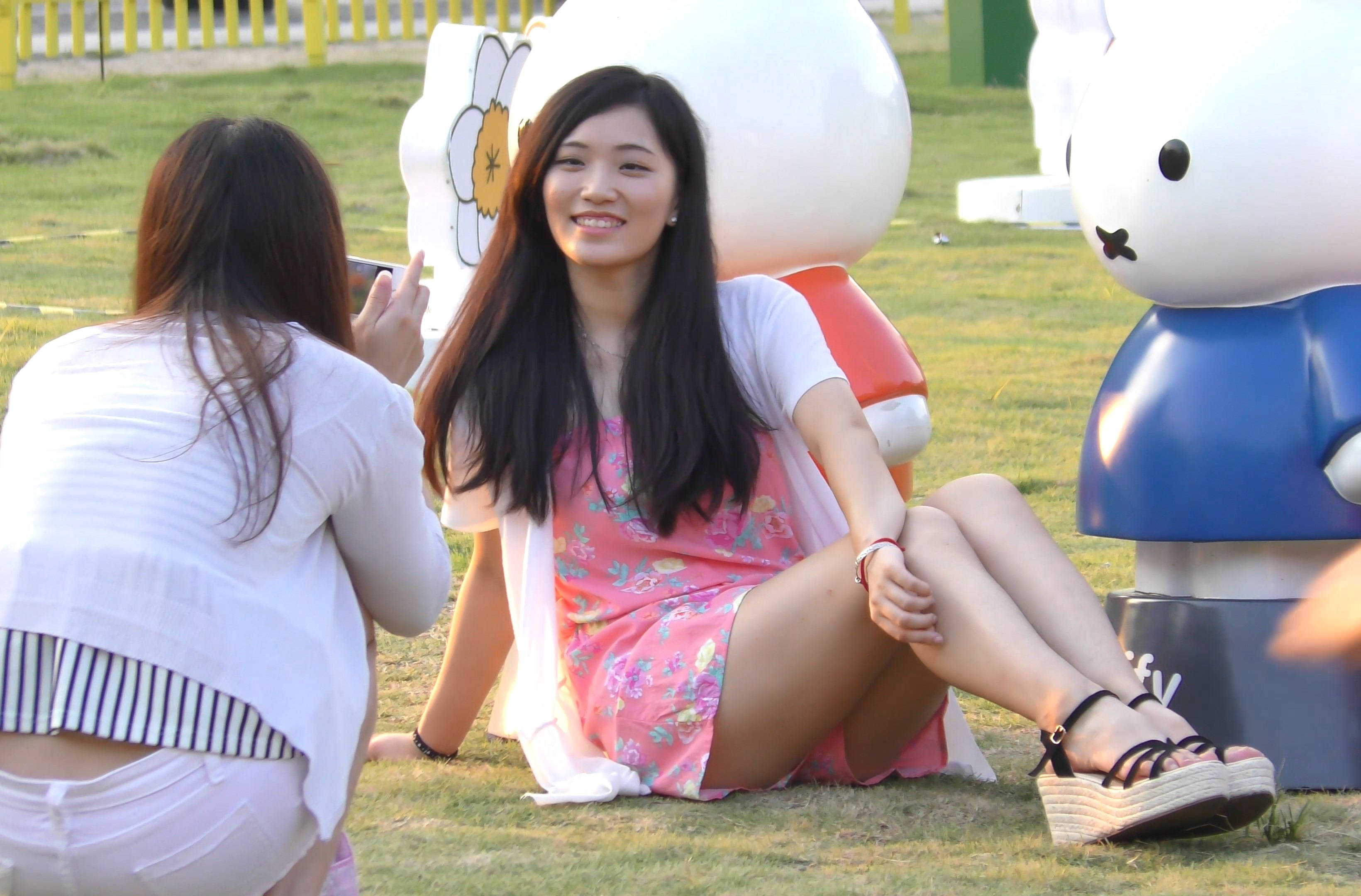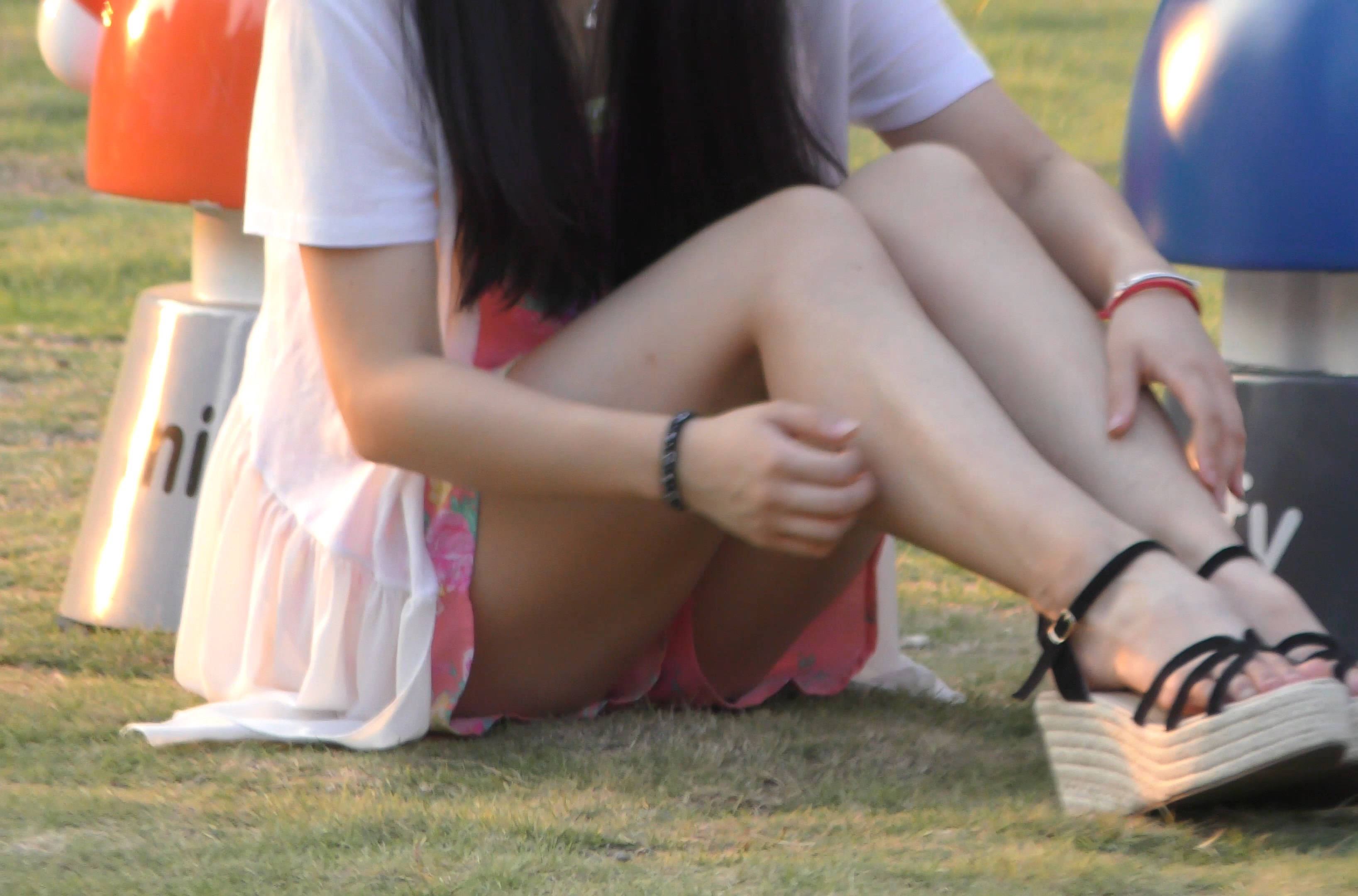 4k-颜值爆表笑容甜美小姐姐公园草地上拍照 编号7591