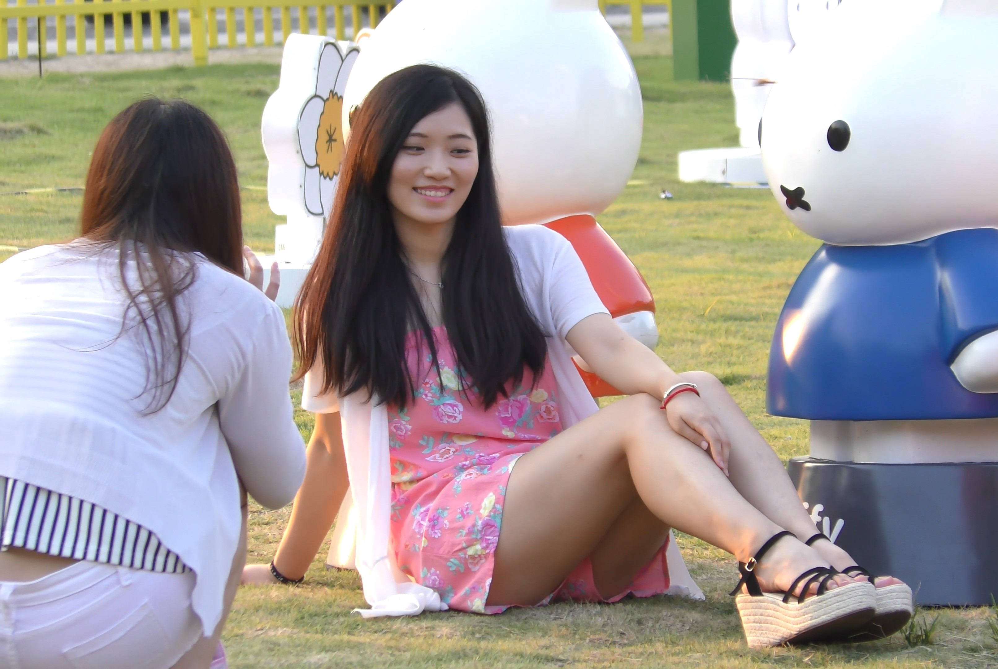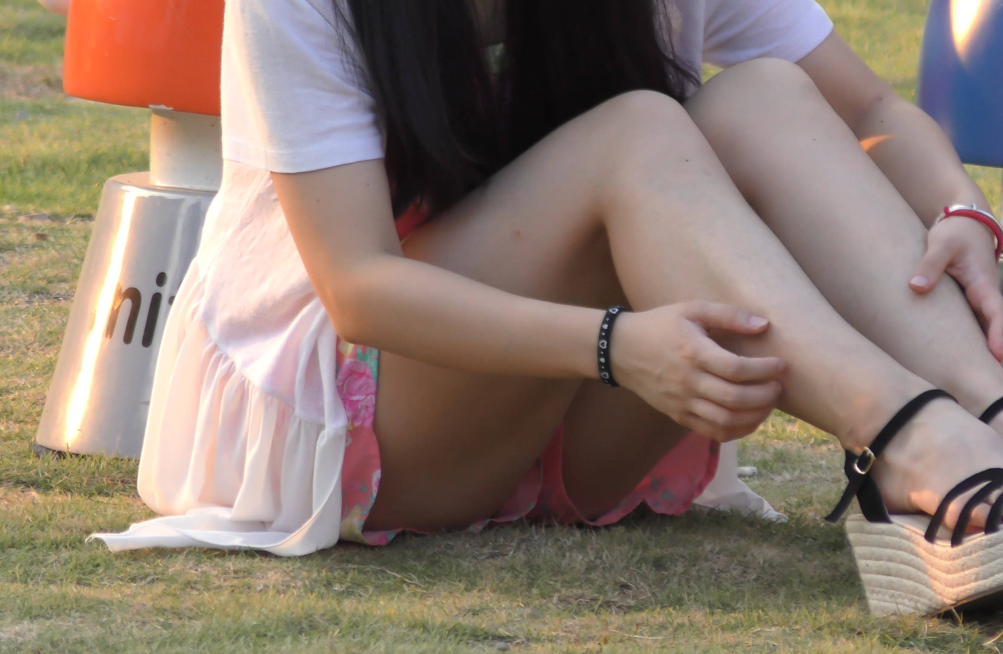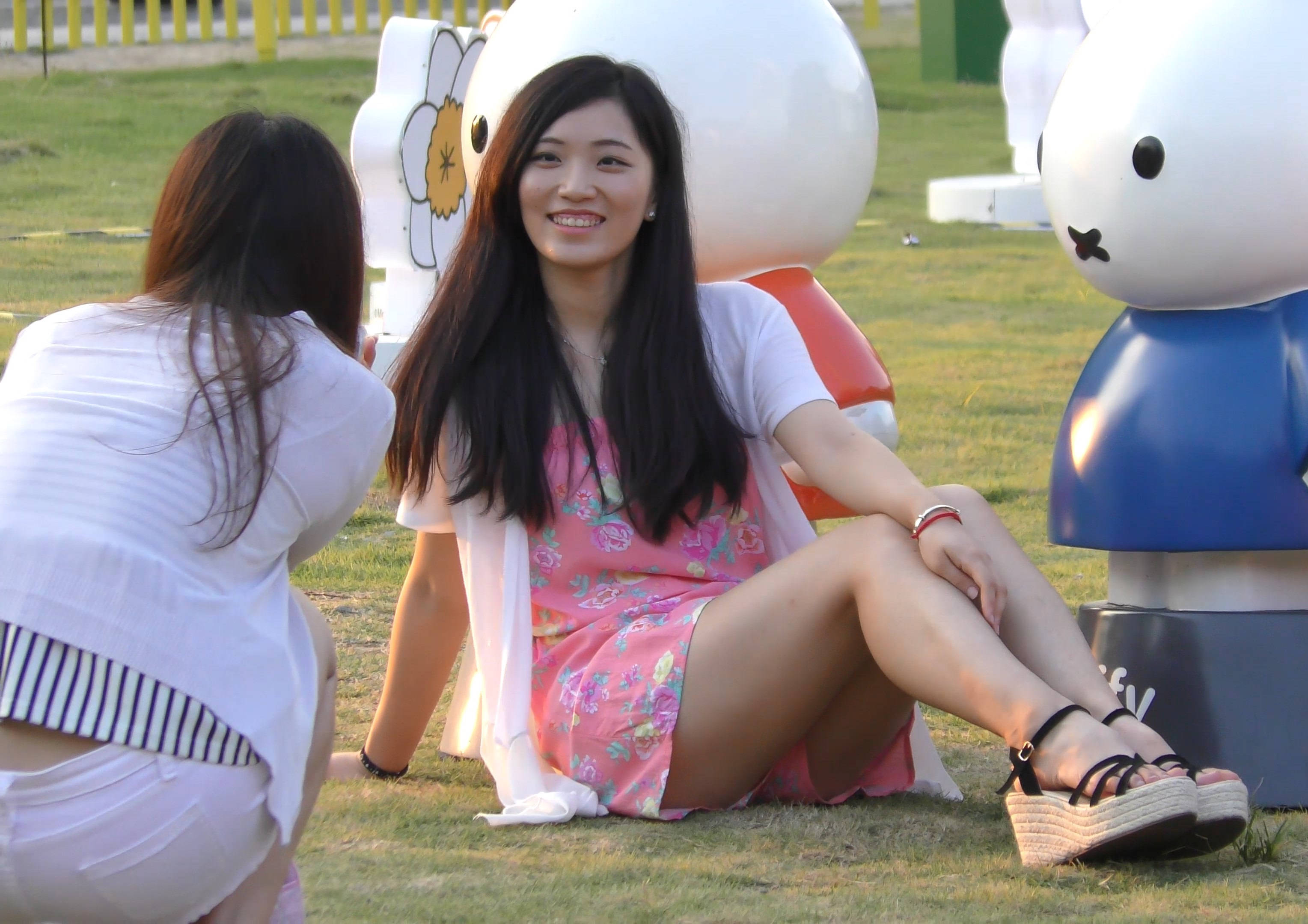 4k-颜值爆表笑容甜美小姐姐公园草地上拍照 编号7591