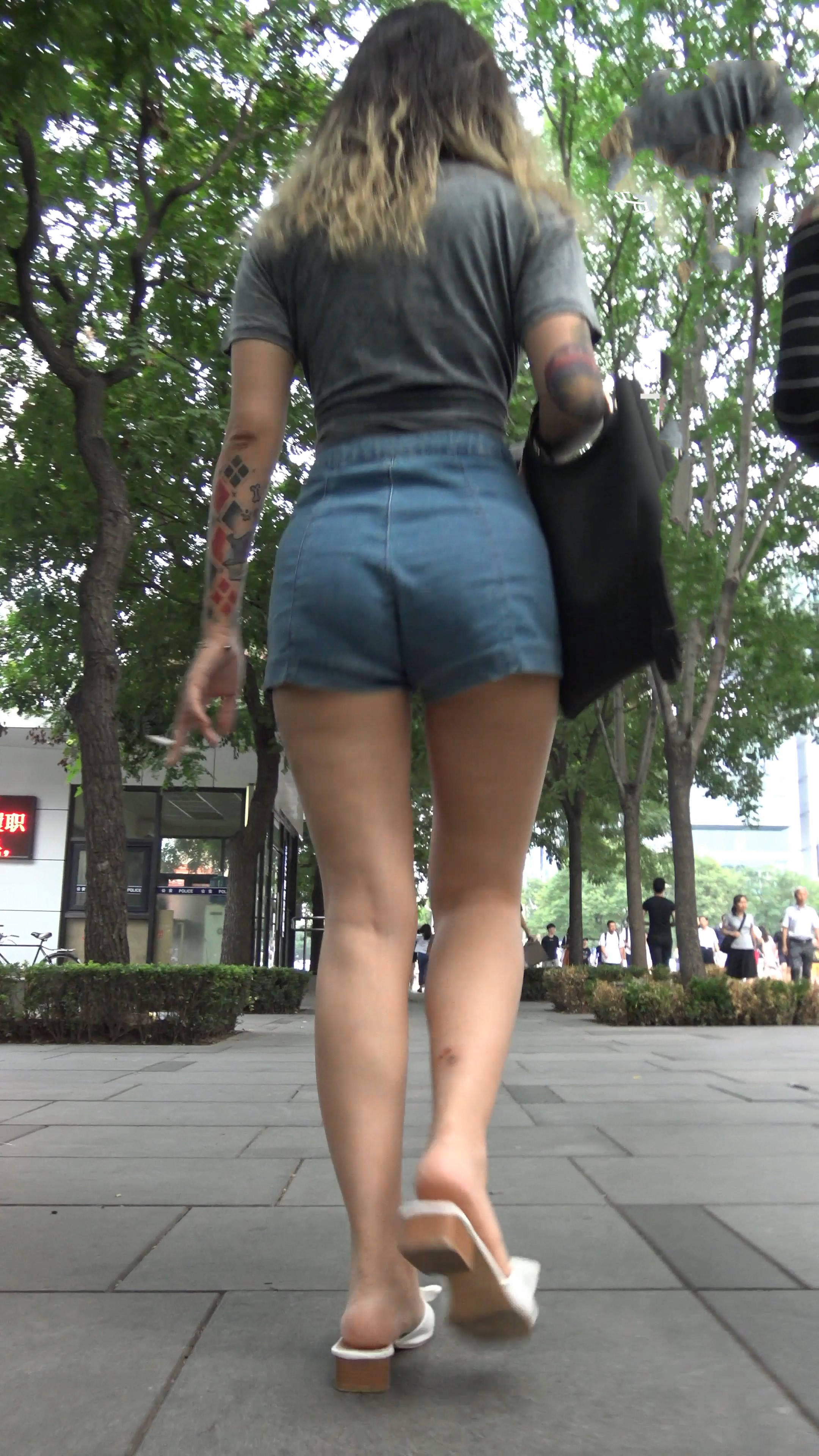 4k超清,街拍性感狂野纹身热裤姐妹淘 编号7680