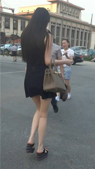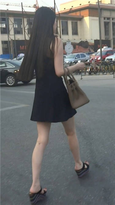 街拍黑色连衣裙细腿苗条美眉 编号3622
