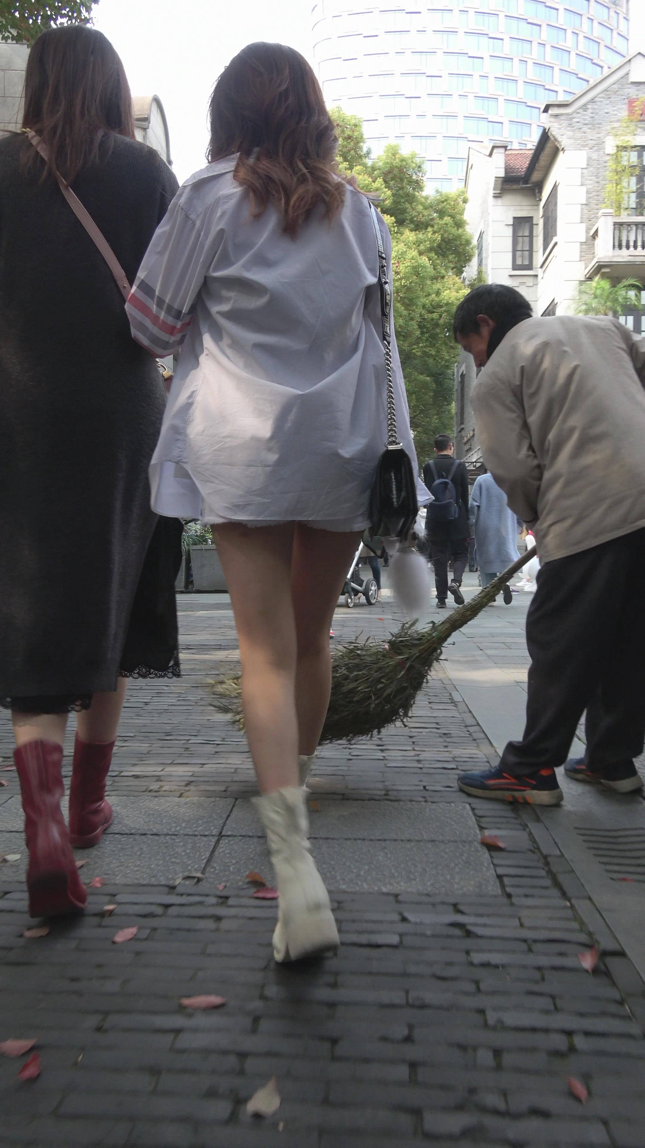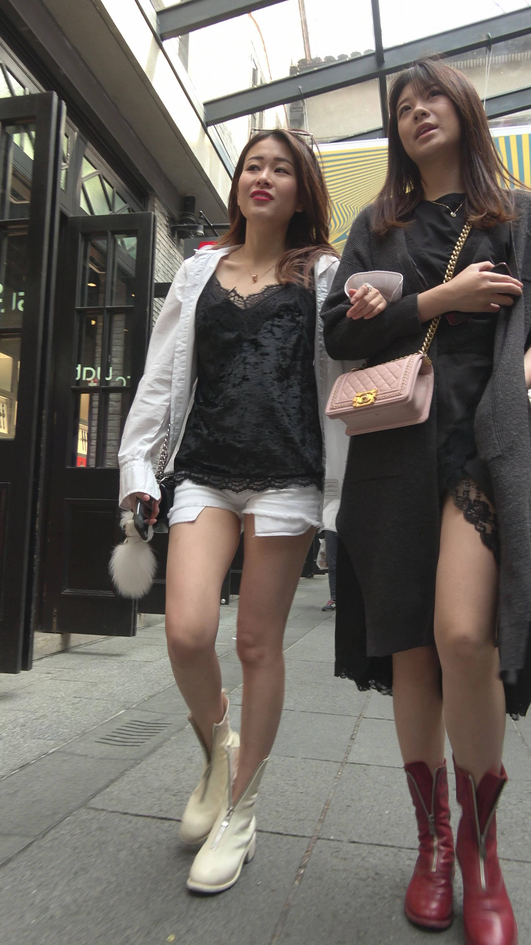 4K - 美丽笑容超短白裤蕾丝衣服气质街拍美女 编号7721