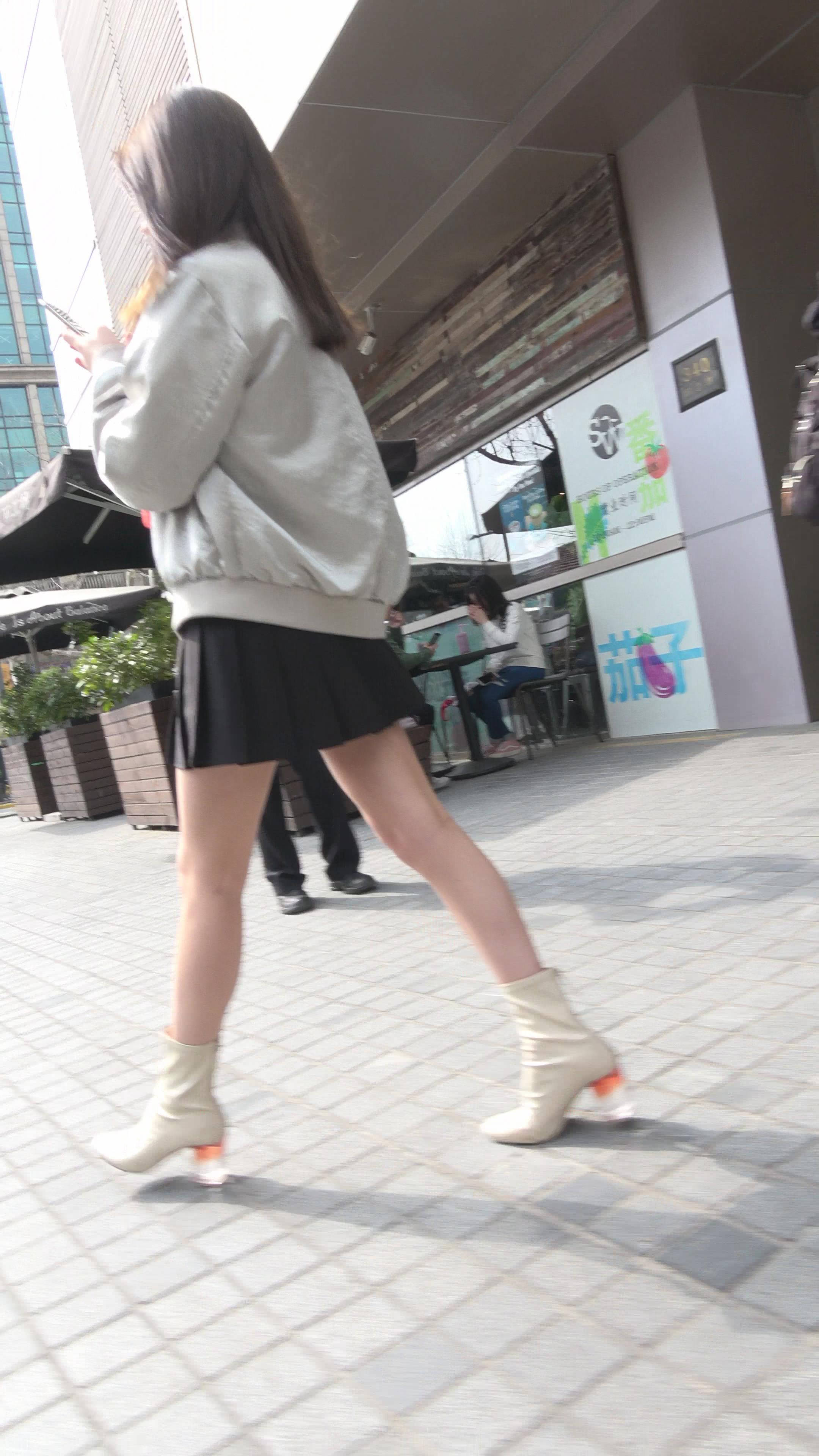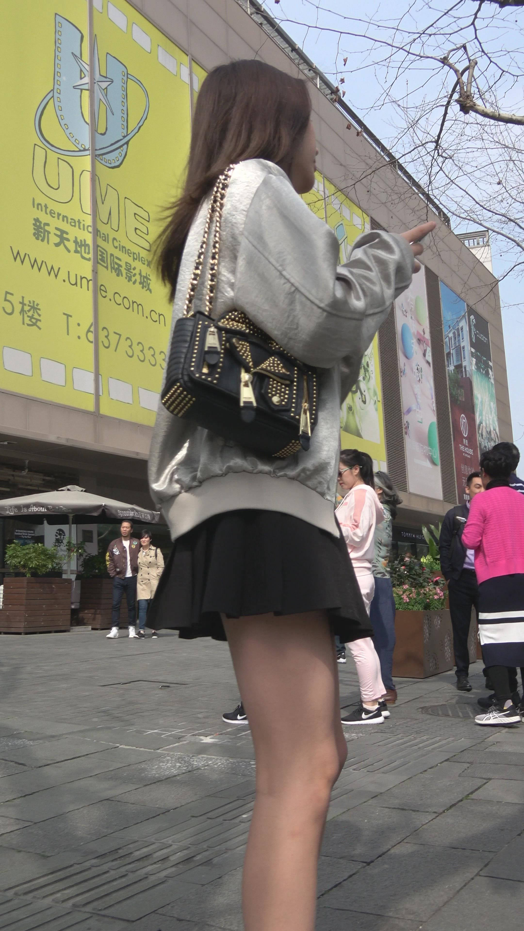 4K - 小清新黑色短裙街拍美女姐姐很有气质 编号7734