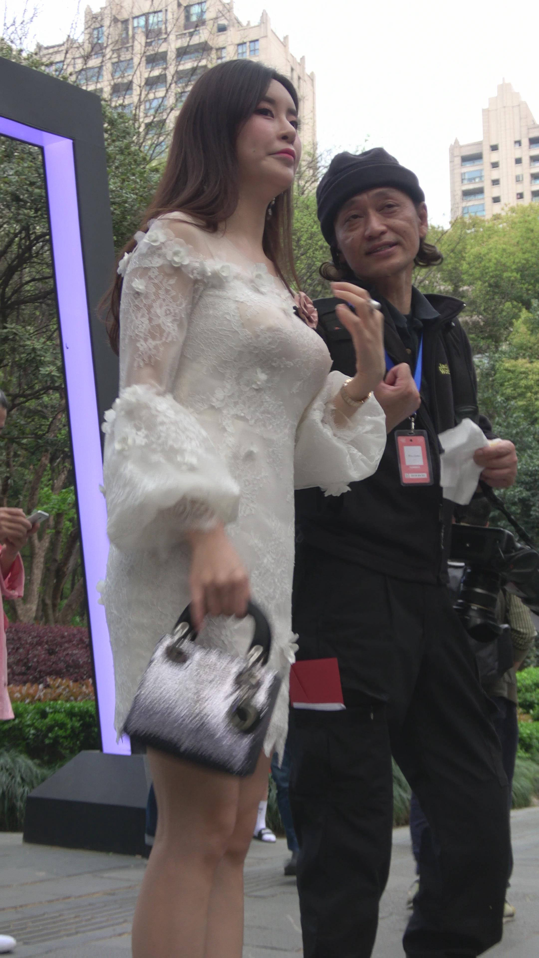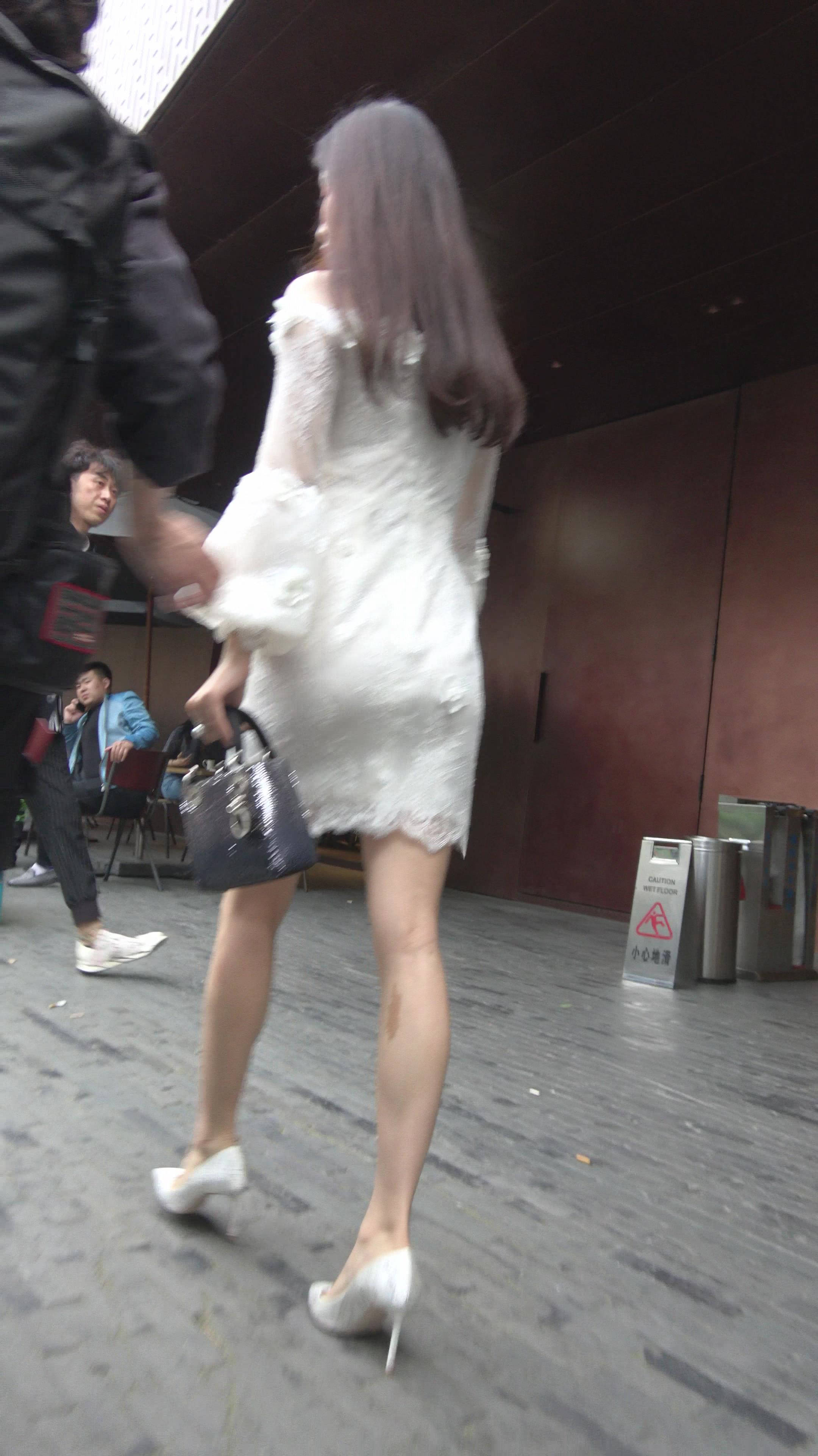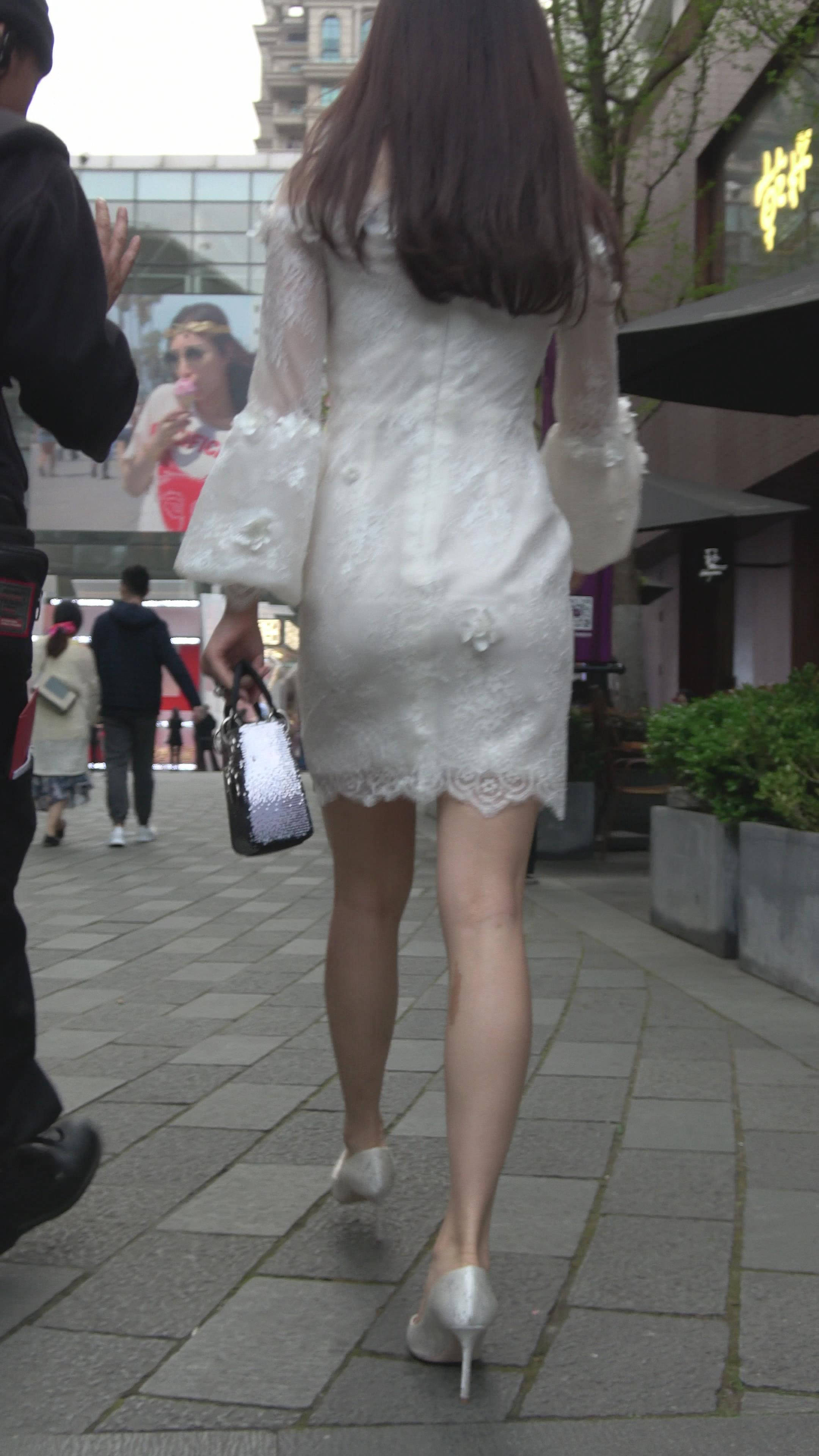 4K - 性感高跟镂空连衣裙街拍美女 编号7761