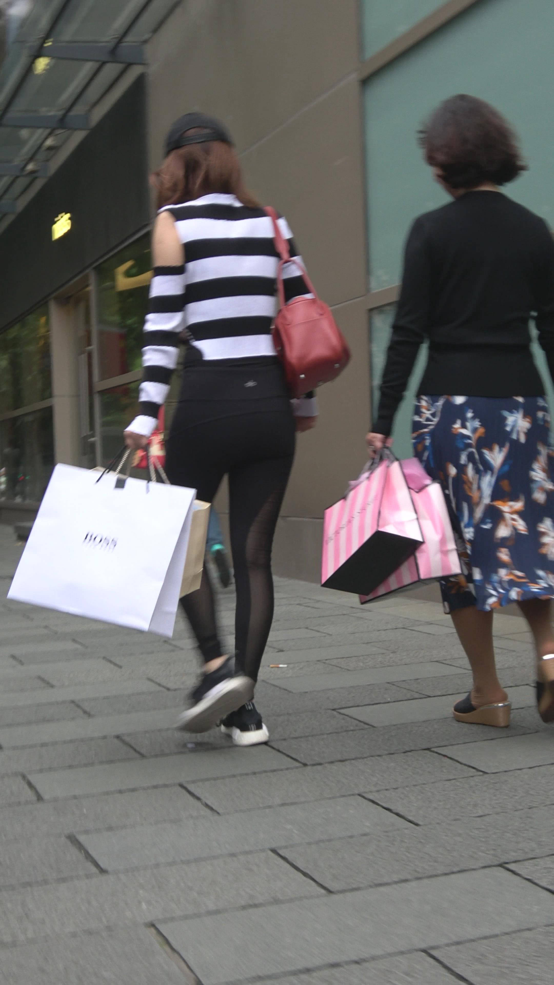 4K - 街拍鸭舌帽黑色紧身弹力裤美眉 编号7768