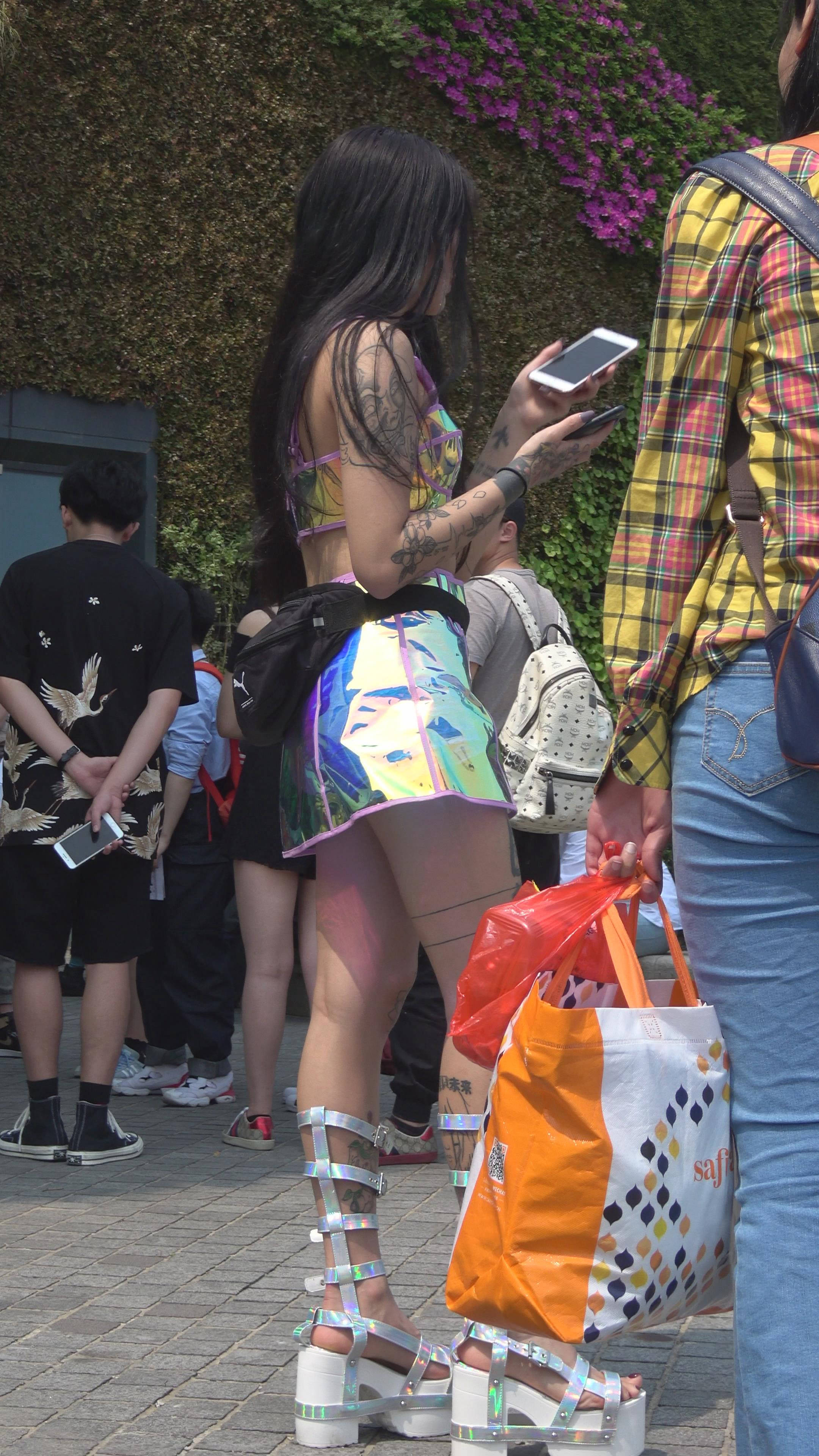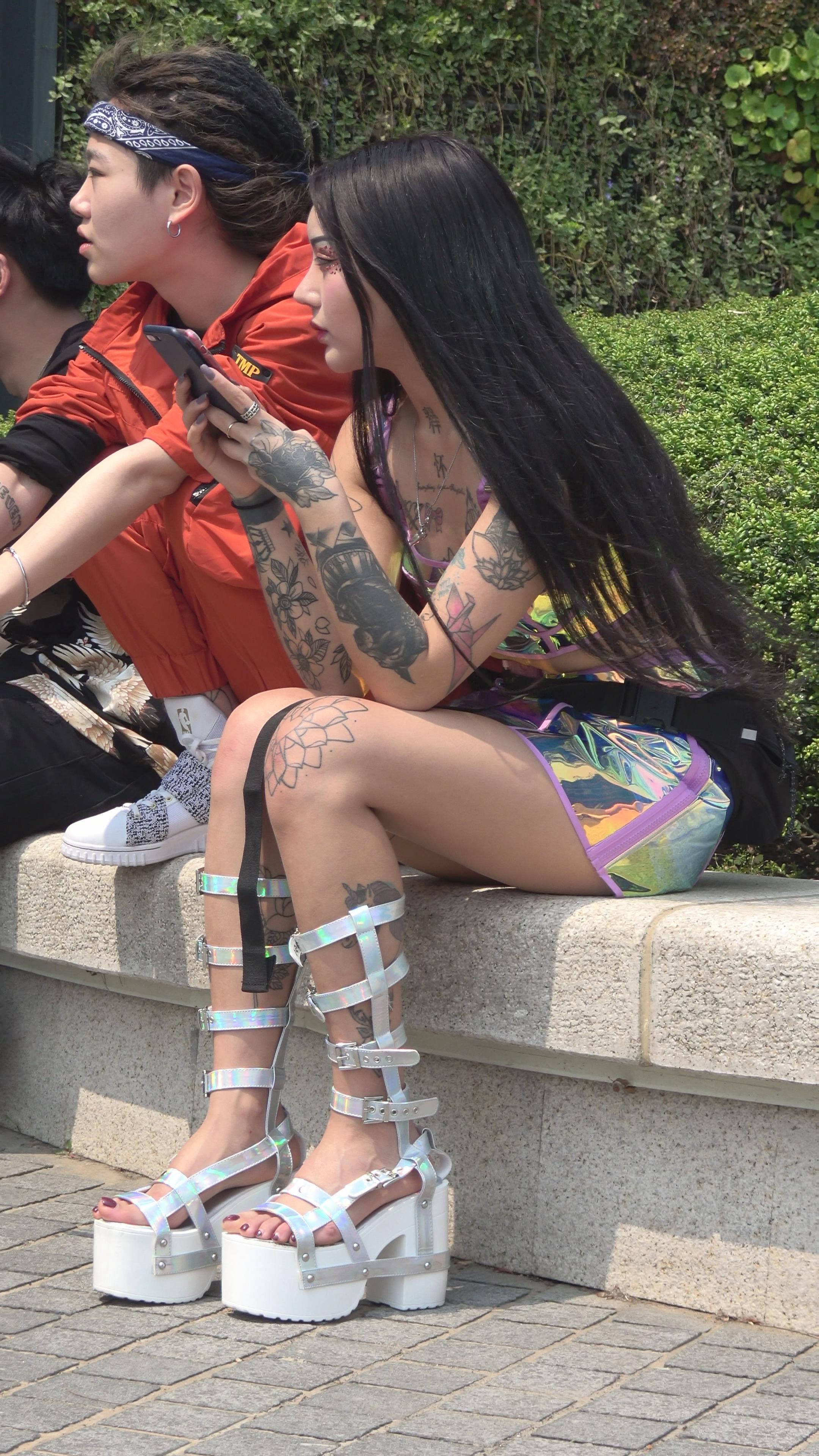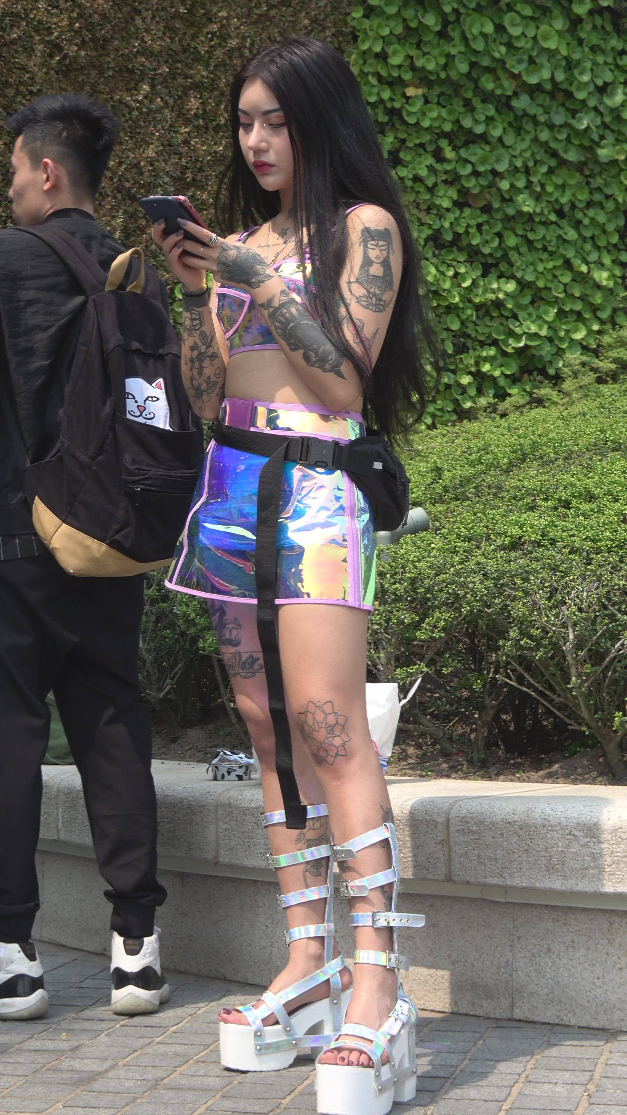4K 满身刺青的性感街拍美女 编号7773