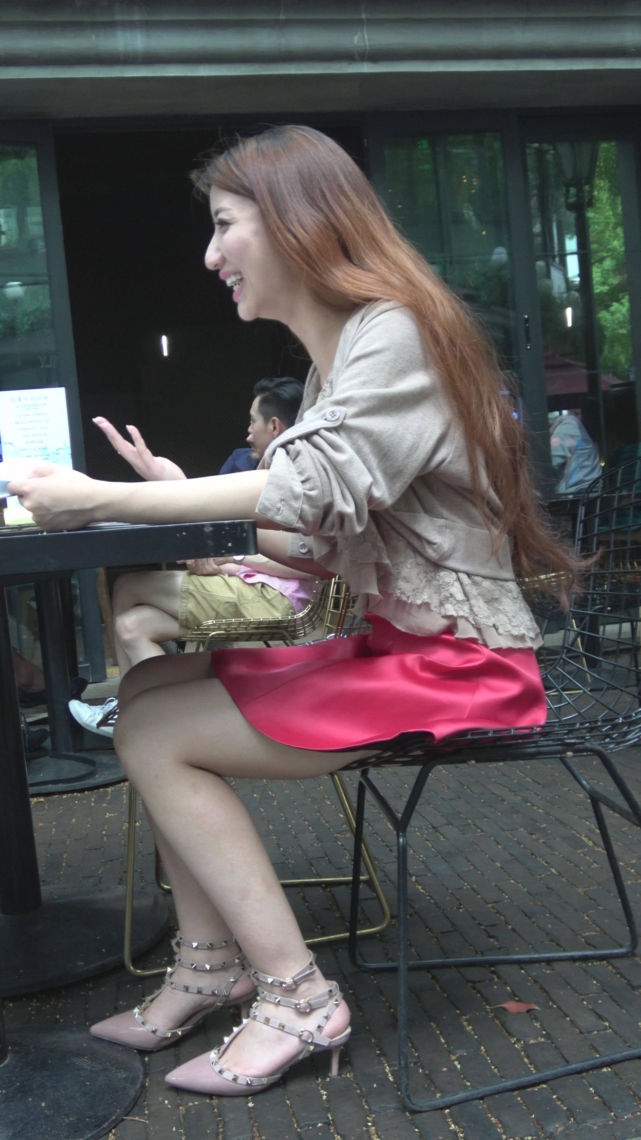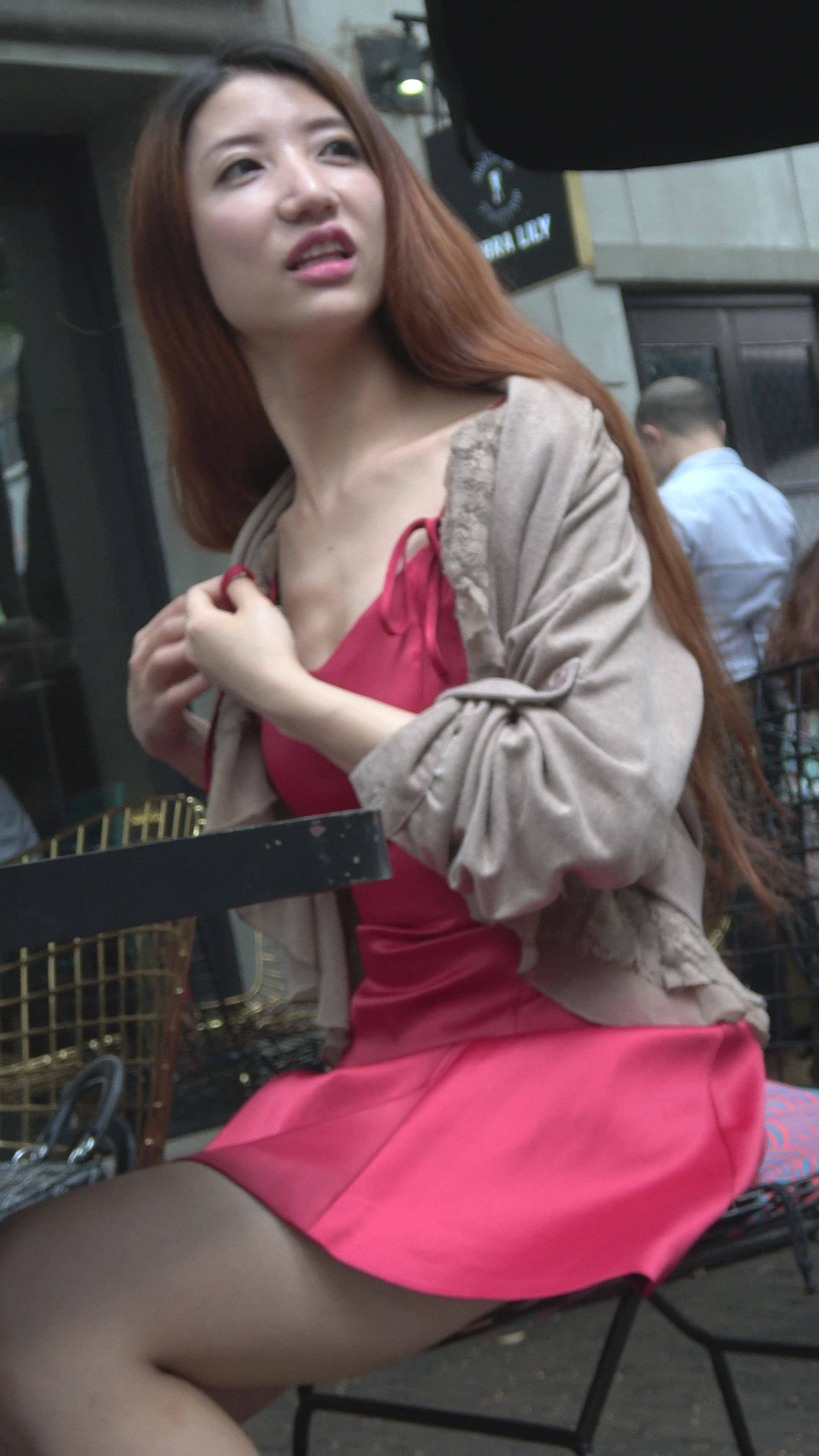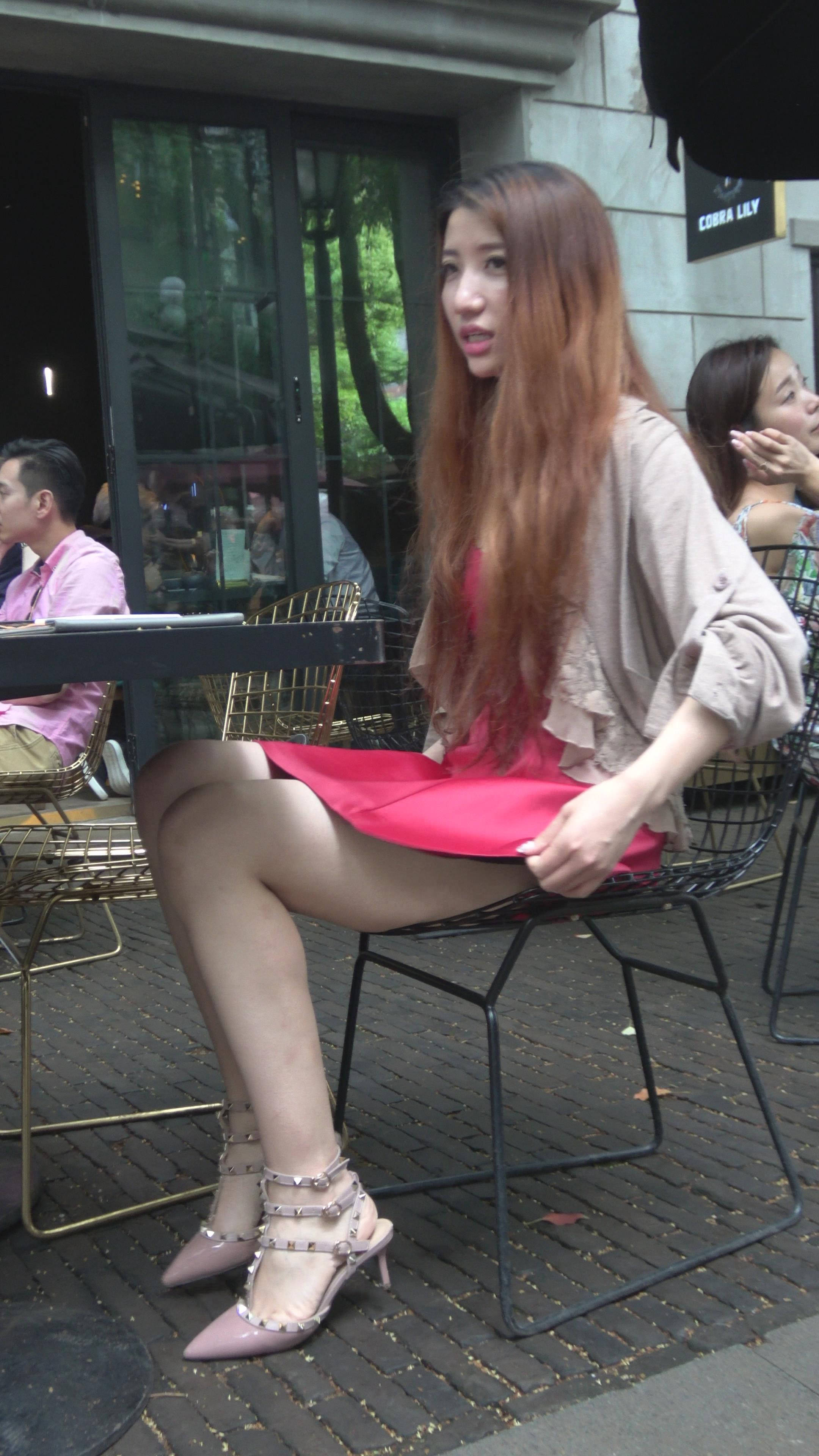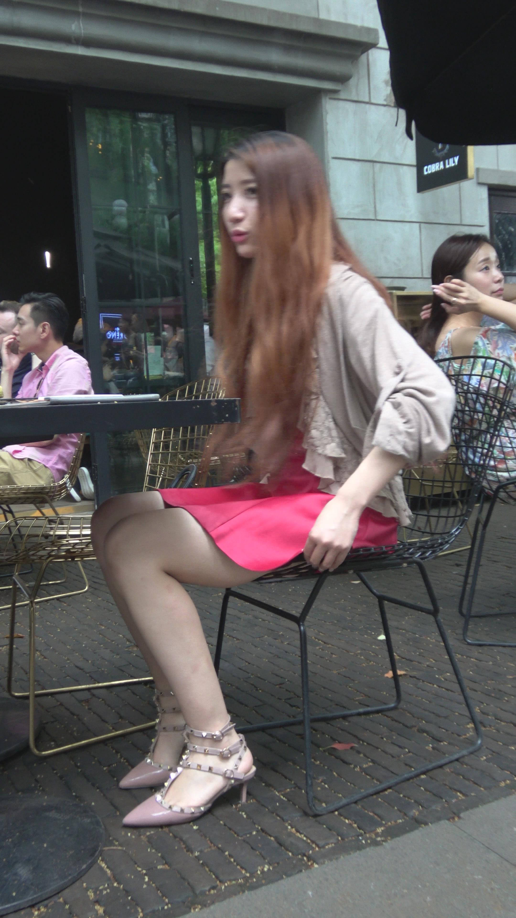 4K 红色吊带裙街拍美女下午茶 编号7778