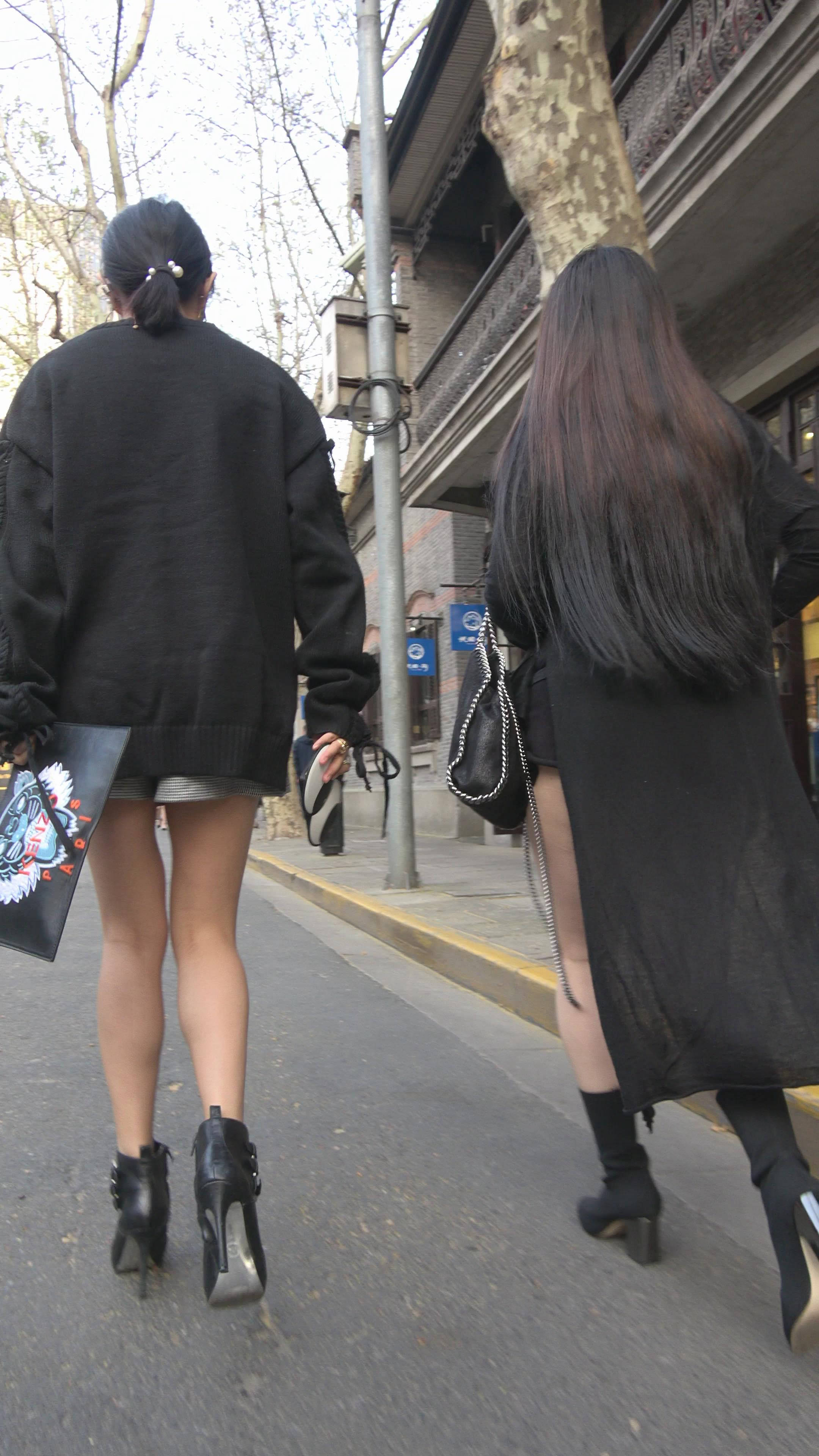 4K 黑衣街拍美腿女神手机壳很有个性 编号7785