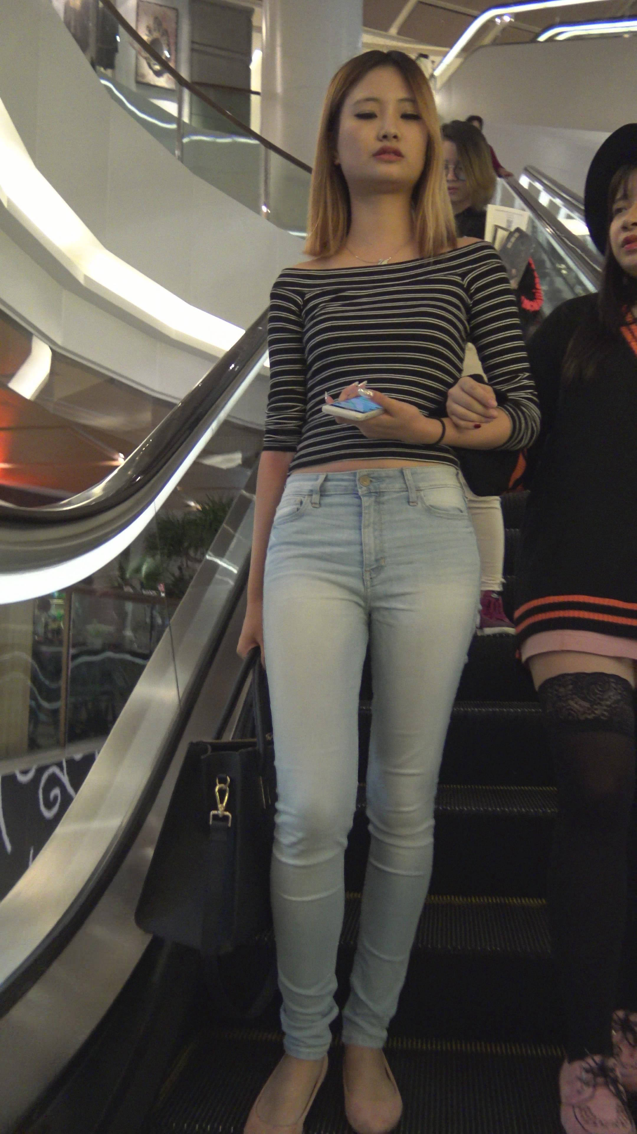 4K一字肩抹胸紧身牛仔裤美眉 编号7794