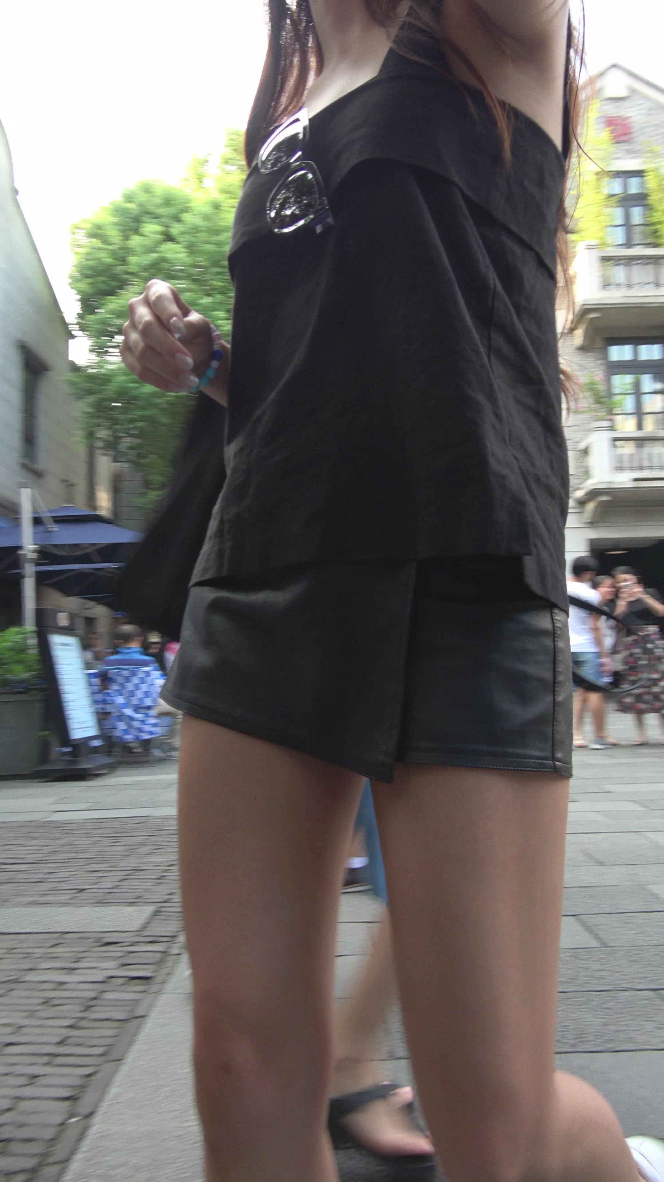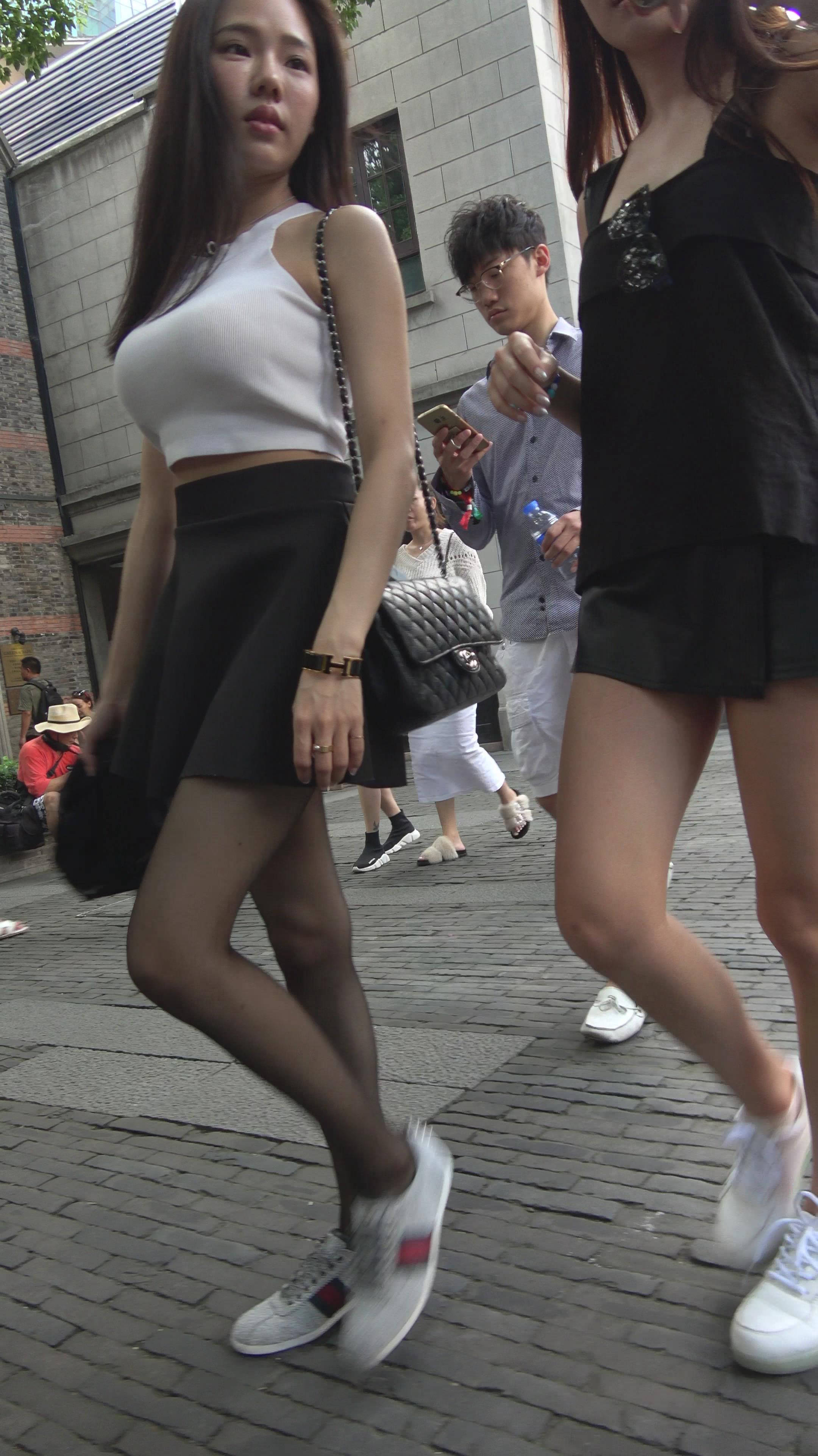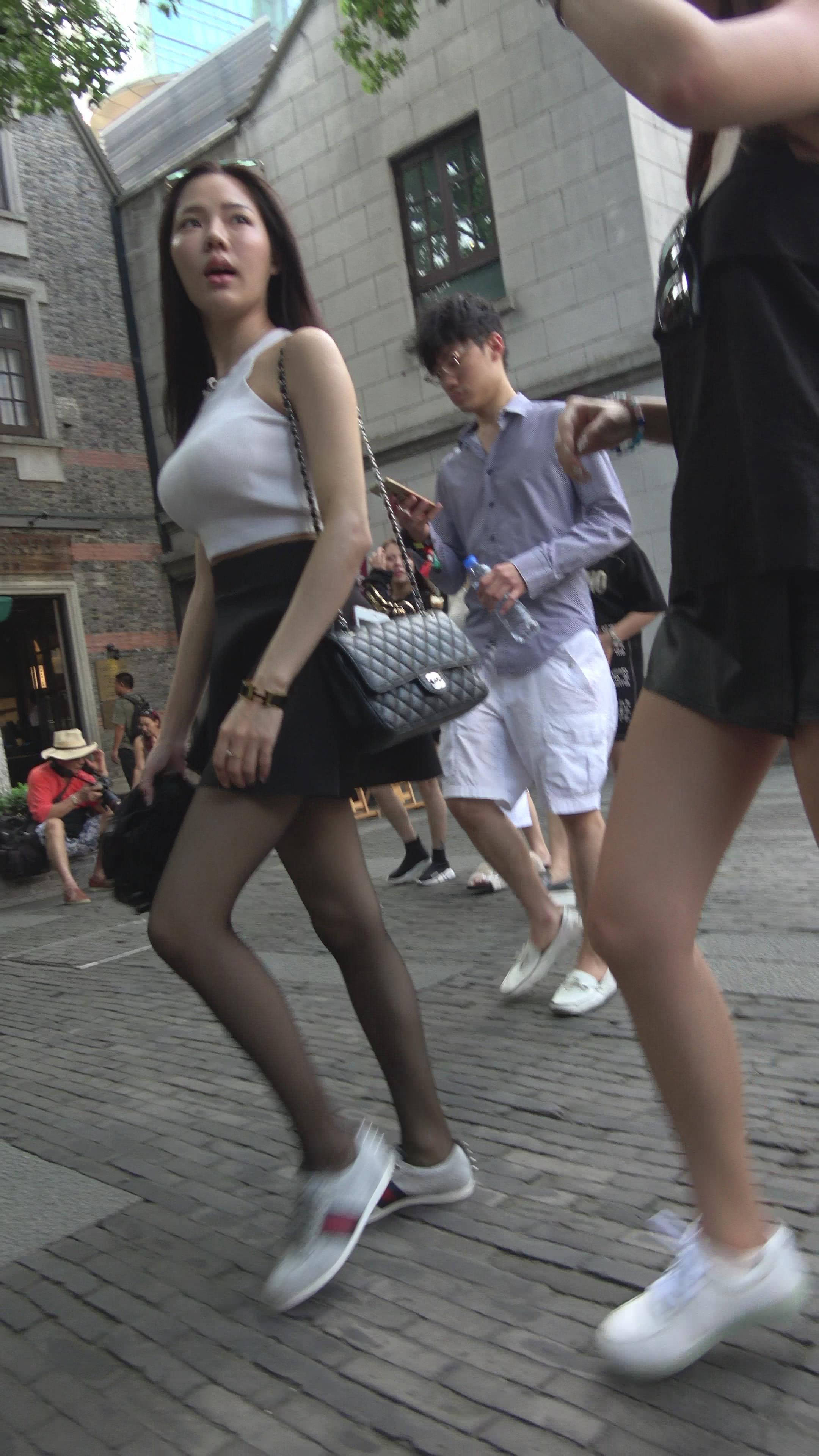 波涛汹涌街拍黑丝短裙性感美女 编号7812