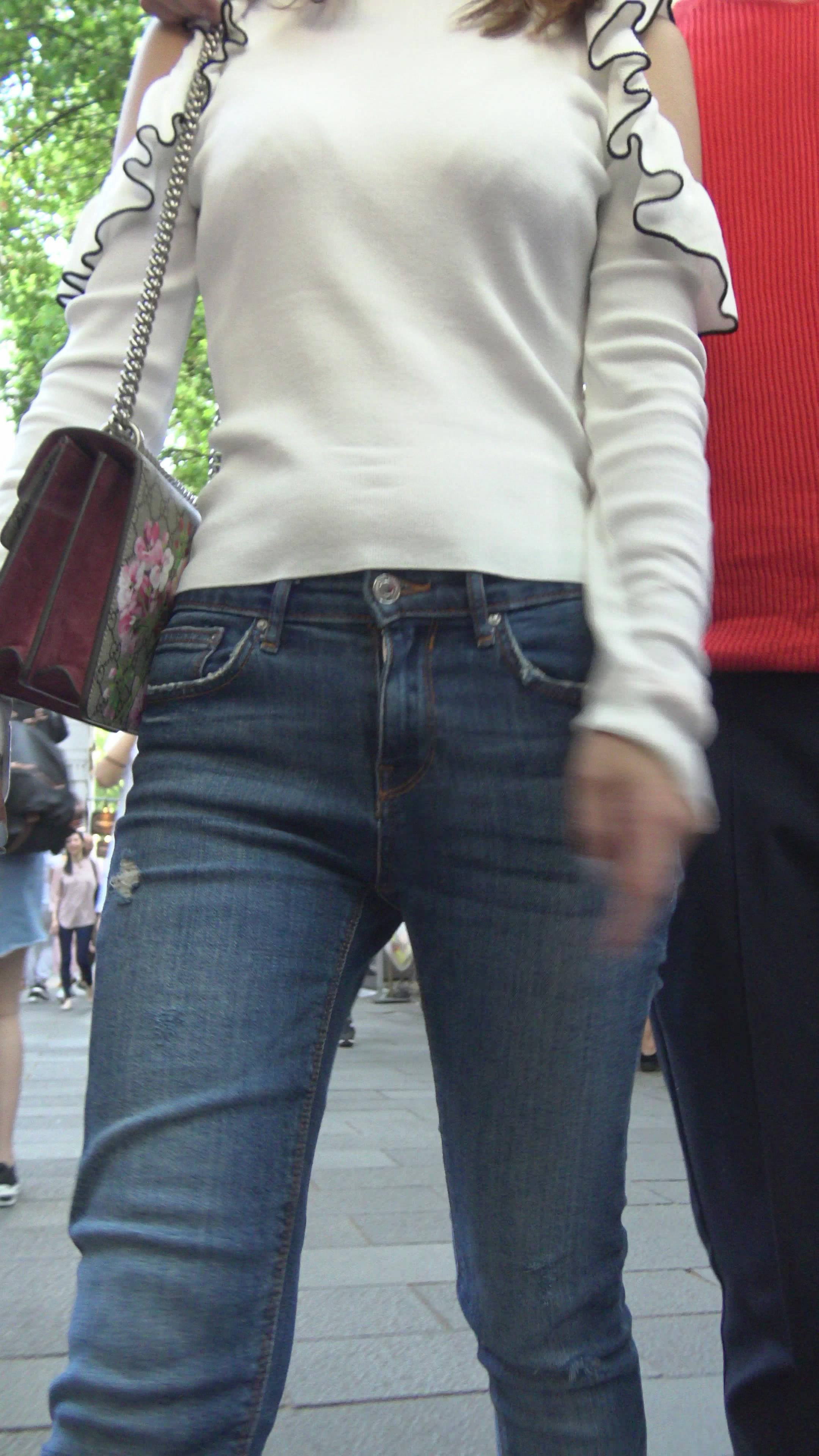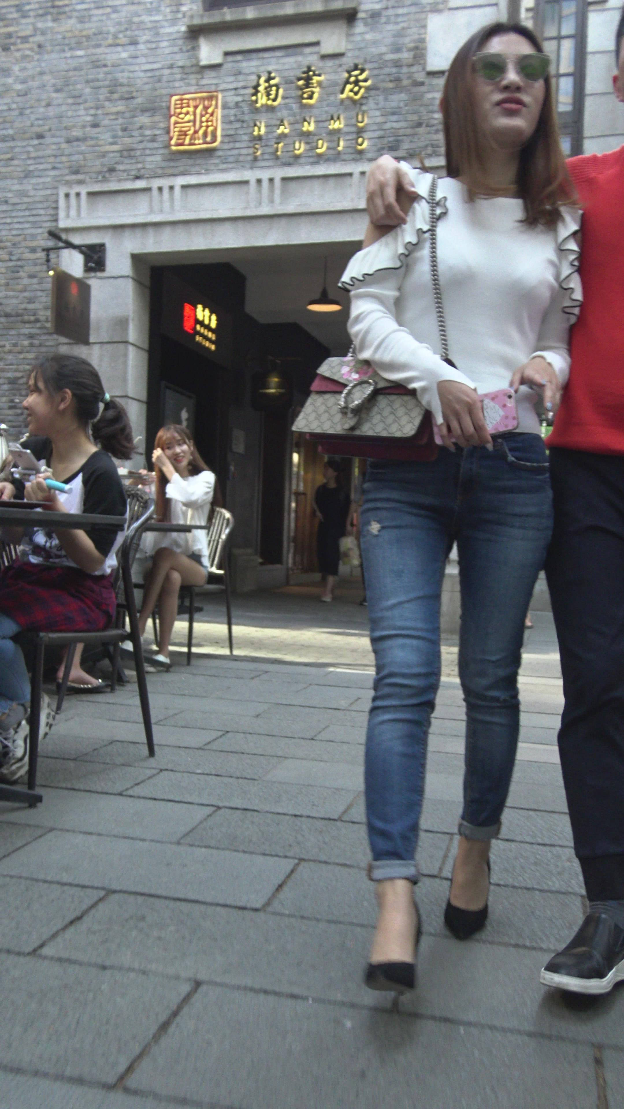 4K - 极品性感高跟紧身蓝牛墨镜美女 编号7819