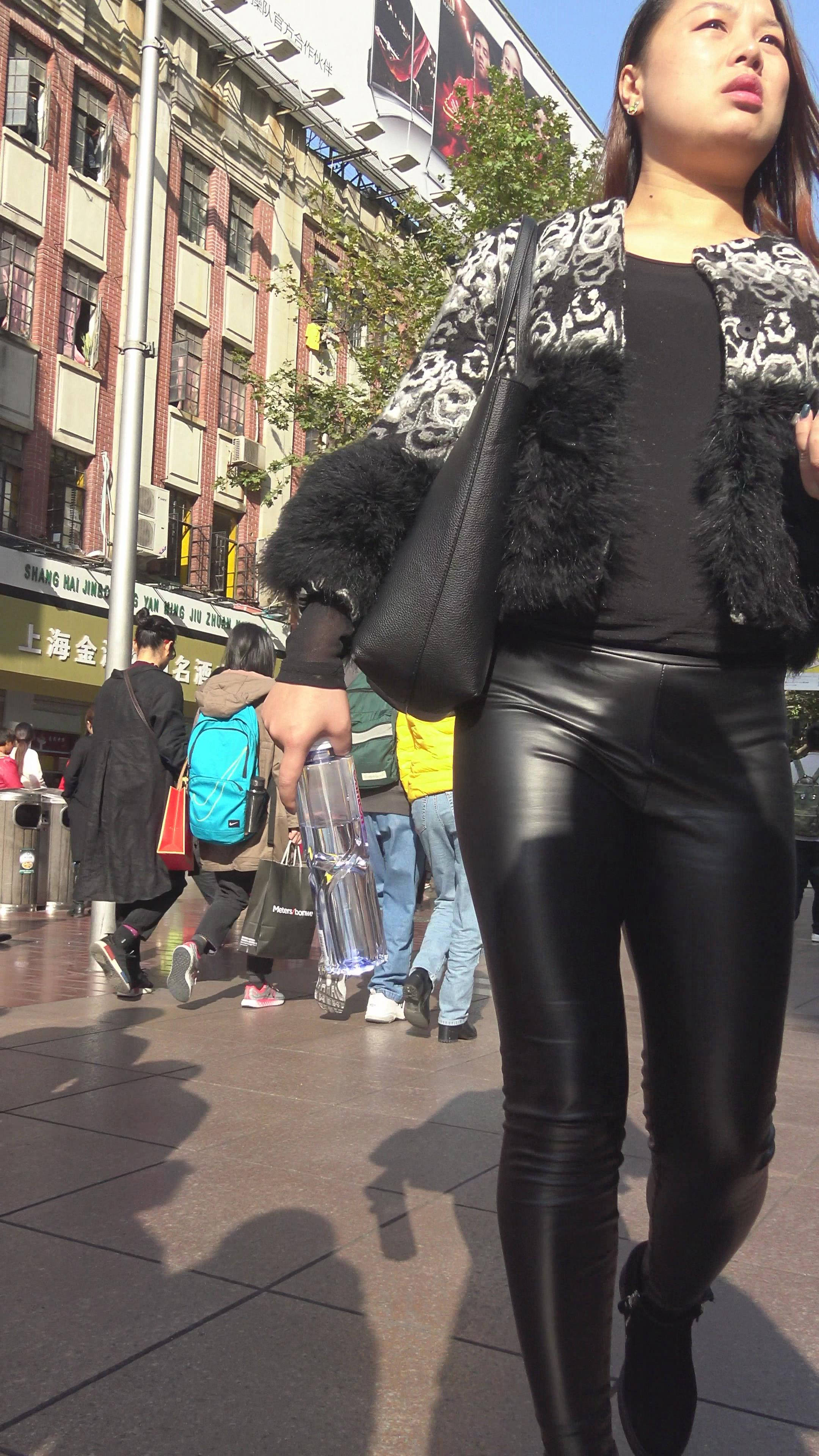 4K - 逛街买衣服的街拍紧身皮裤少妇 2 编号7830