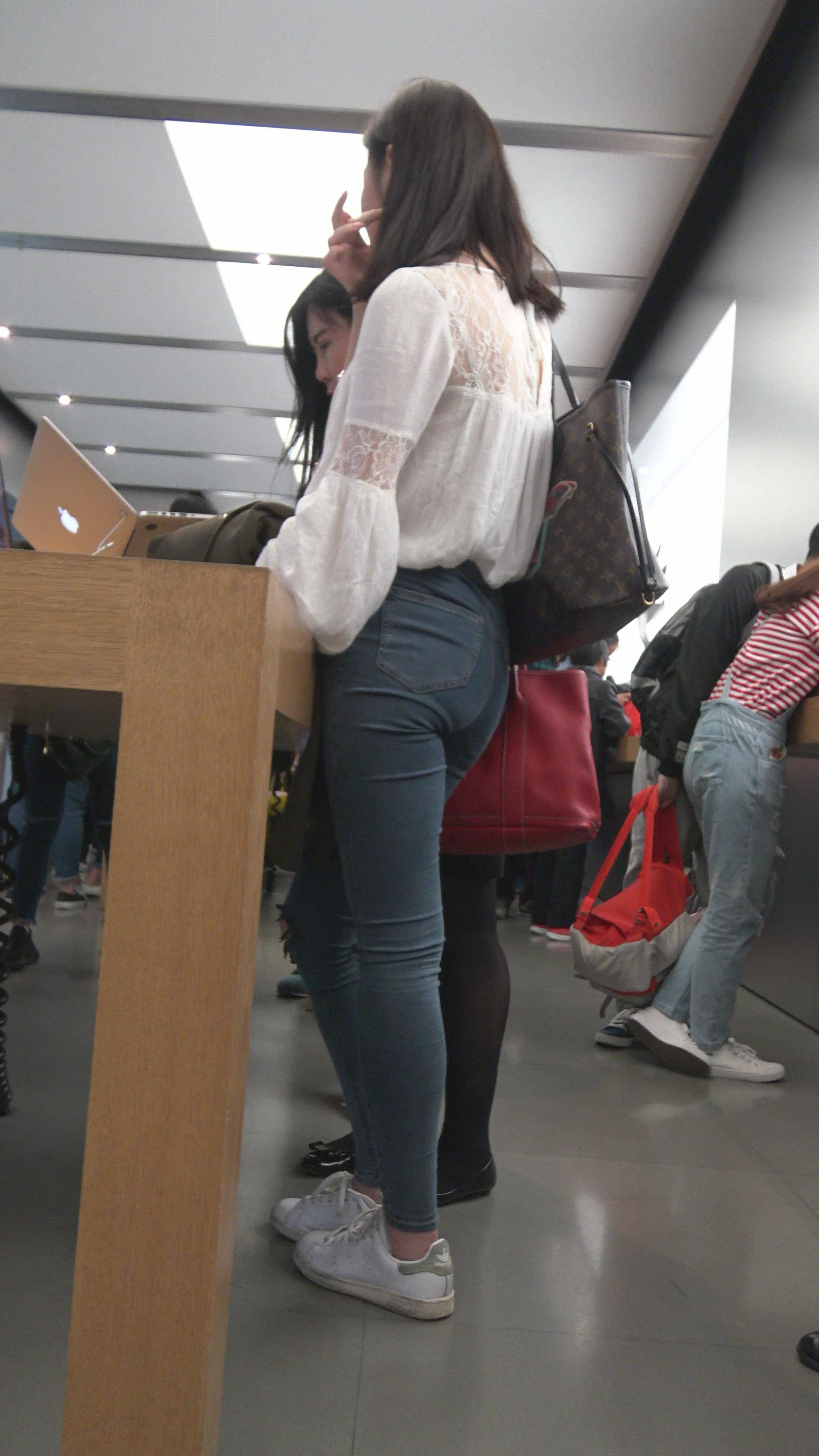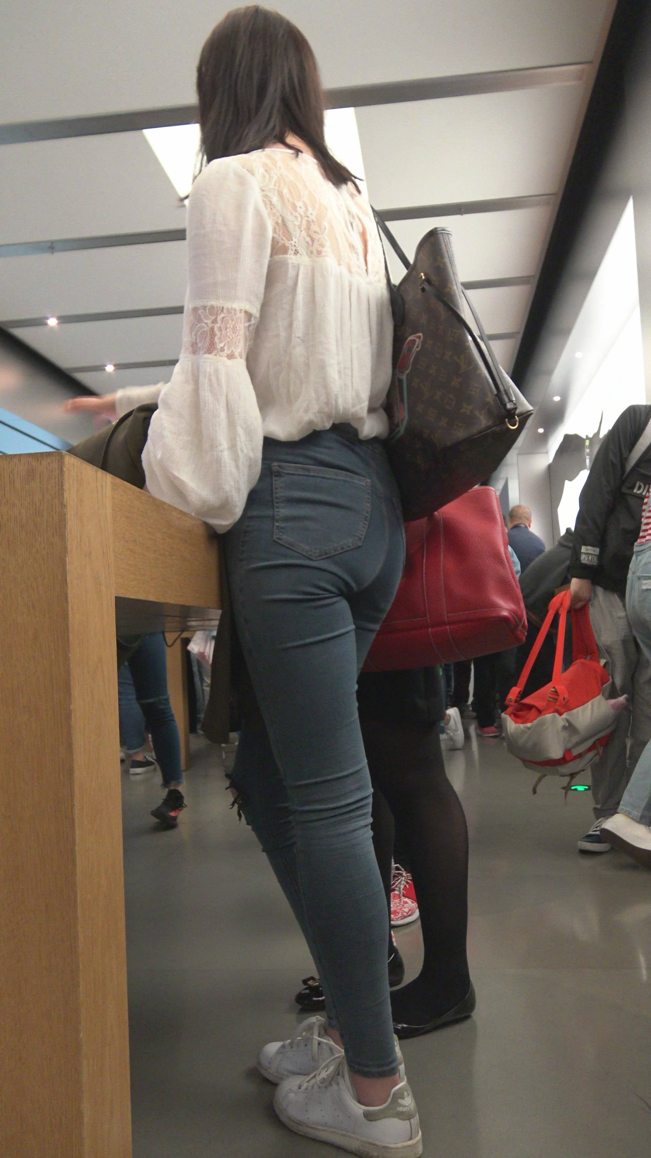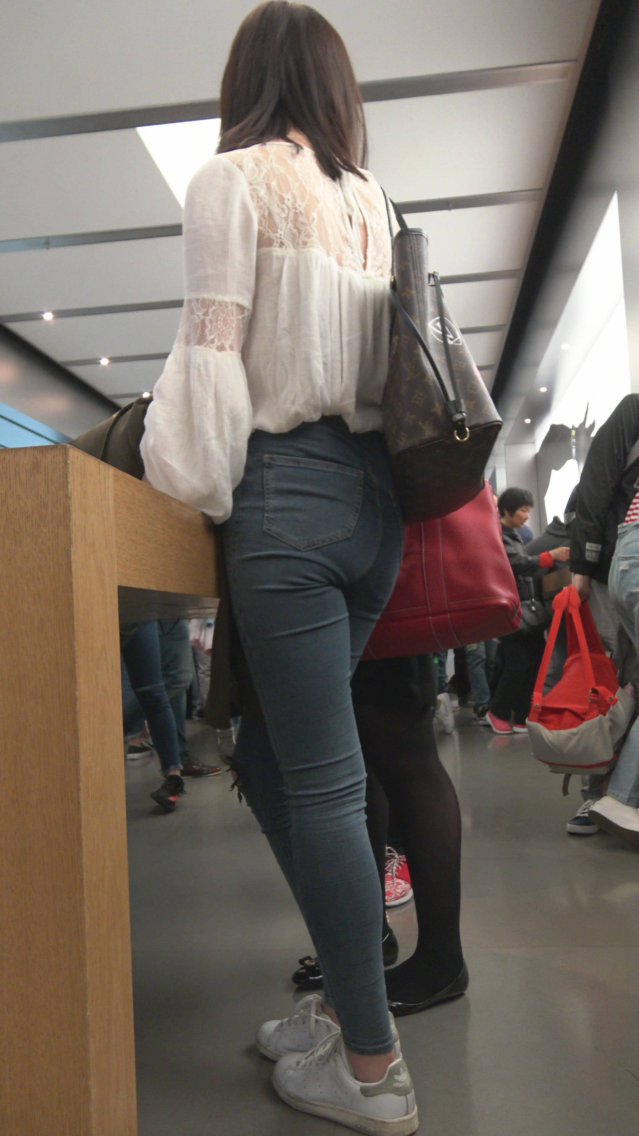 4K - 街拍紧身牛仔白衬衫御姐美女 编号7831