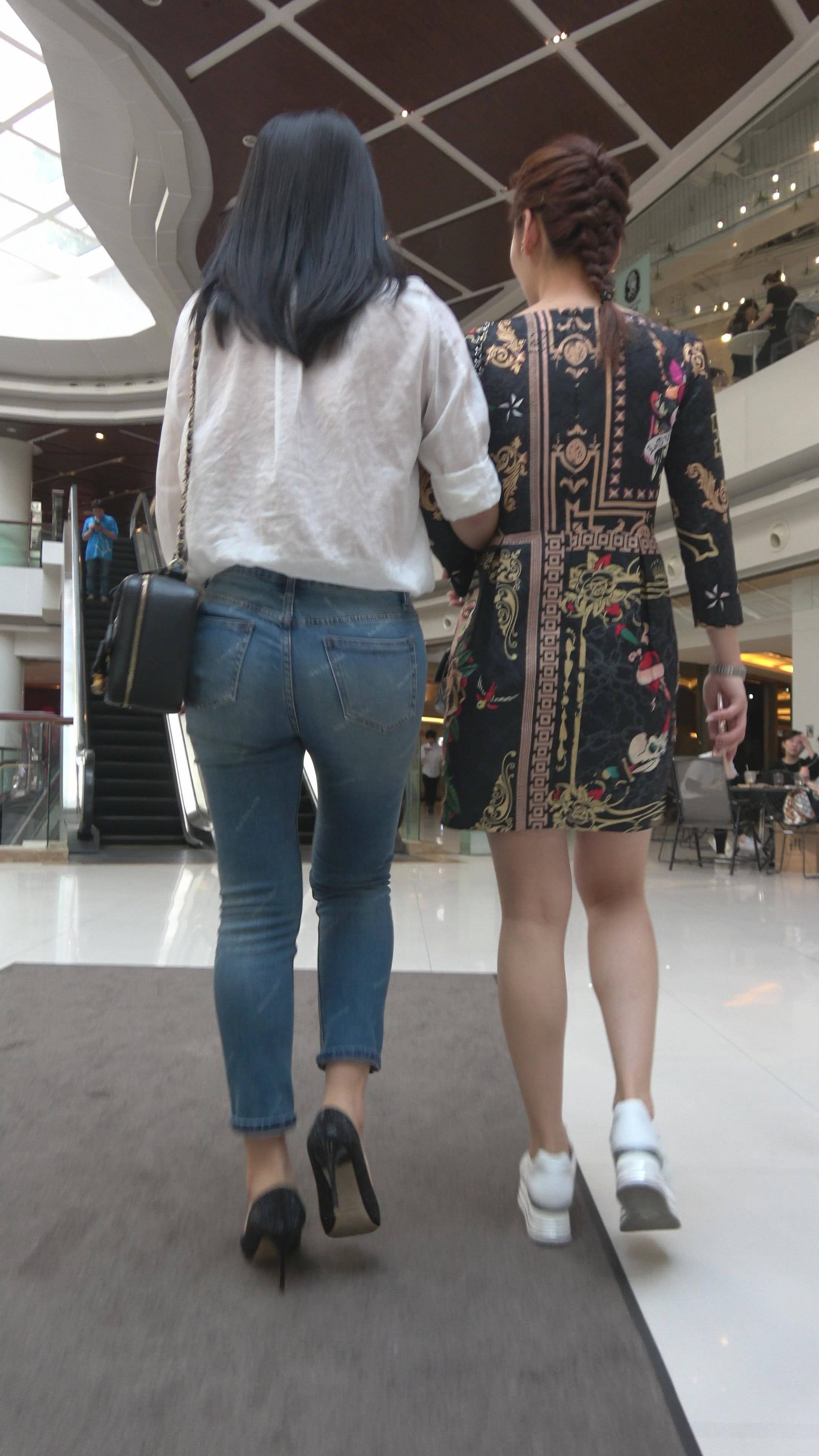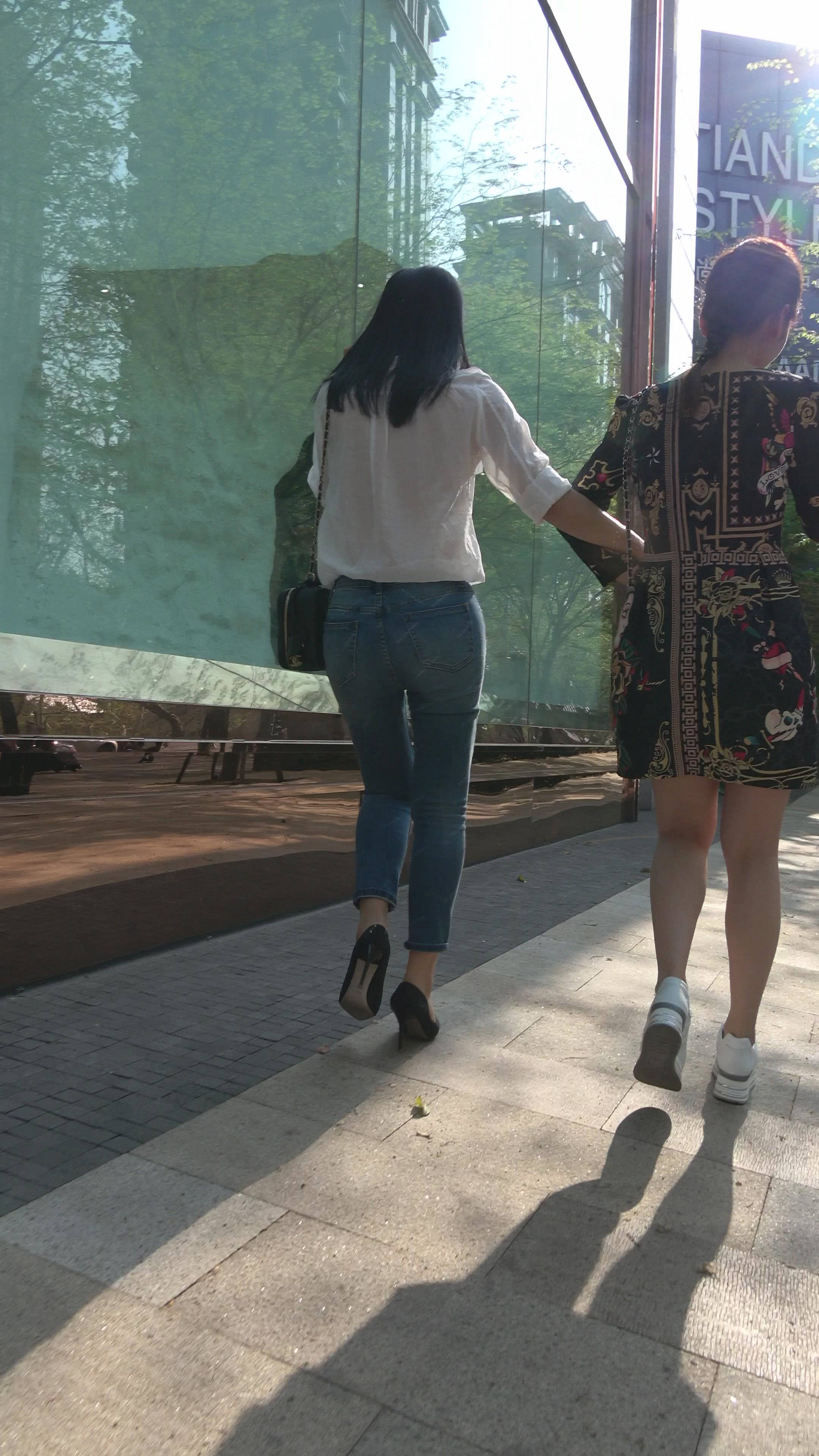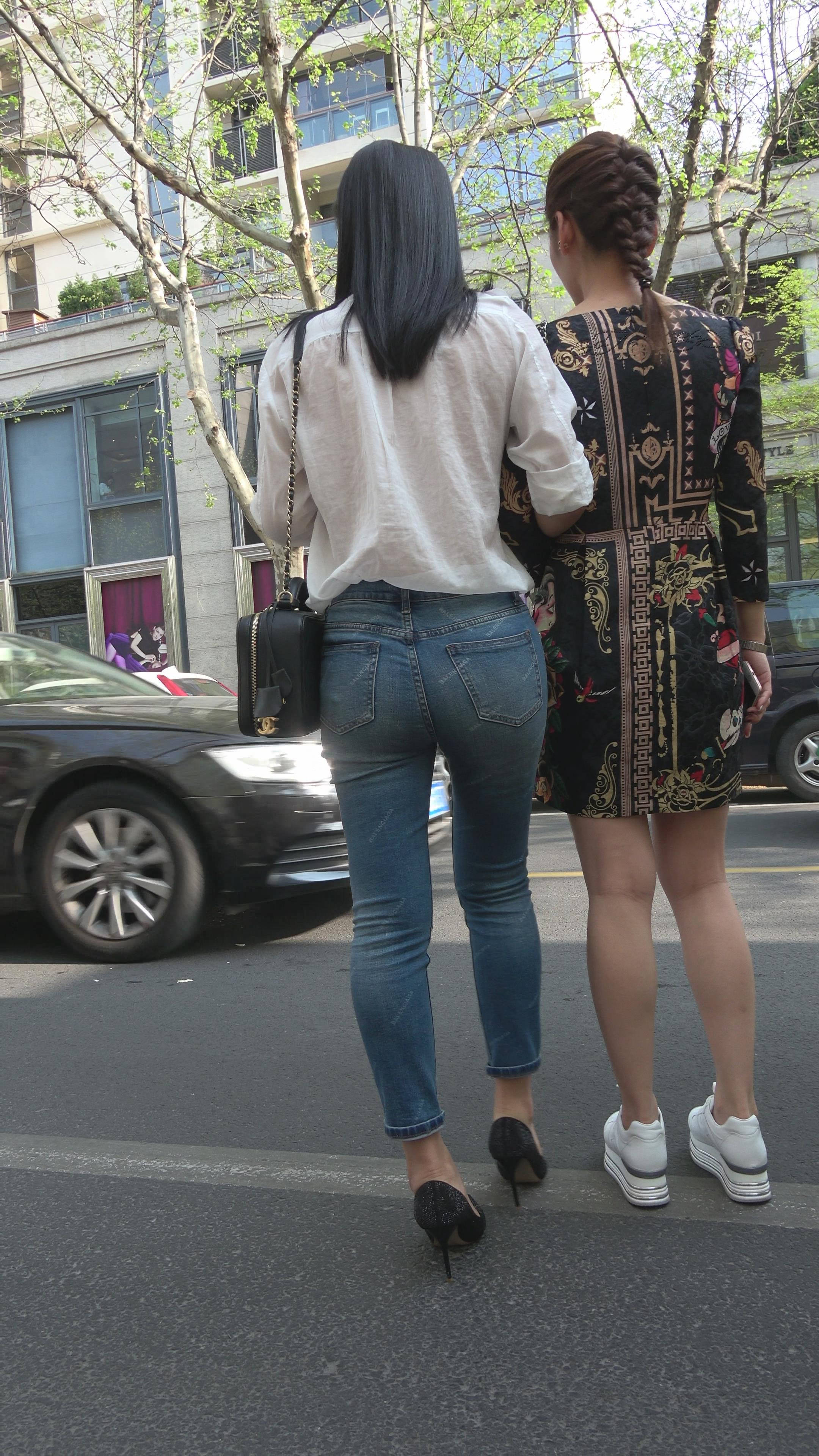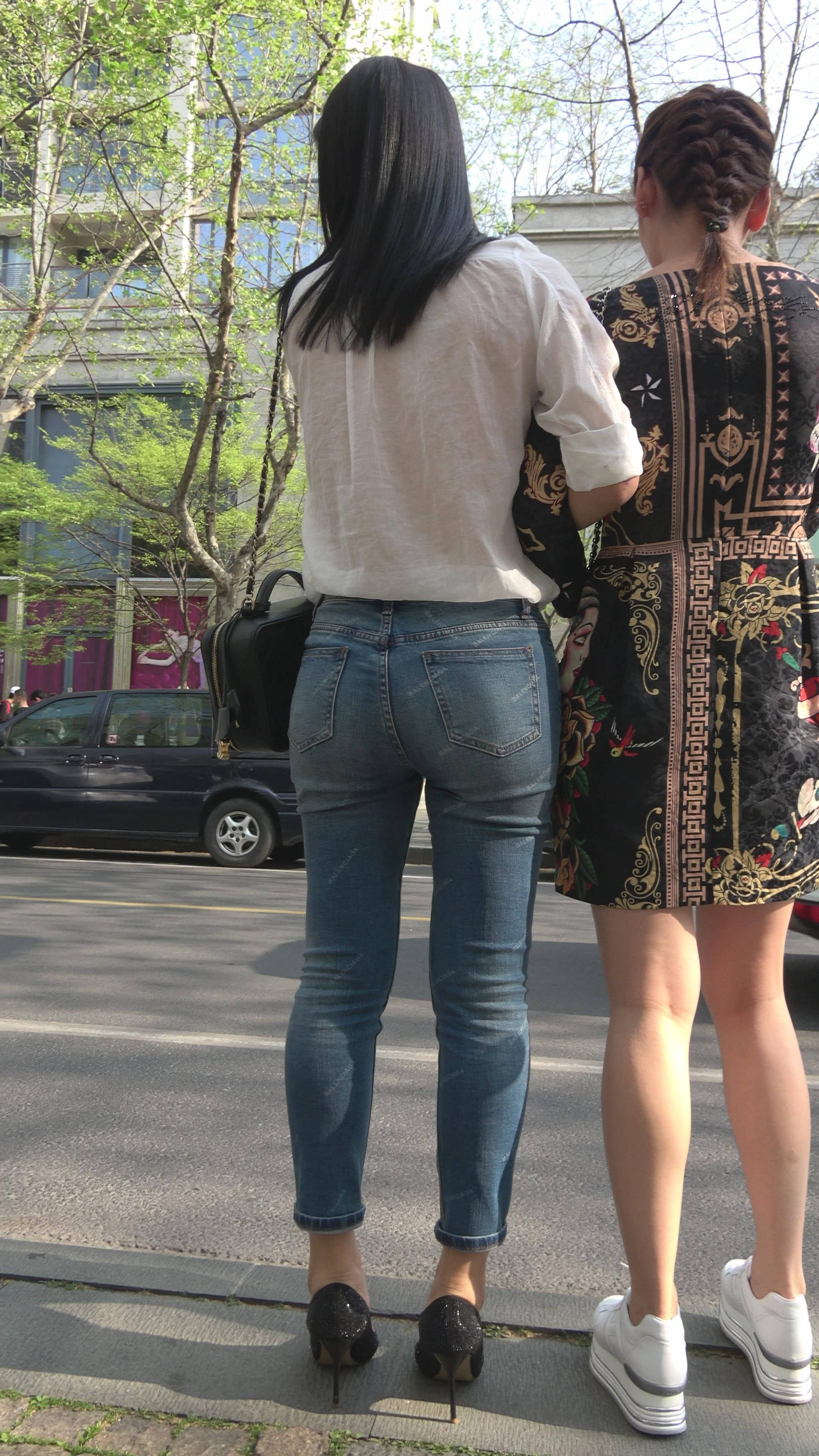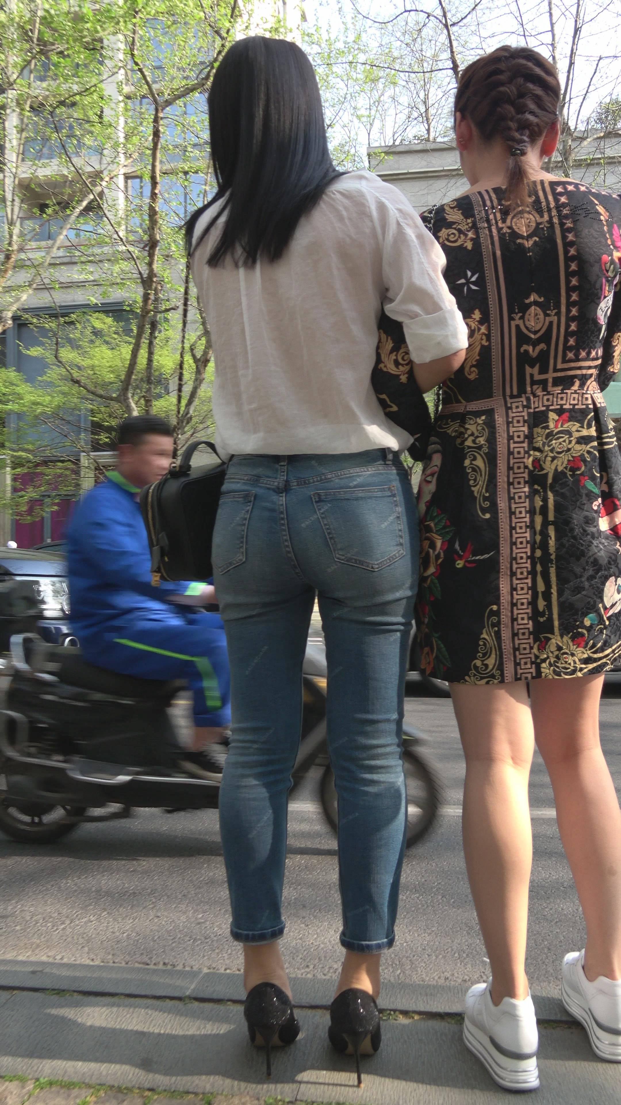 4K - 街拍紧身蓝牛白衬衫性感美女第二季 编号7843