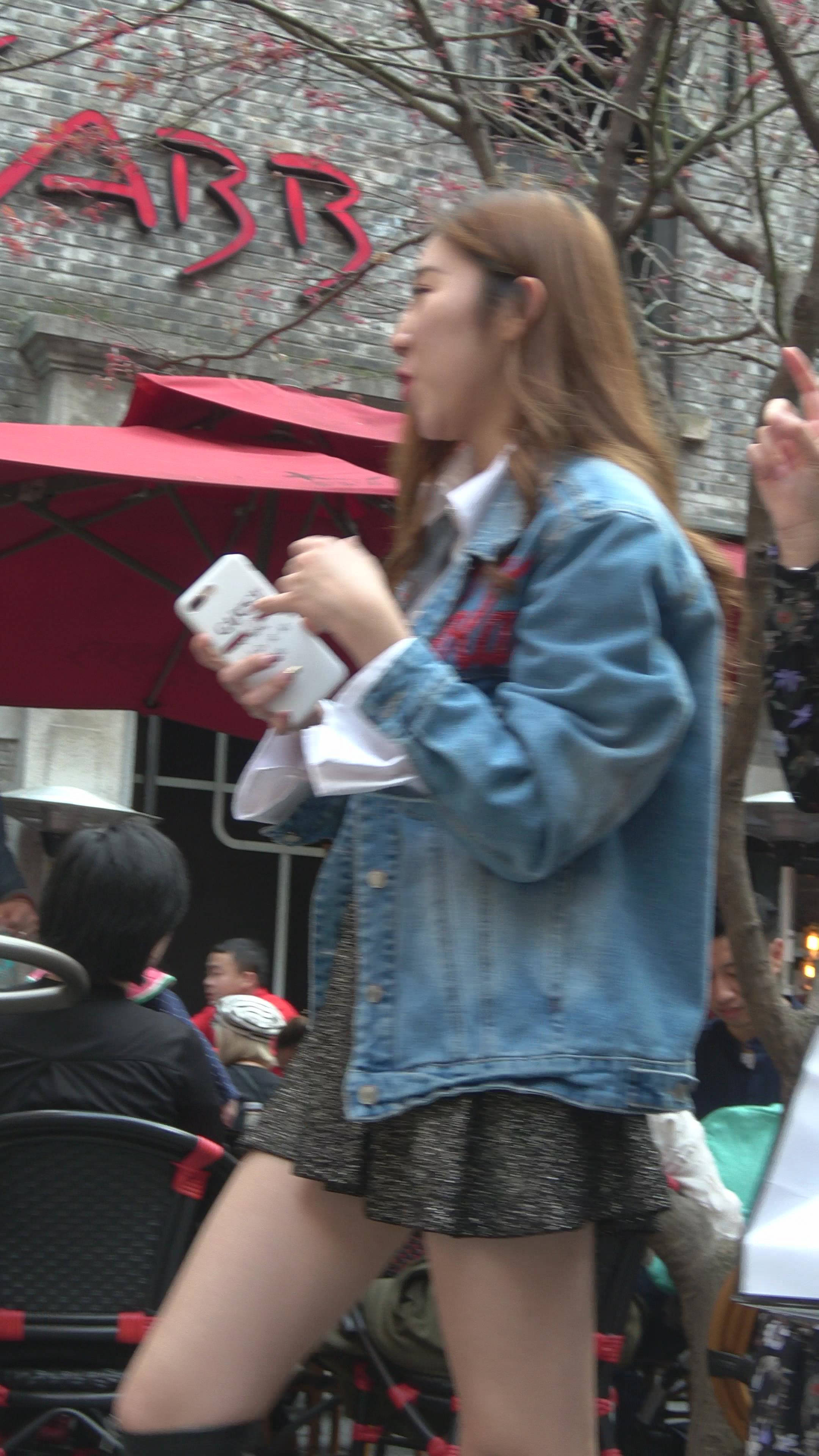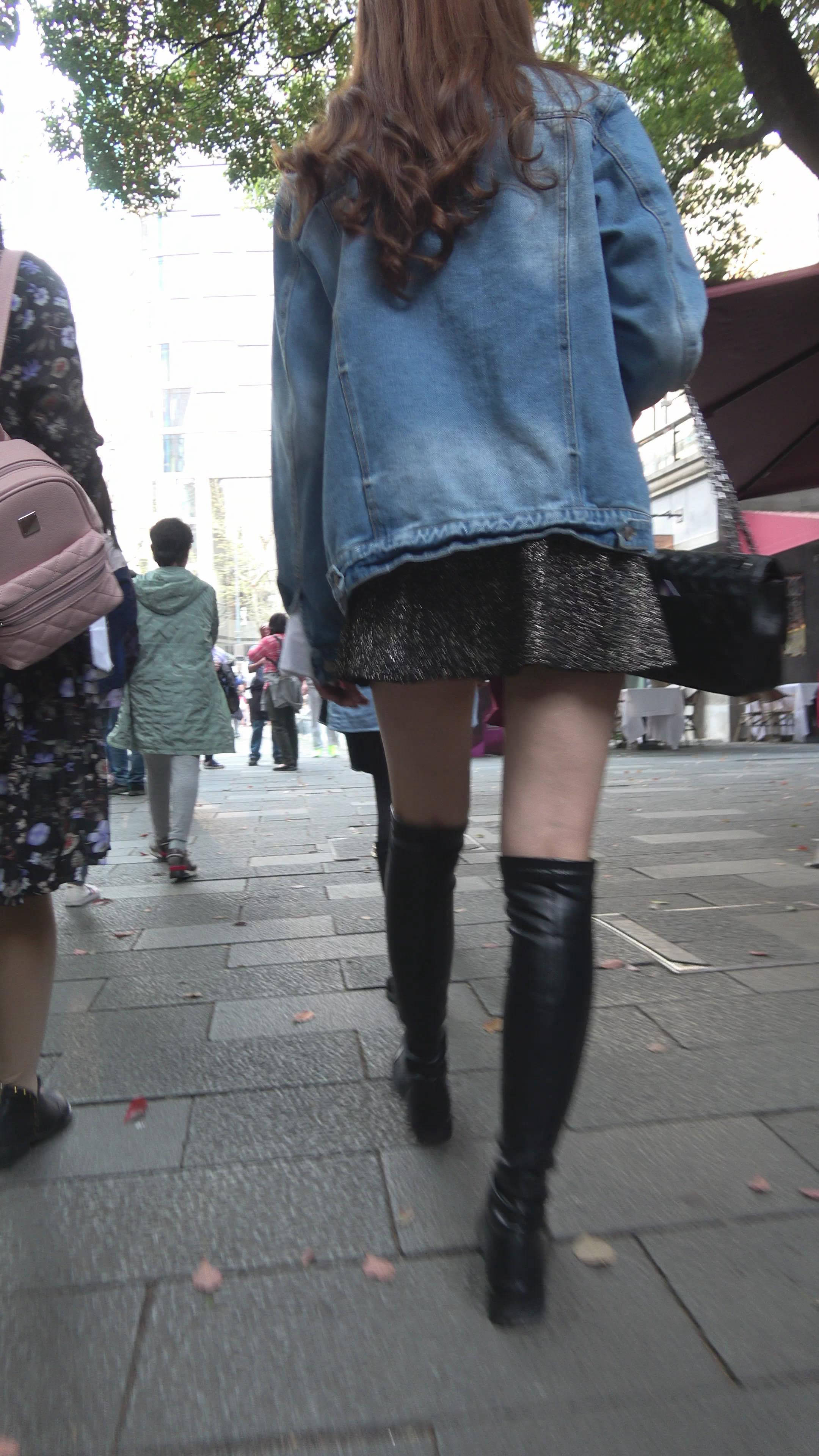 4K - 街拍美腿长筒靴牛仔外套气质美女 编号7857
