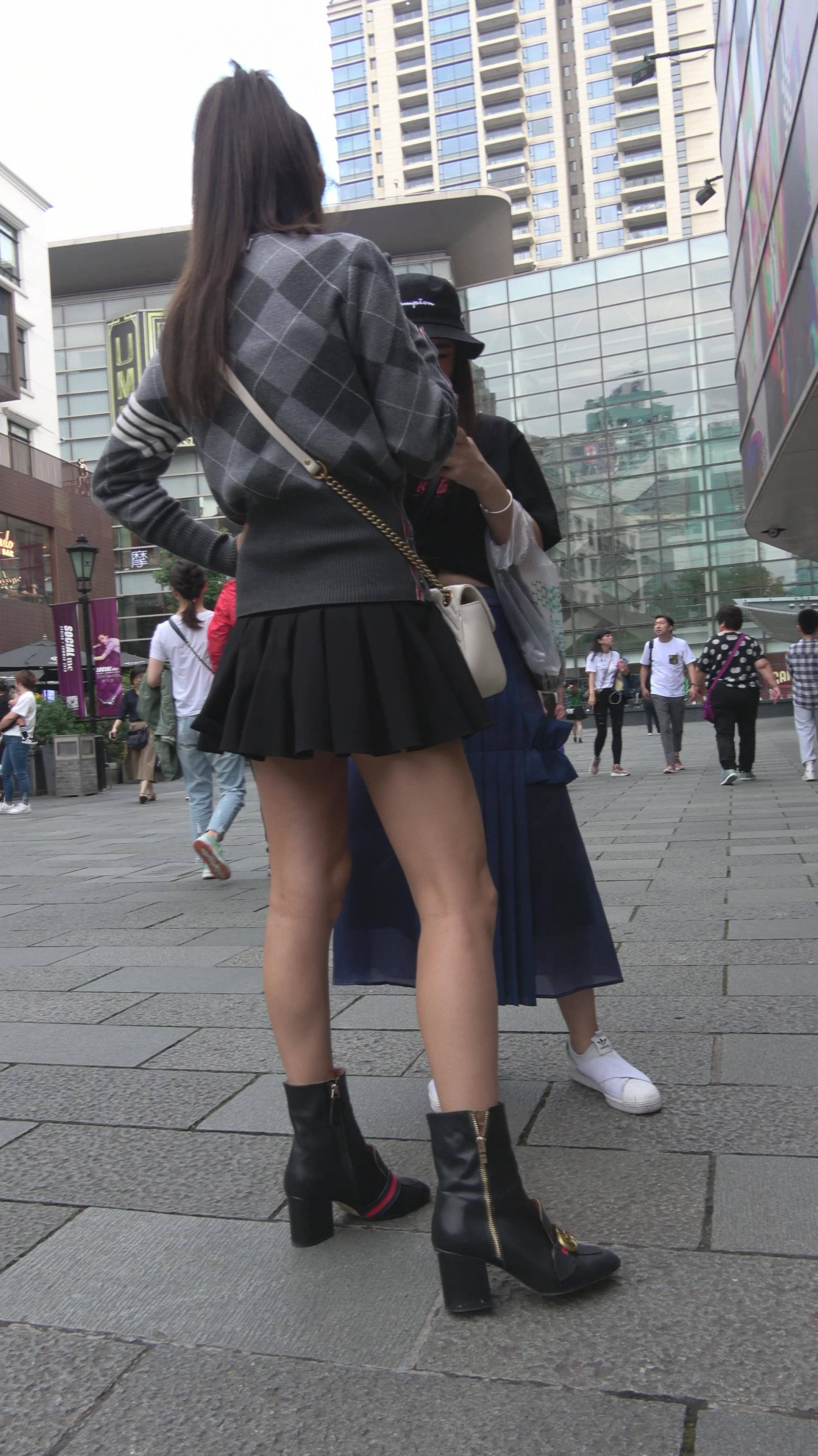 4K 性感小短裙街拍美腿马尾辫美女 编号7865