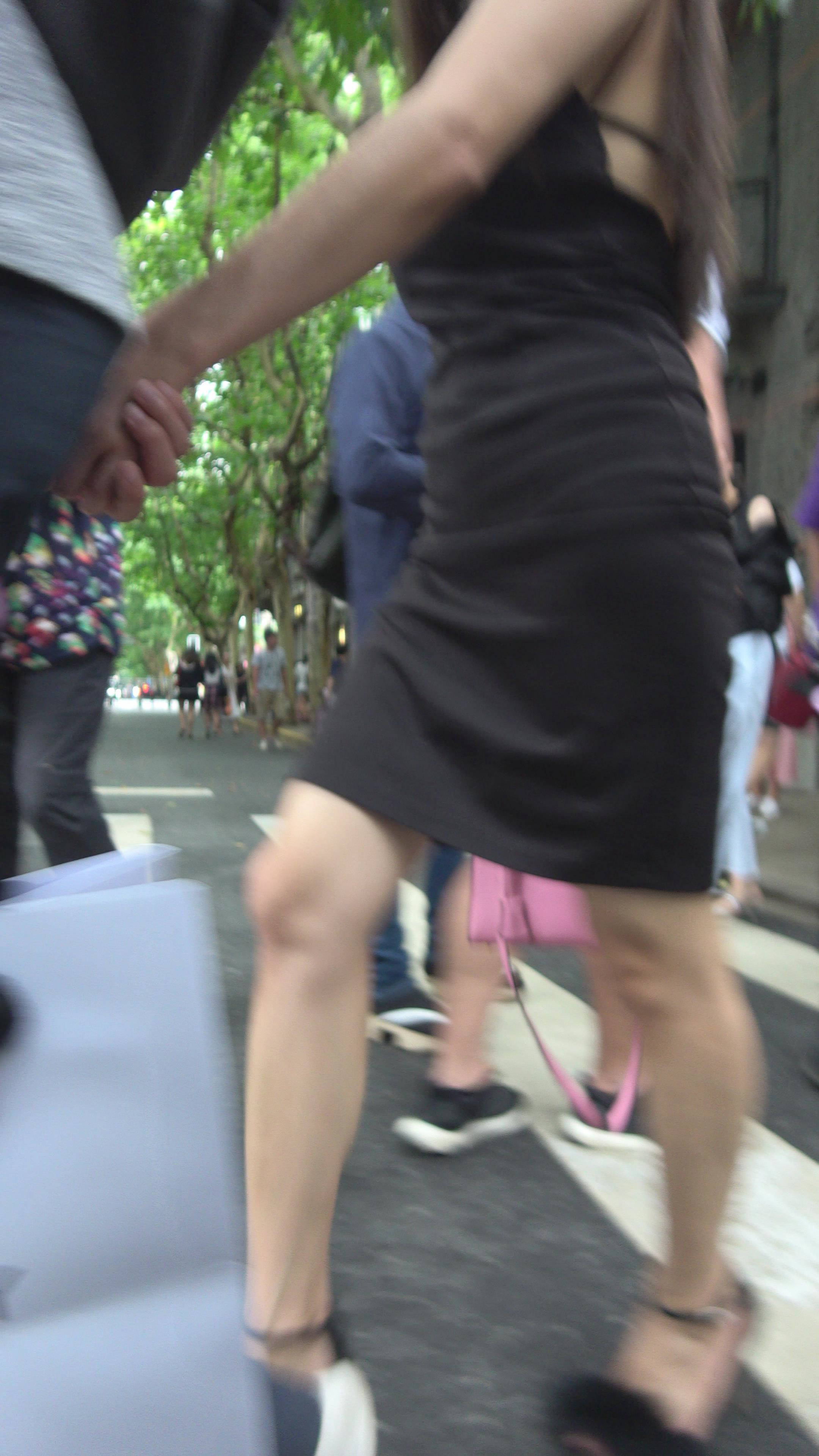 4K 黑色吊带裙街拍高跟美女姐姐 编号7877
