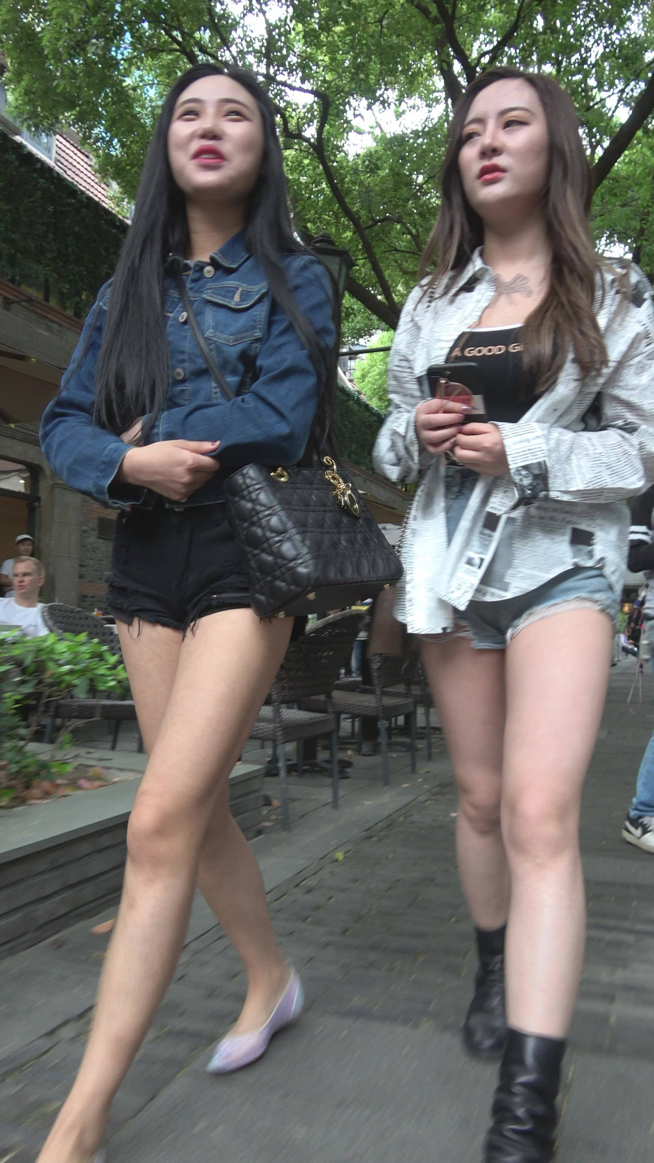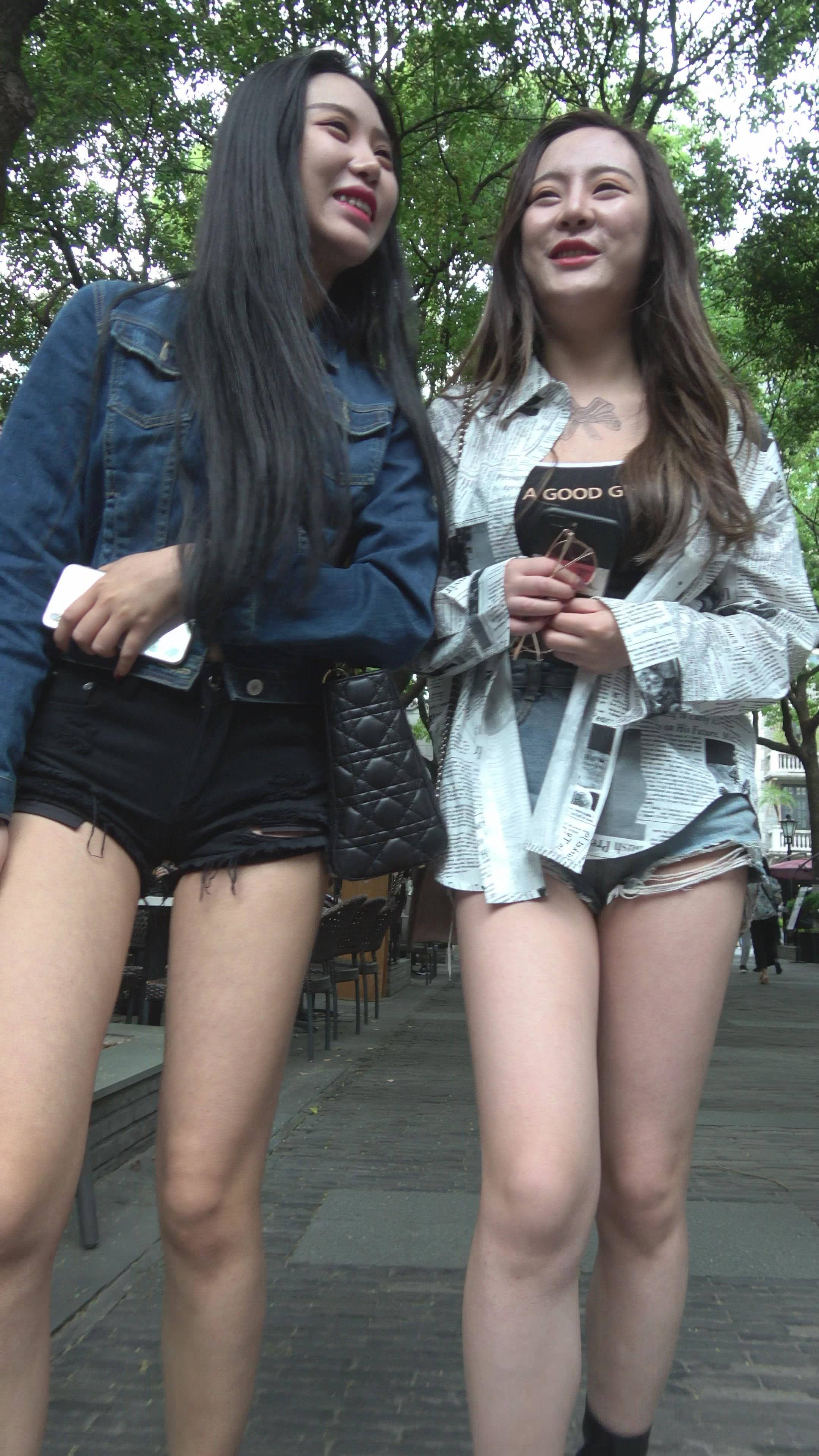 4K 街拍美腿高腰热裤美女姐妹花 编号7885