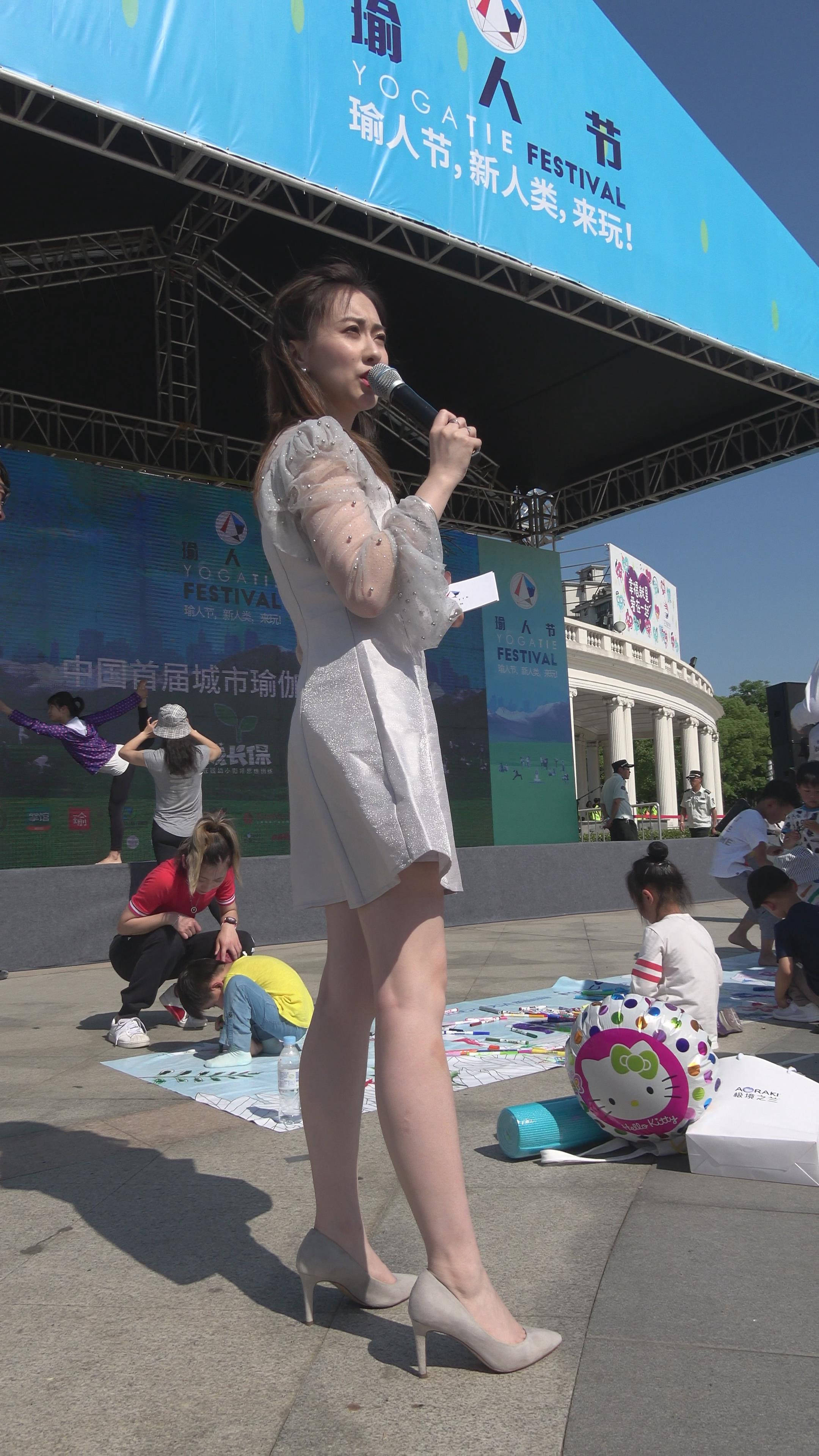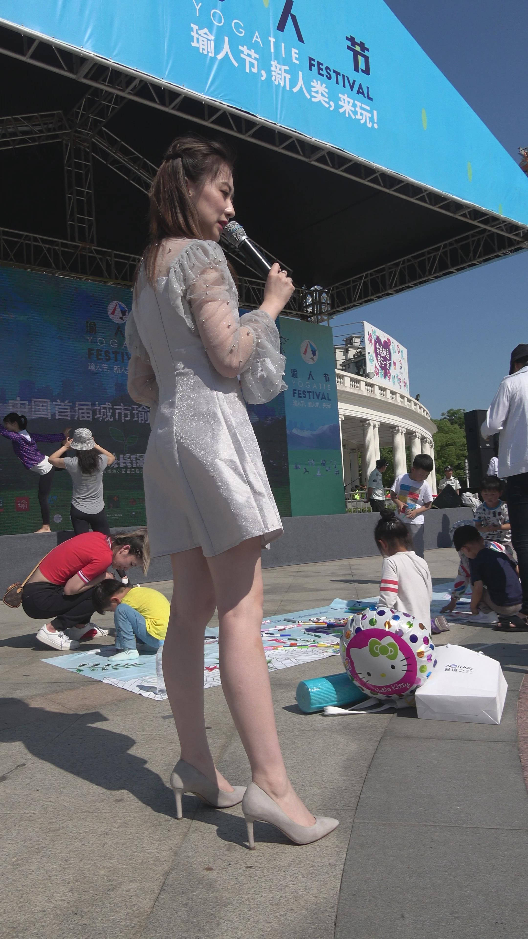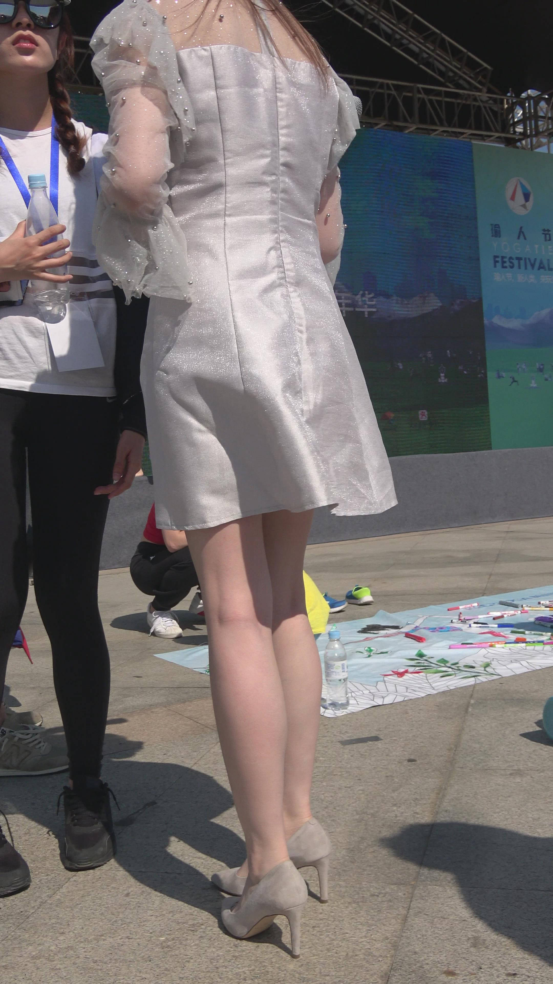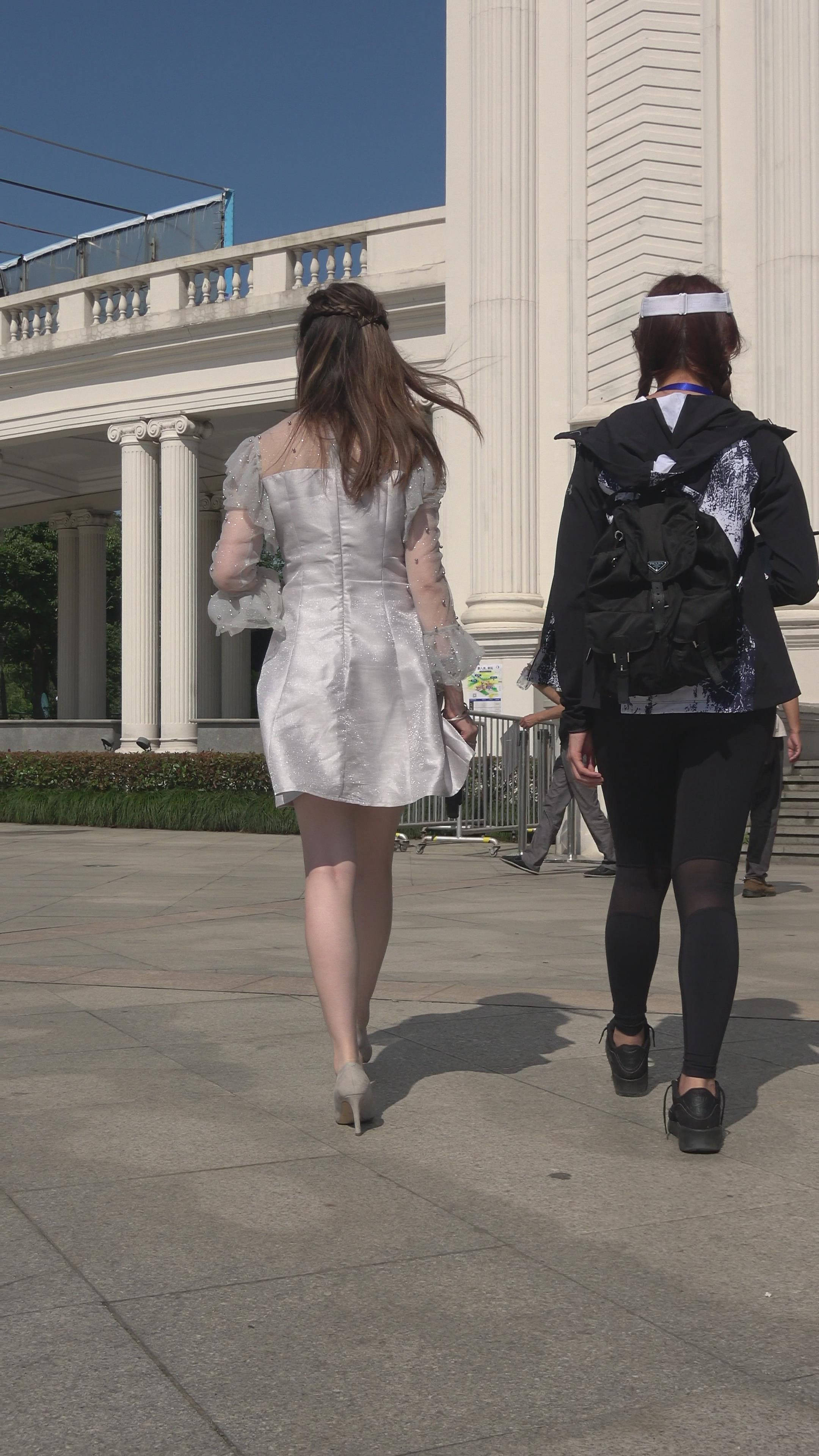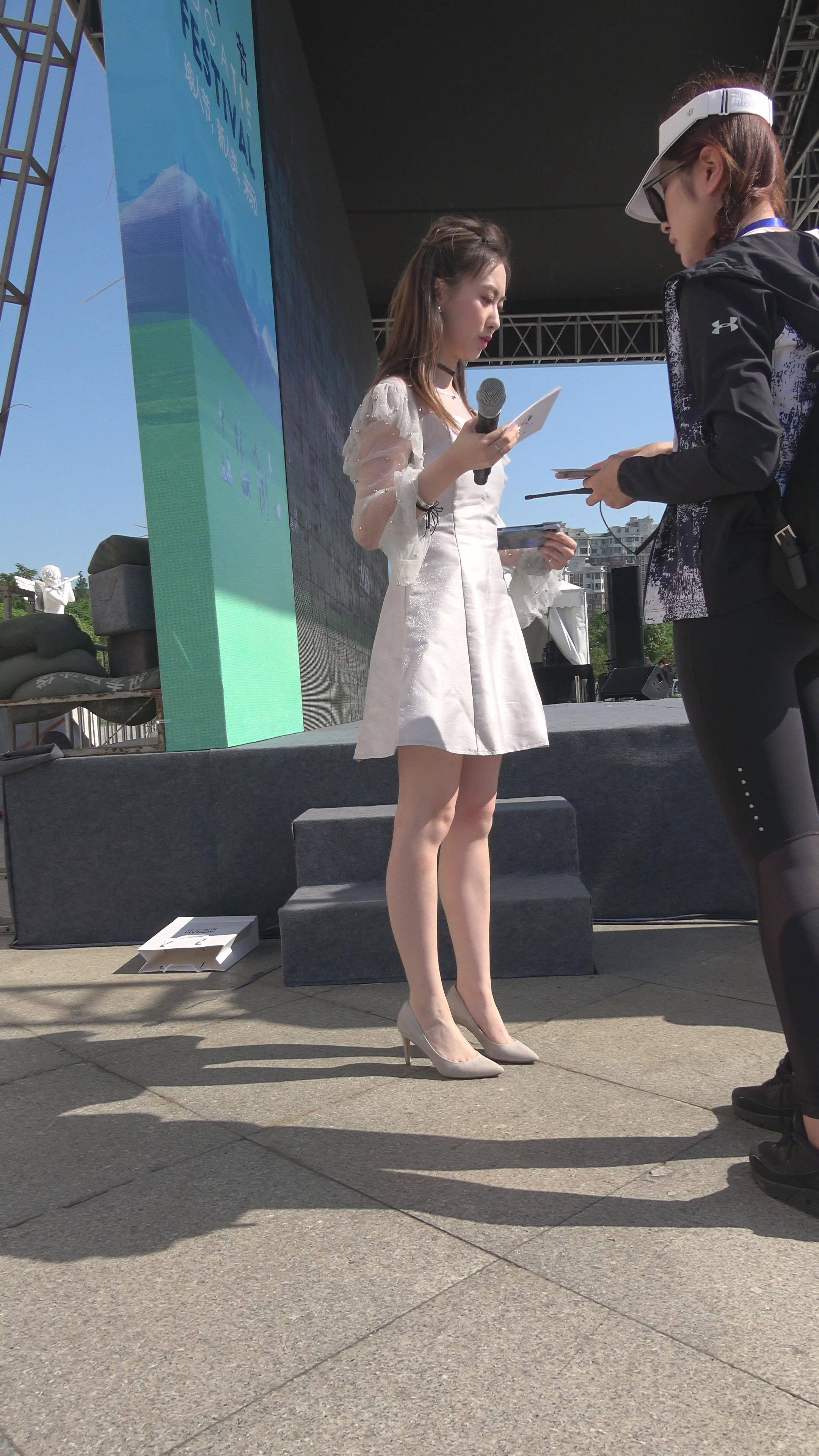 4K 天生丽质皮肤白皙街拍连衣裙高跟美女主持 编号7889