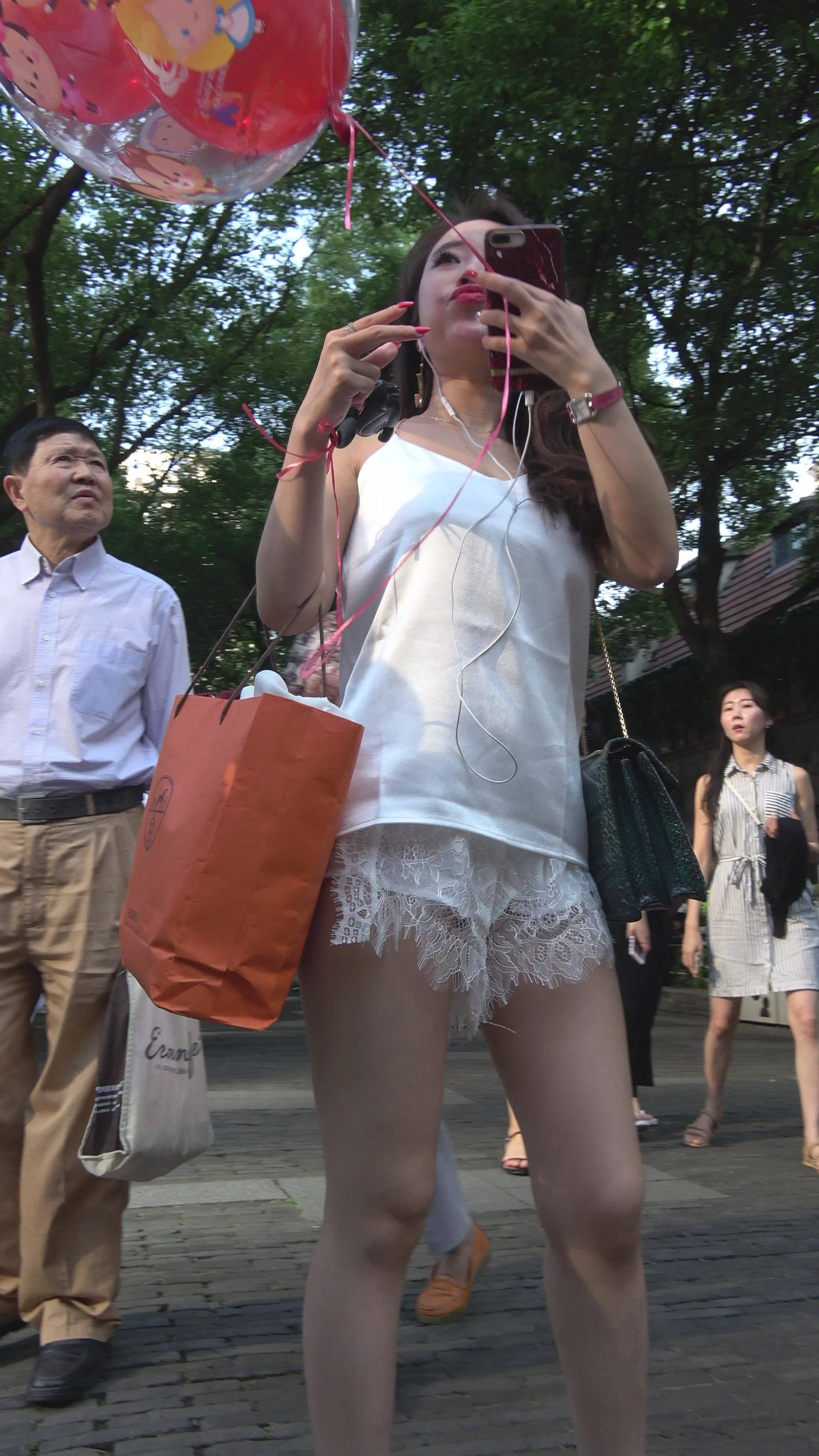 4K 吊带衫小热裤街拍美腿高跟性感美女 编号7890