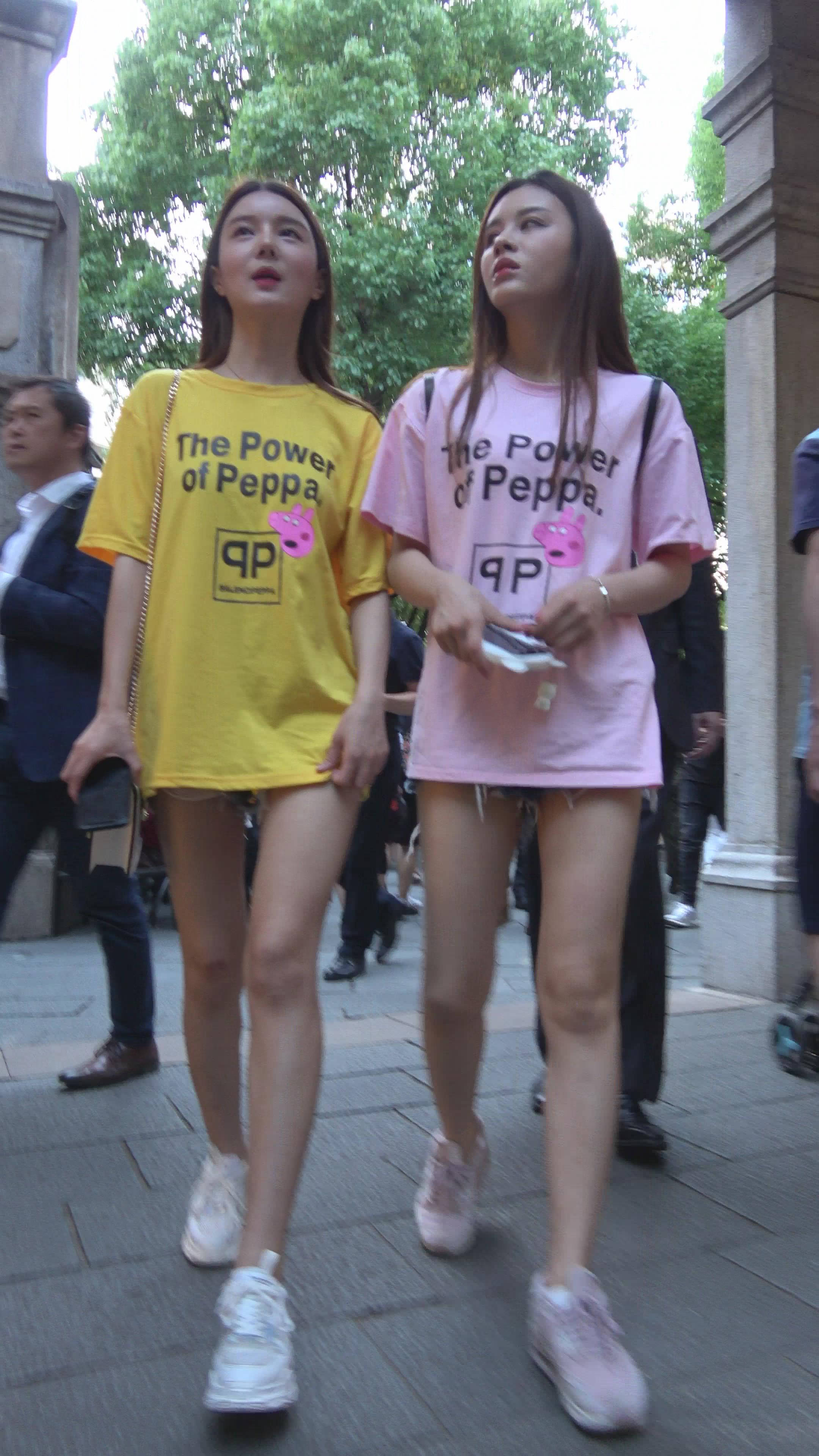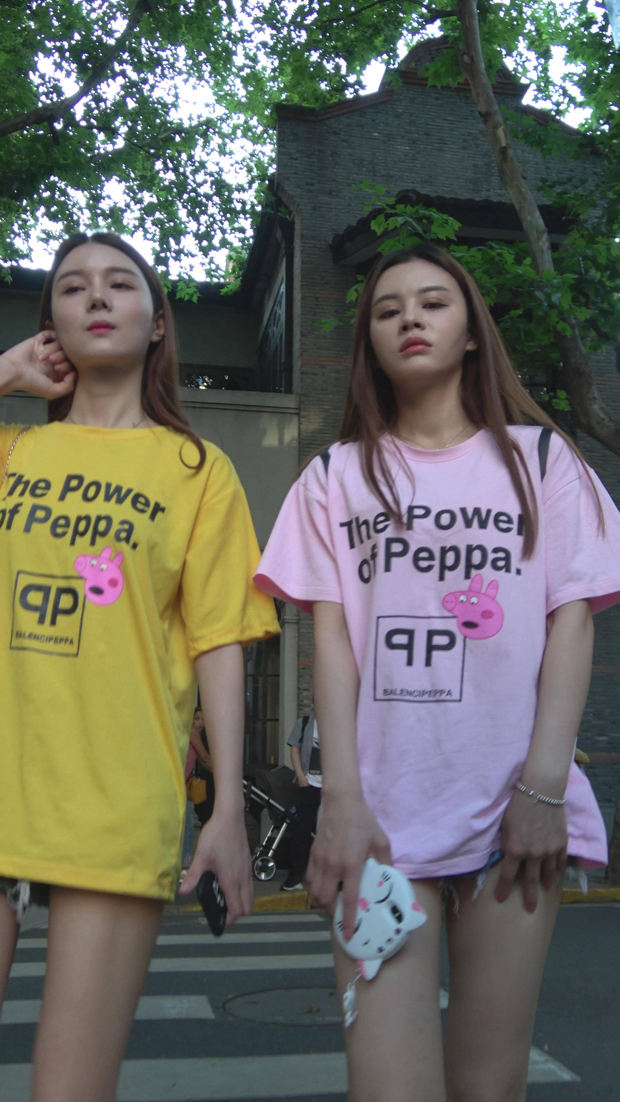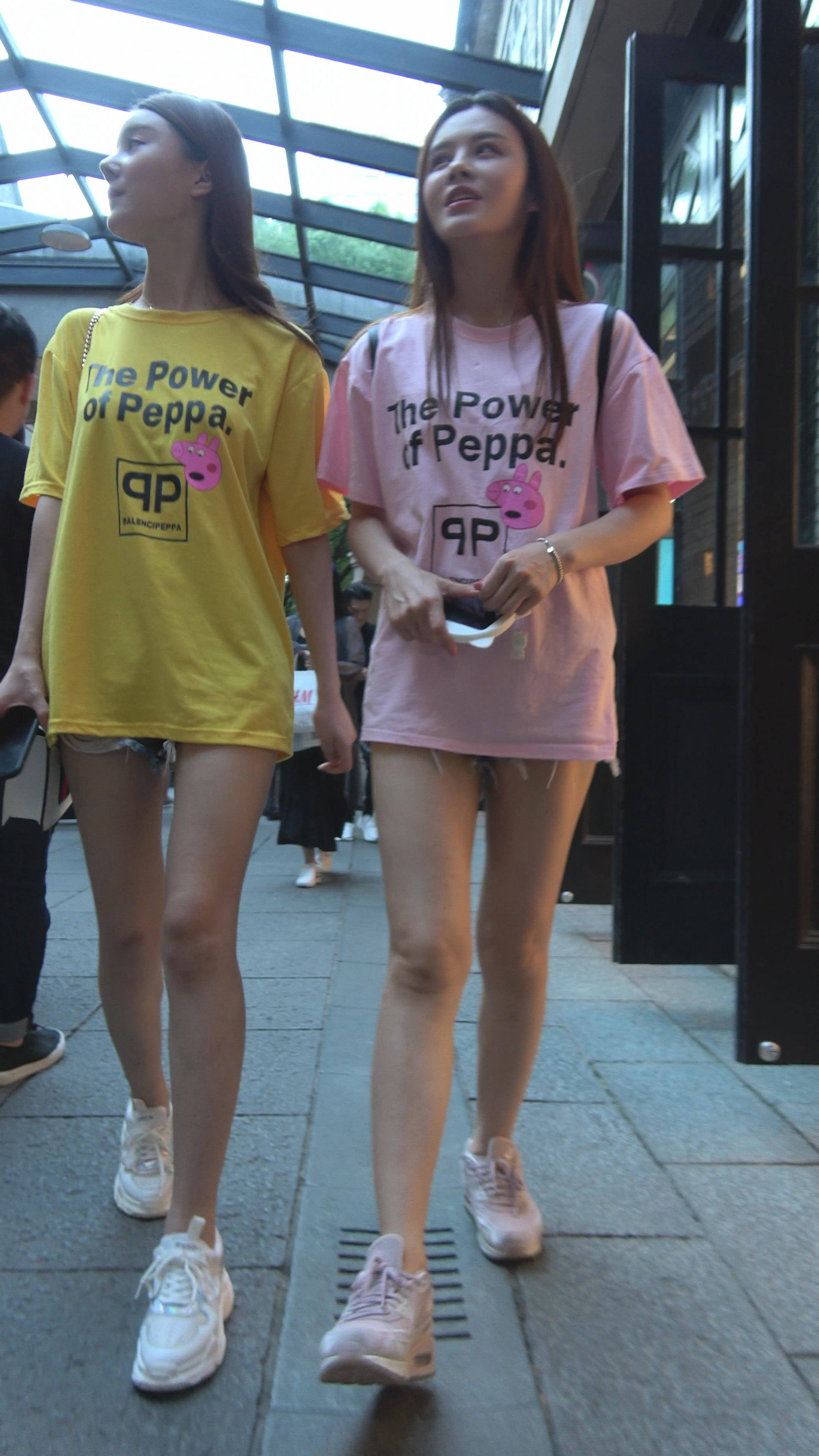 4K 清秀的超短热裤T恤衫街拍美腿姐妹 编号7892