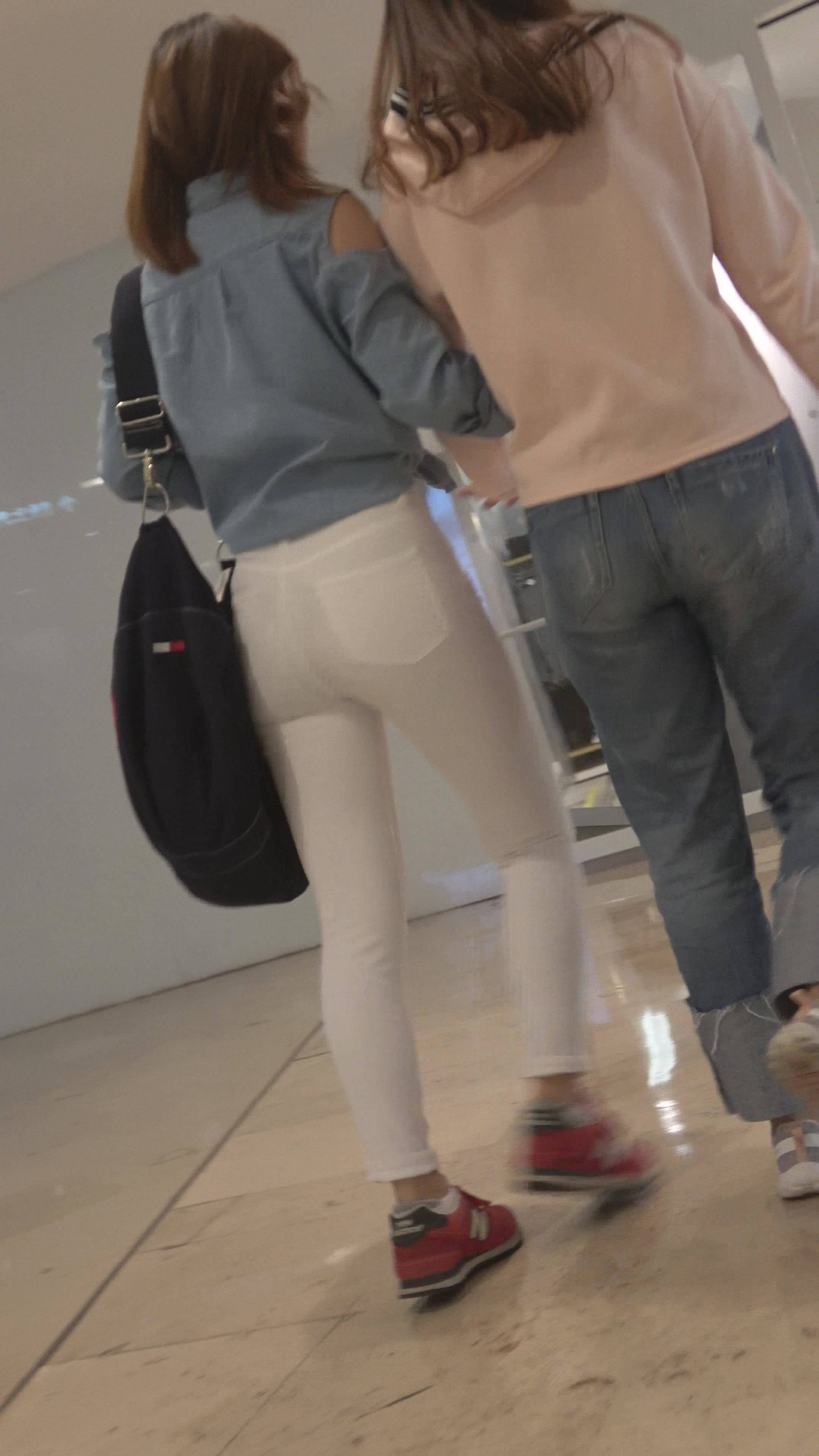 4K 街拍紧身白裤苹果臀漂亮美女 编号7894