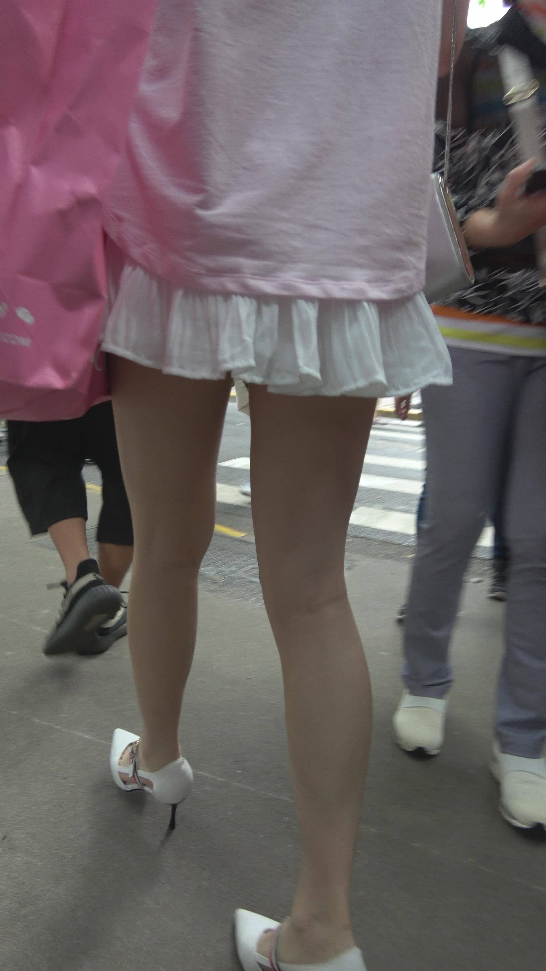 4K 街拍小清新短裙粉衣高跟美女 编号7900