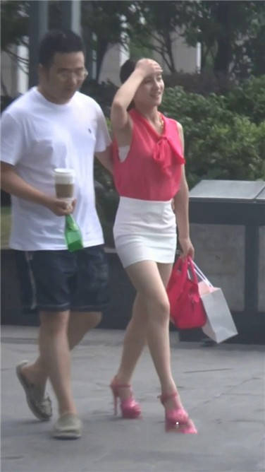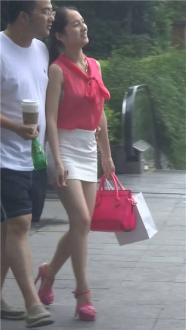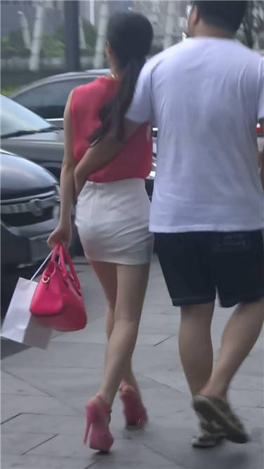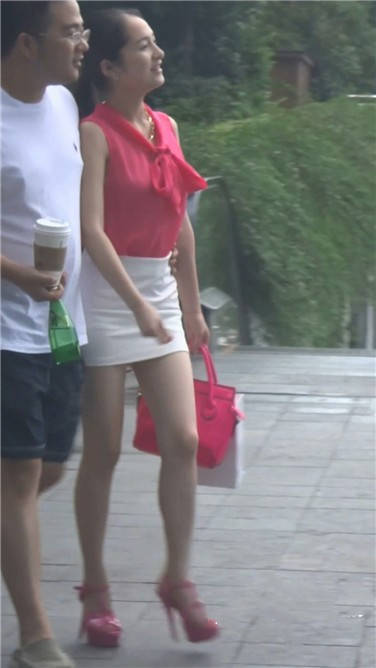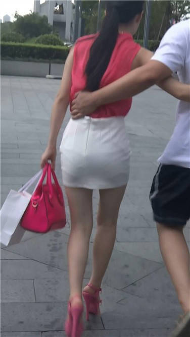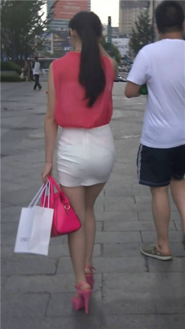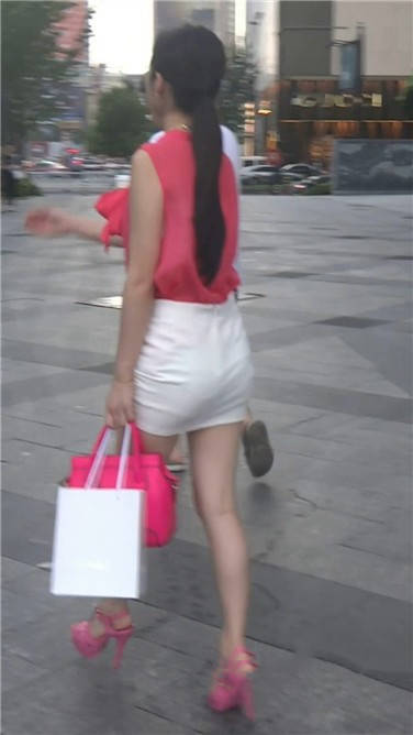 街拍粉衣包臀裙美女 编号3664