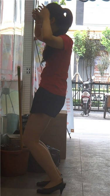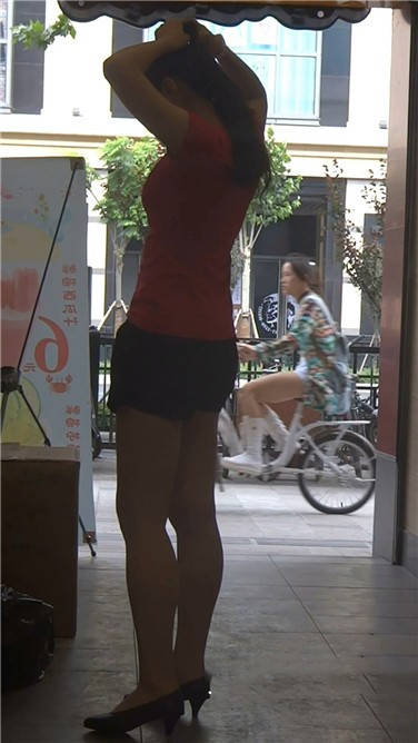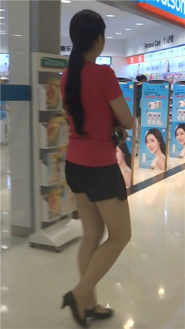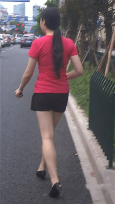 街拍丰臀热裤粉衣少妇 编号3720