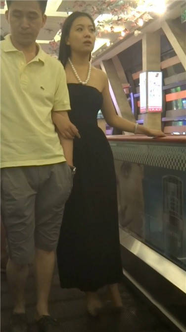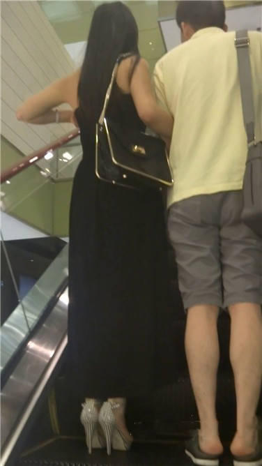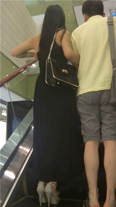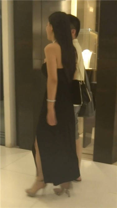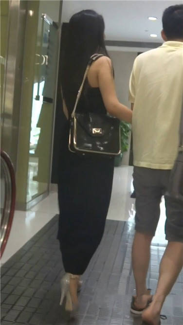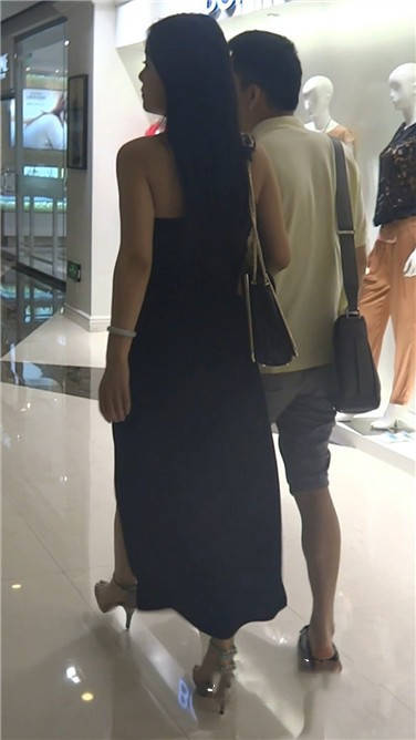抹胸黑色连衣裙高跟鞋苗条美女 编号3730