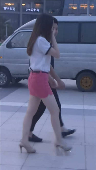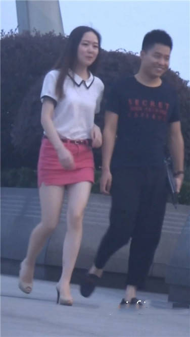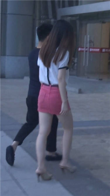 街拍粉色包臀裙性感美女跟男友去看电影 编号3736