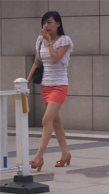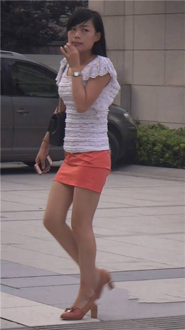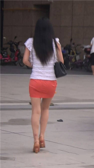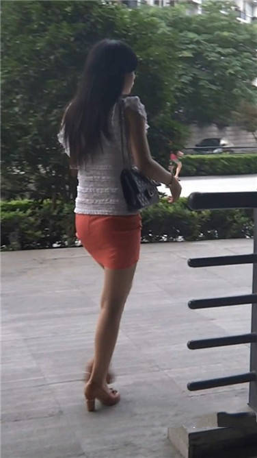 街拍高跟鞋橘色包臀裙性感美妇 编号3739