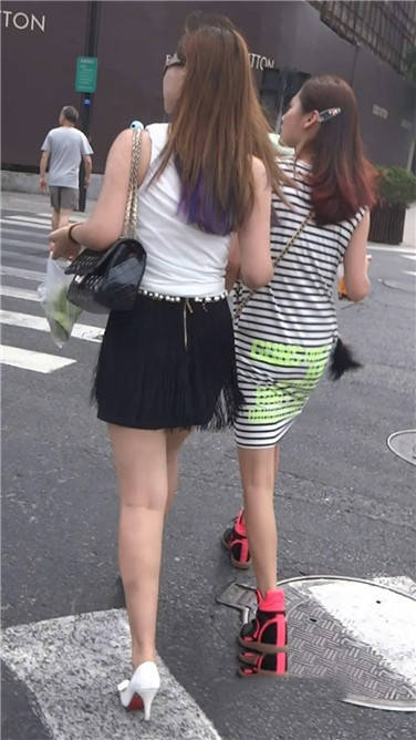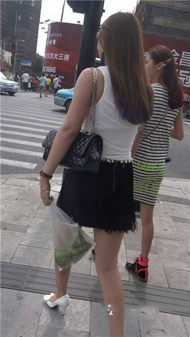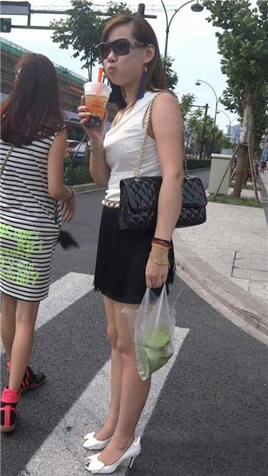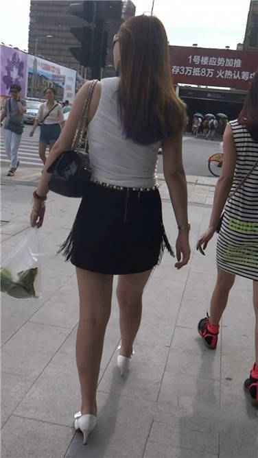 街拍性感短裙鱼嘴高跟鞋性感少妇 编号3745