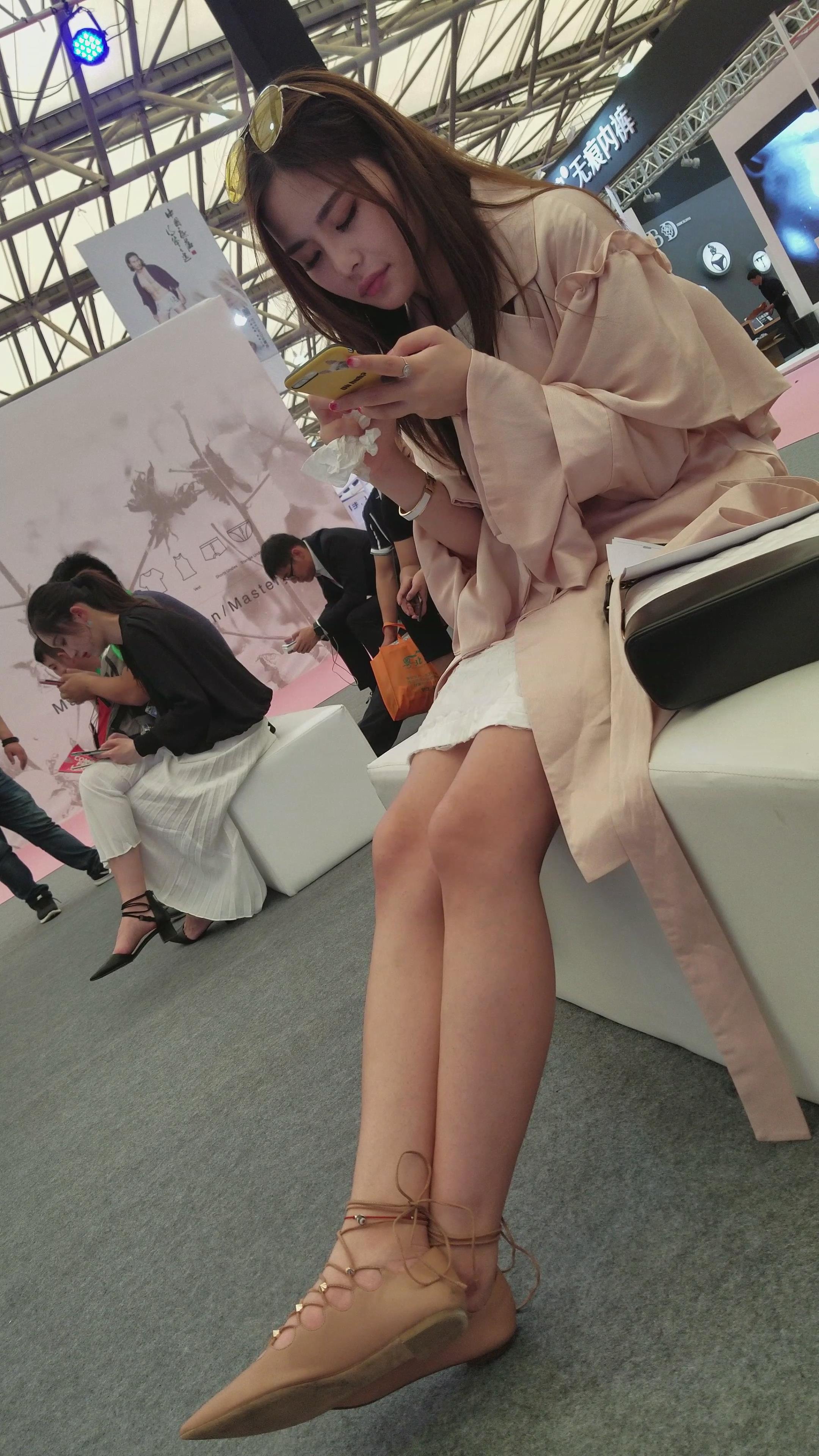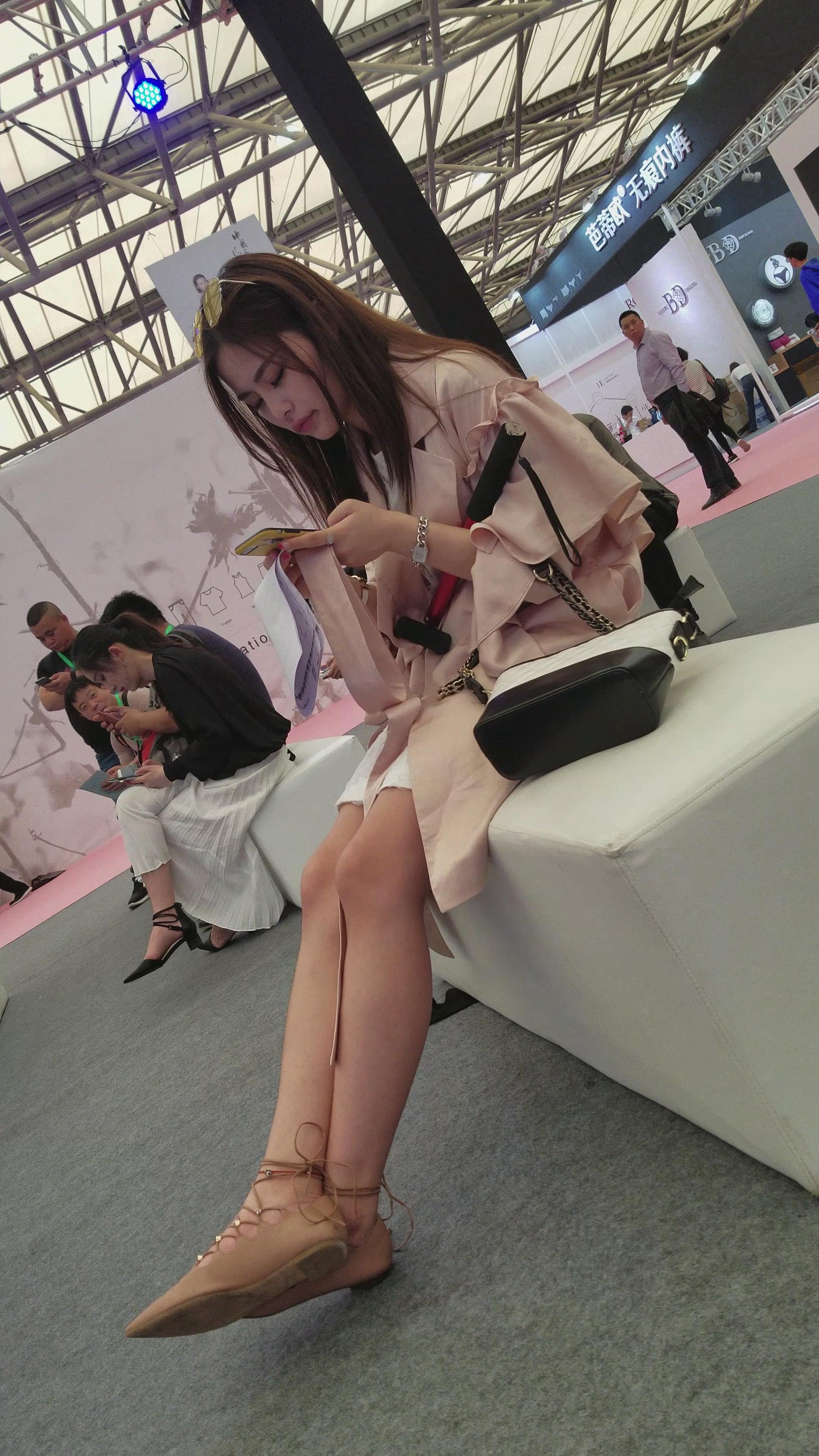 4K - 极品美颜气质米色外套街拍美腿女孩 编号5194