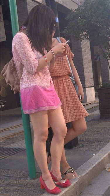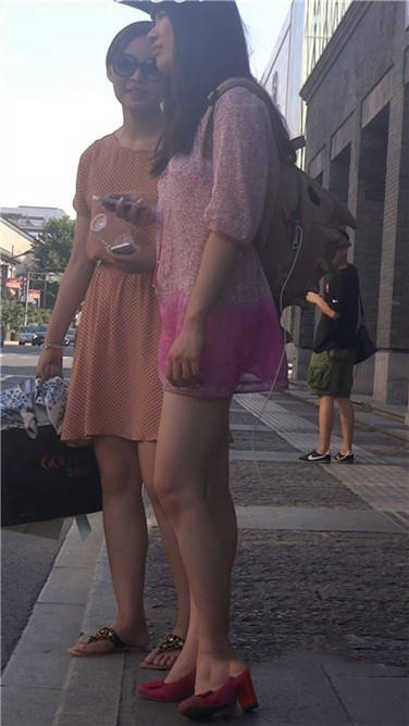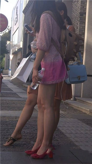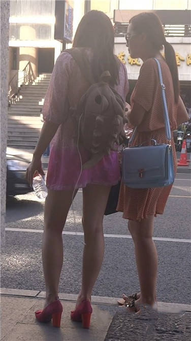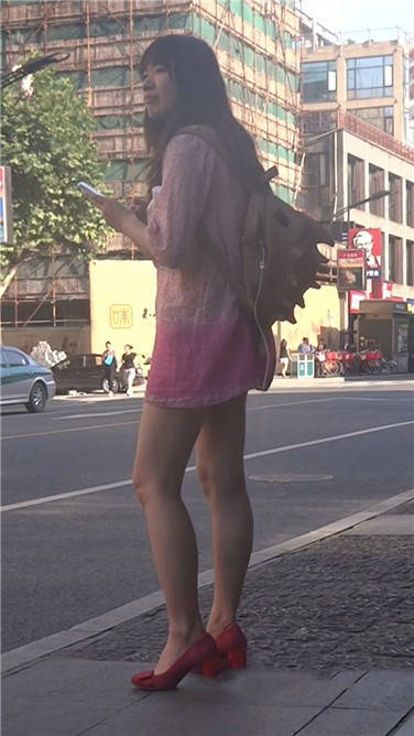 街拍粉色连衣裙性感红高跟美女 编号3777