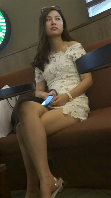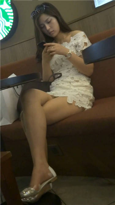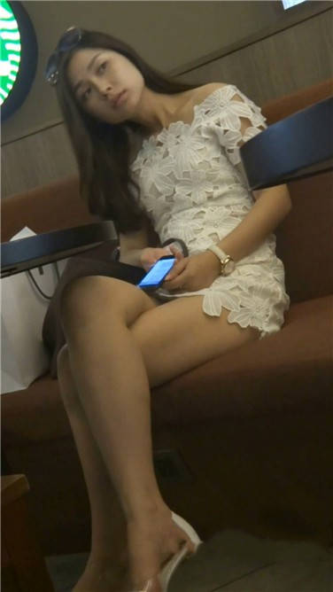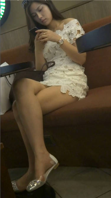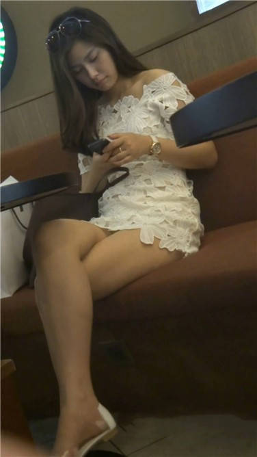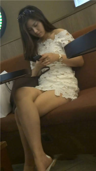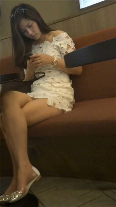 低头专注玩手机的白裙小姐姐 编号3780