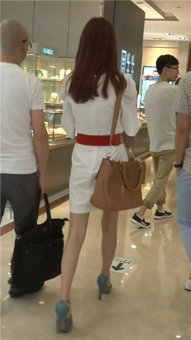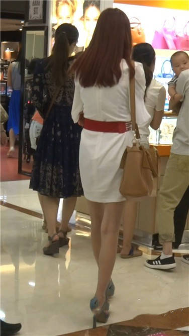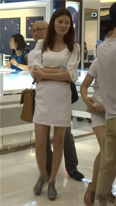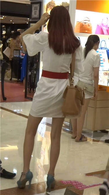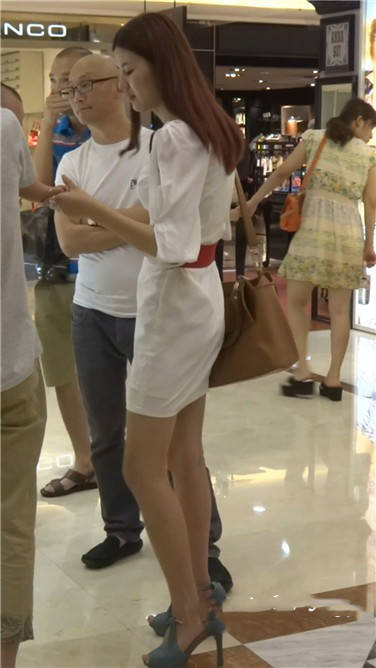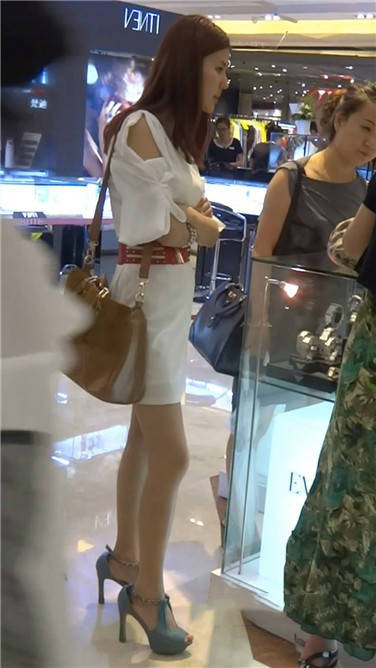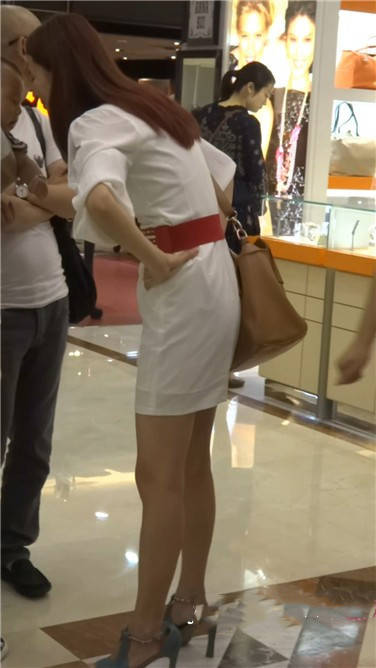 商场偶遇高跟白色连衣裙气质靓丽美妇 编号3790
