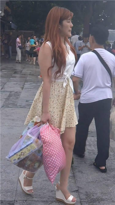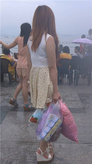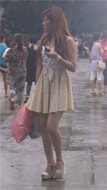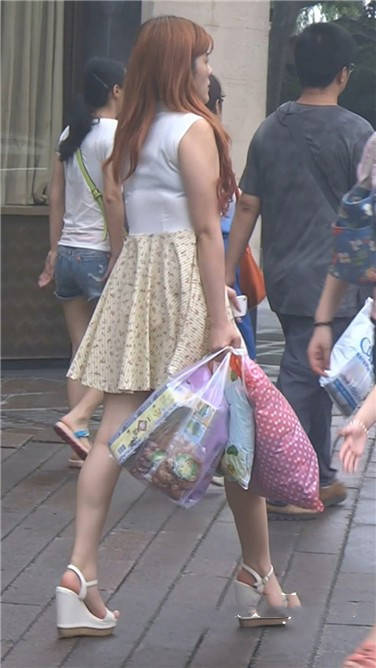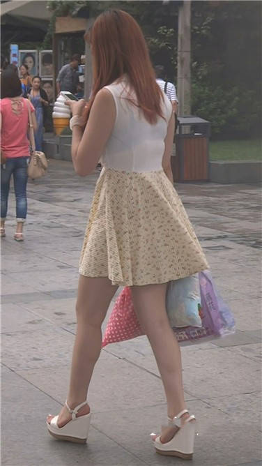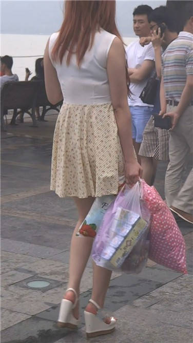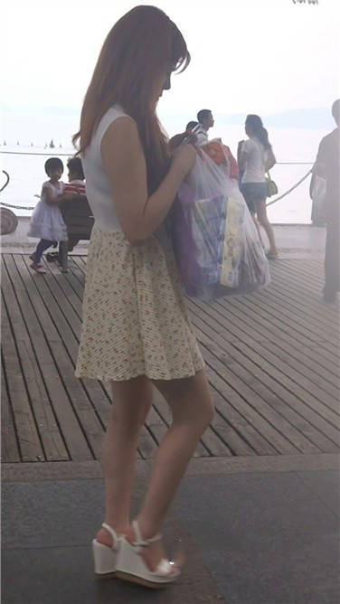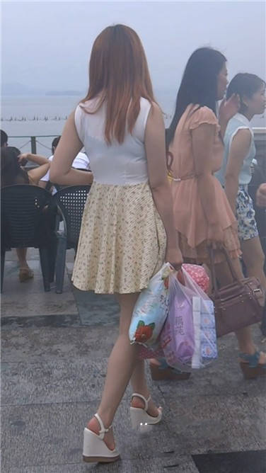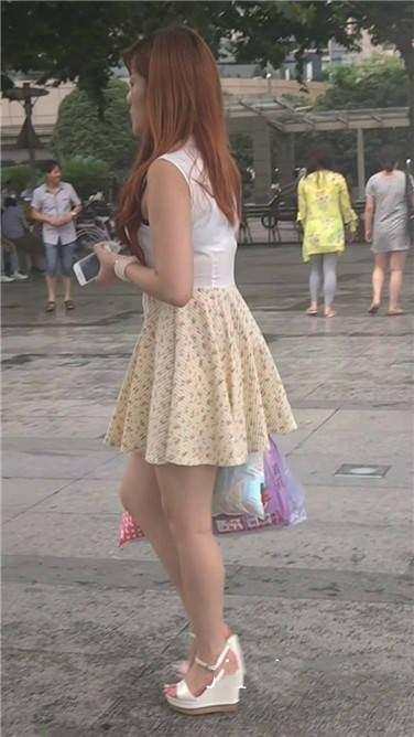 街拍广场上徘徊的连衣裙坡高跟风韵少妇 编号3796