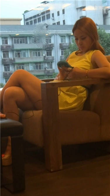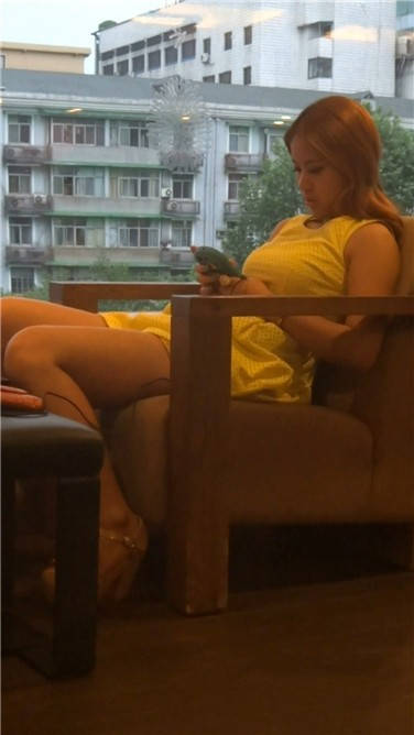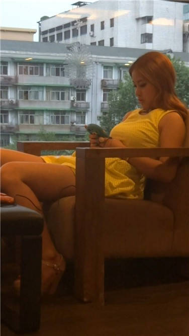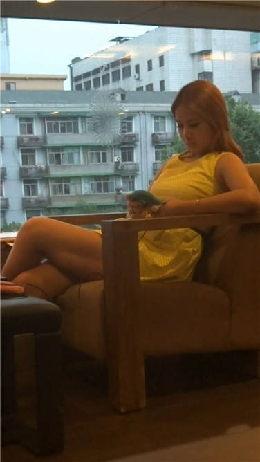 性感美女无聊得再餐厅卡座等人 编号3804