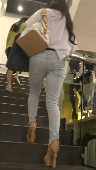 街拍高跟鞋紧身蓝牛小清新美女 编号3838