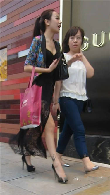 街拍黑色长裙高跟性感美女姐姐 编号3867