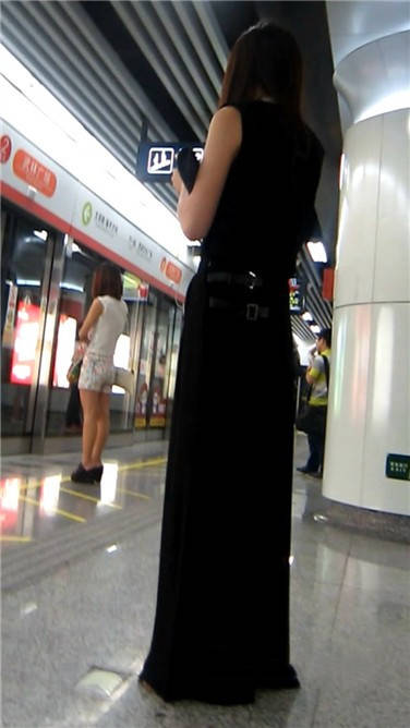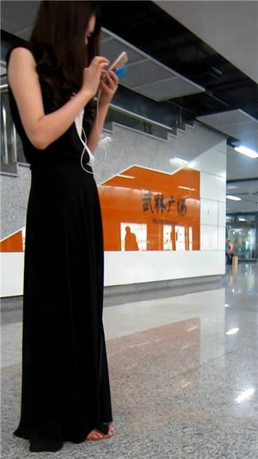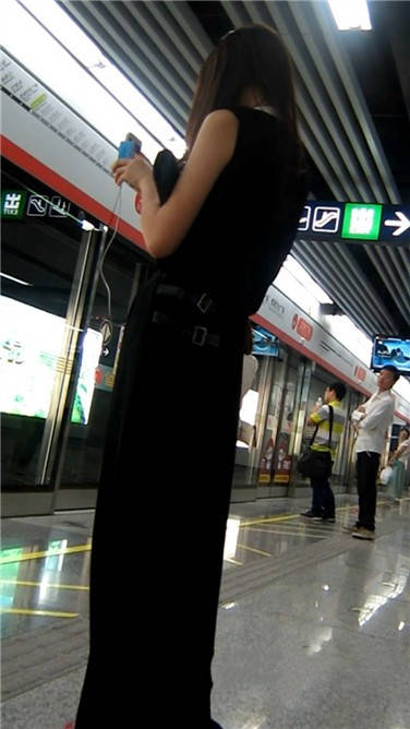 一席黑色长裙美眉在等地铁 编号3870