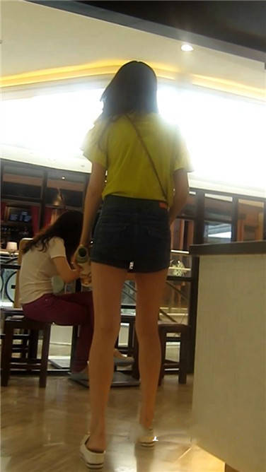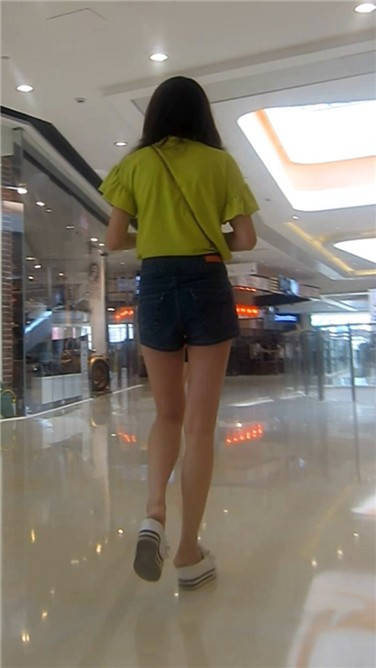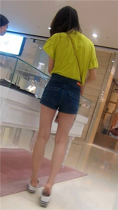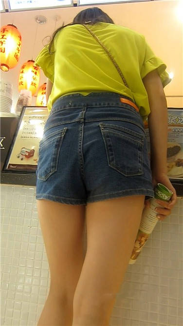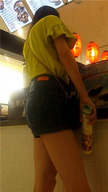 街拍逛商场买奶茶的牛仔热裤青春妹子 编号3887